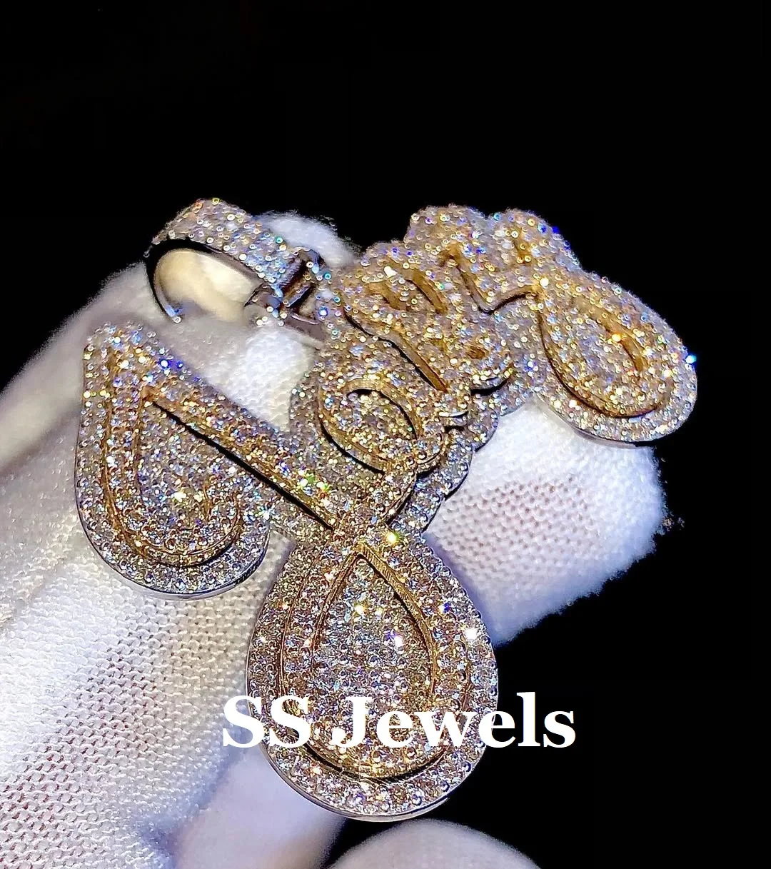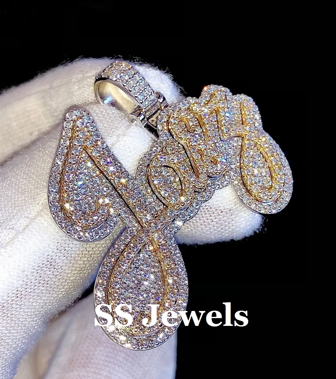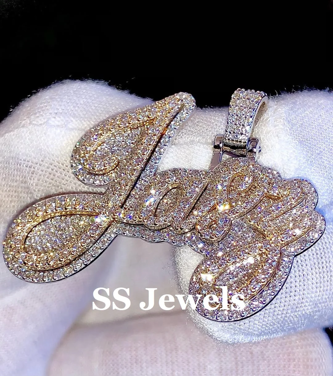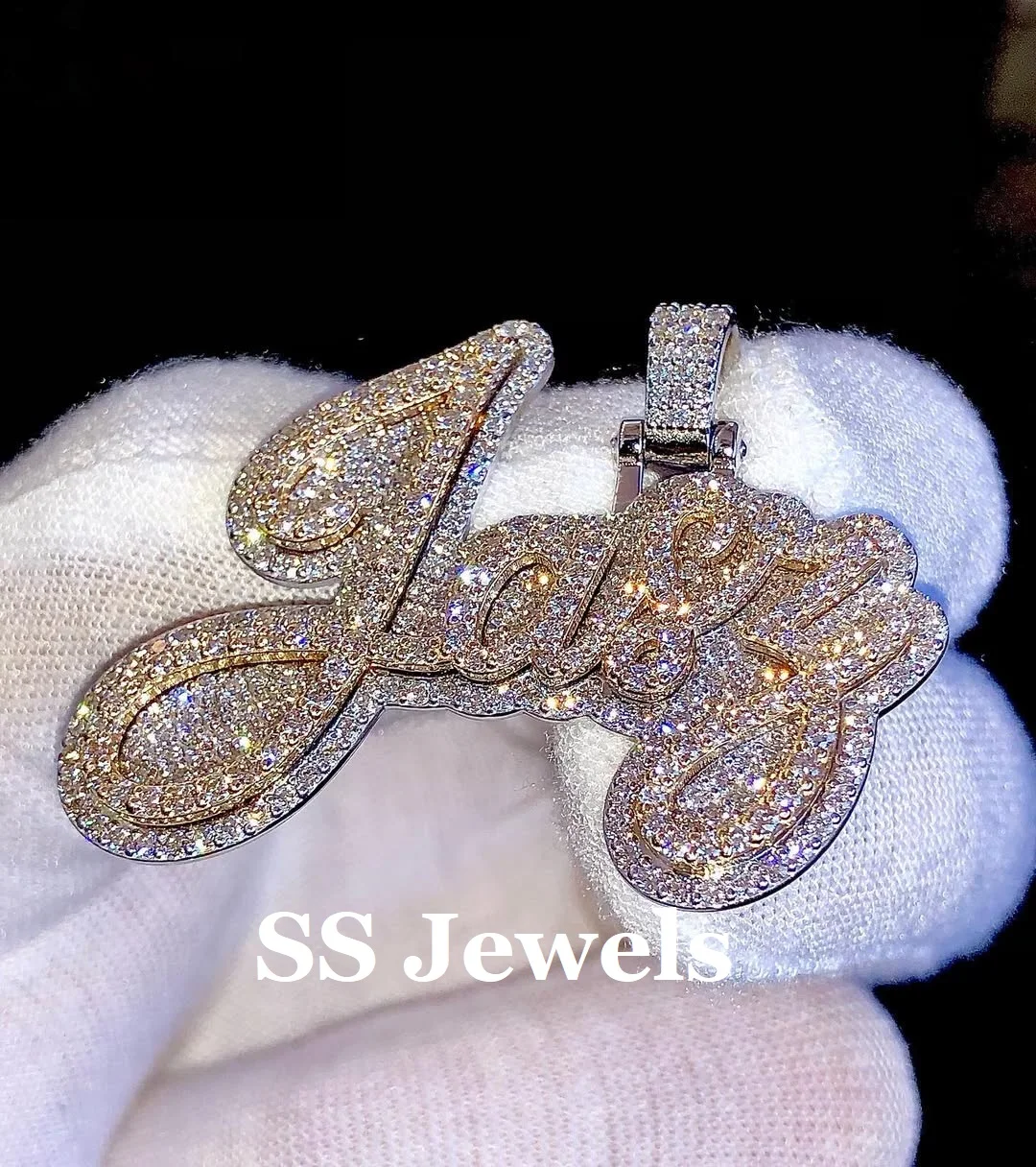 Men's Custom Name 925 Silver Moissanite Iced Diamond Fine Pendants Charms Hip Hop Style Letter Pendant Party