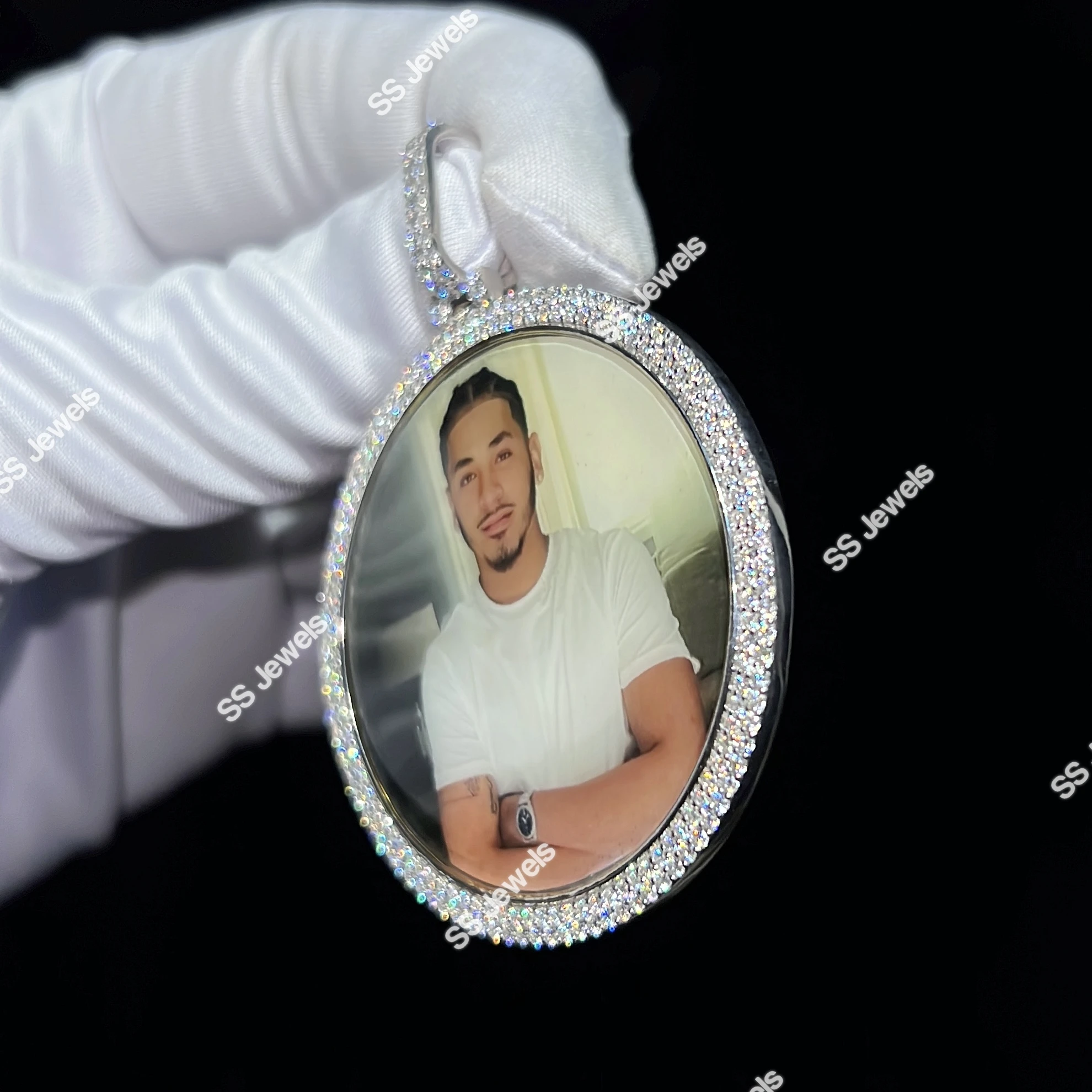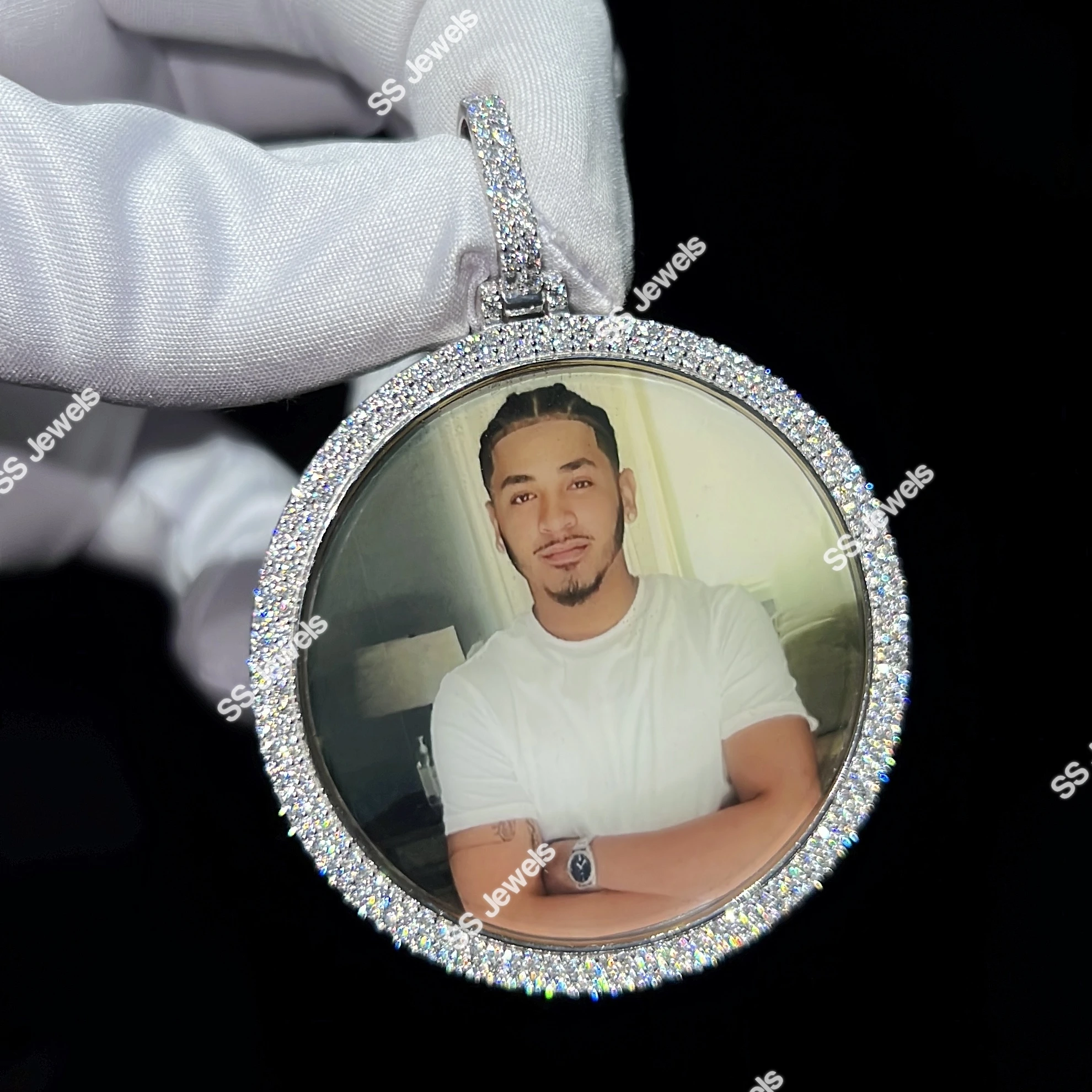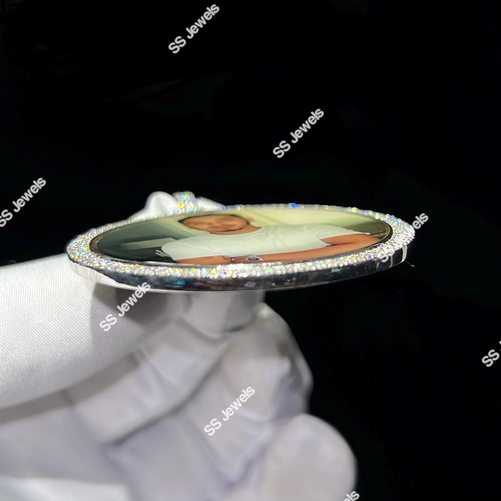 Custom VVS Memory Pendant 925 Sterling Silver Rhodium Plated Iced Lab Diamond Baguette Cut Photo Personalized RIP Hip Hop Gift