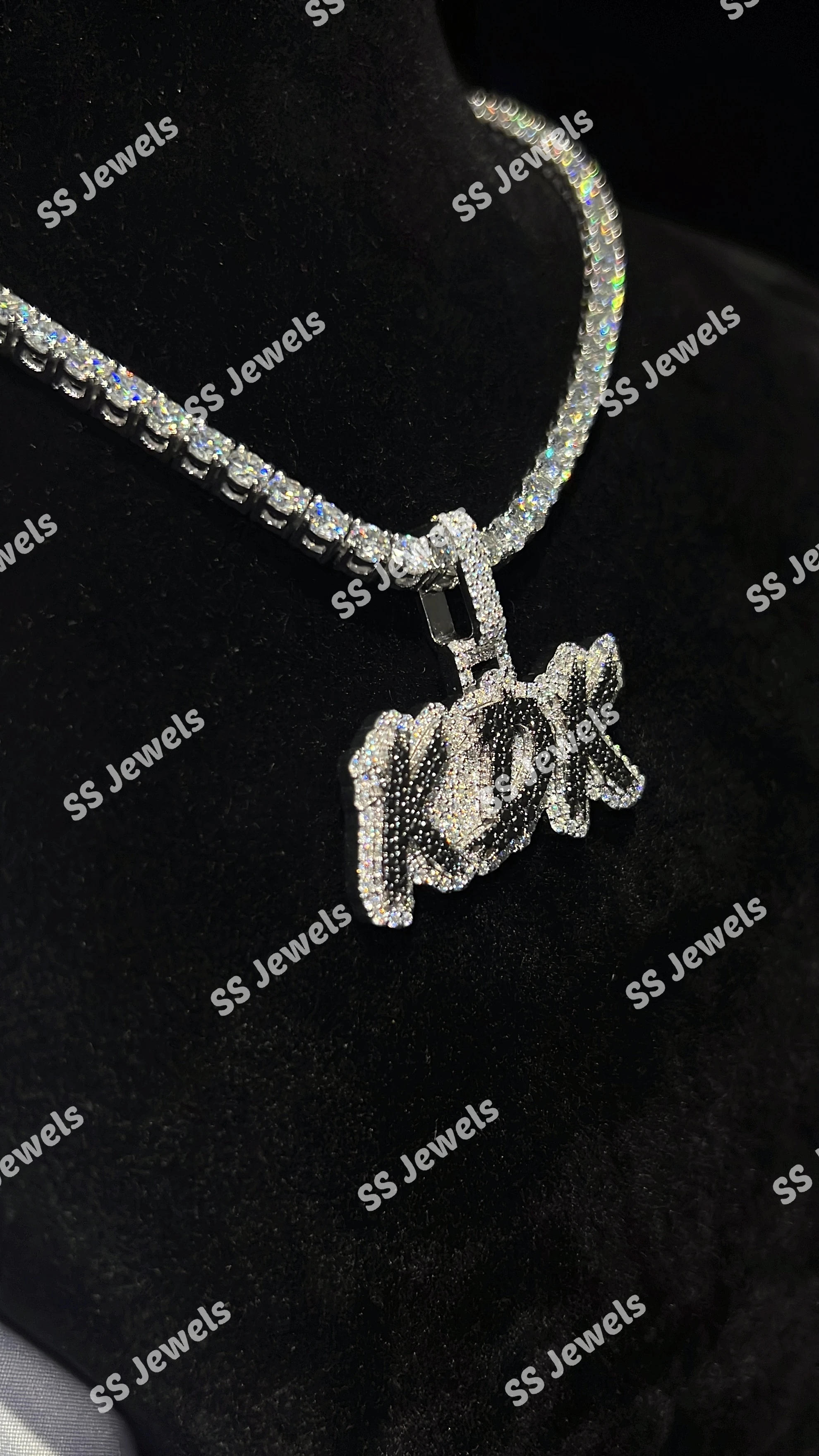 SS Jewels SS488 925 Silver Pendant Black Moissanite Diamonds Personalized Name Charm Necklace Iced Rhodium Plated Statement Hip