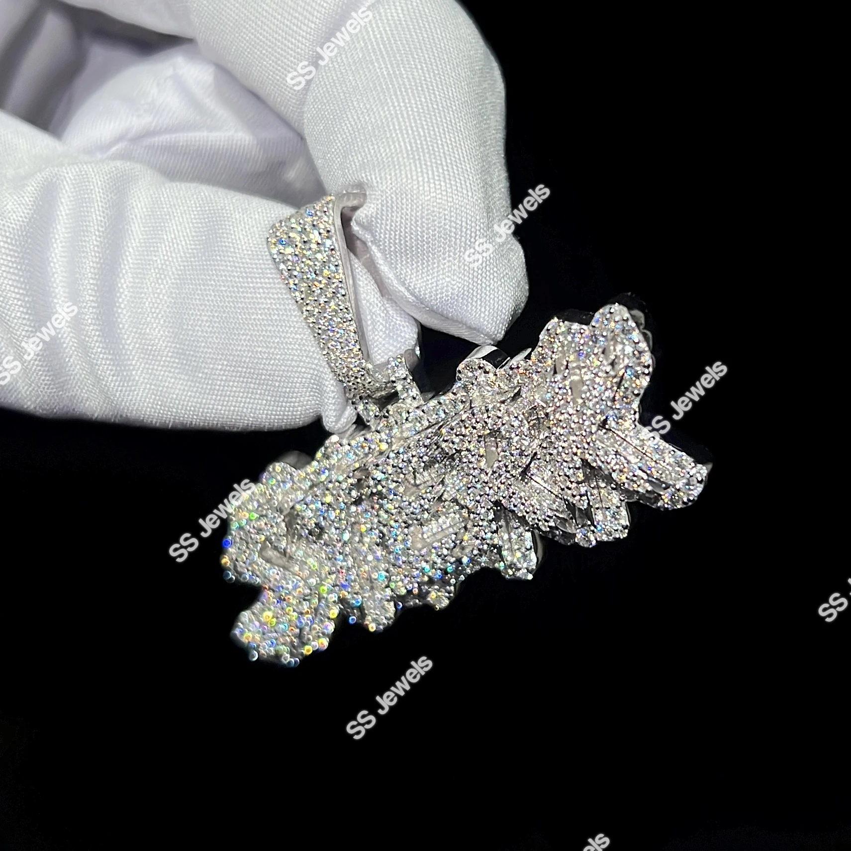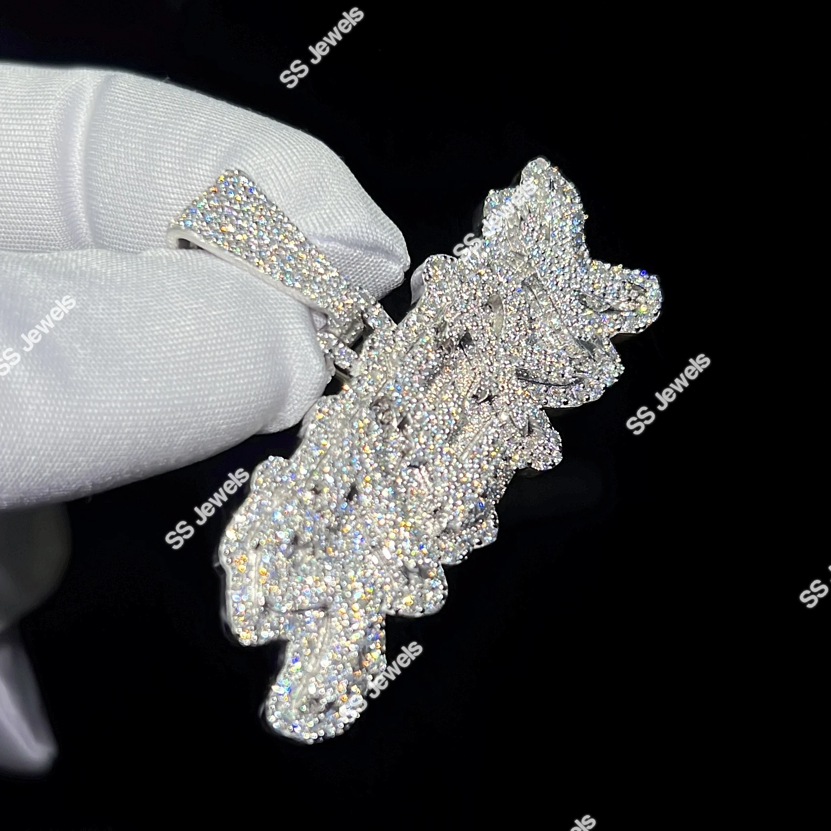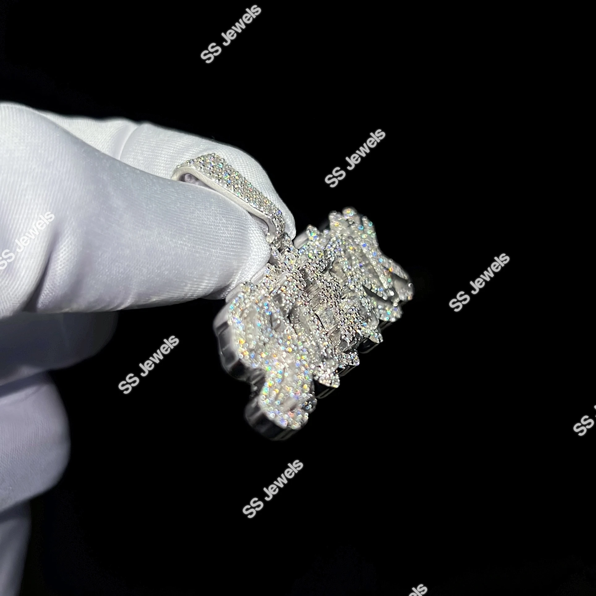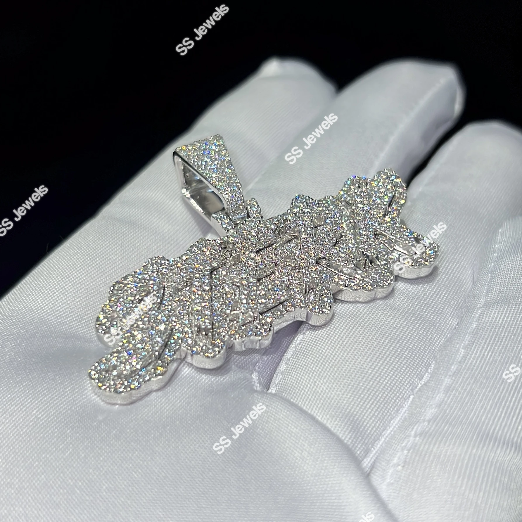 Full VVS Moissanite Design Custom Iced Christian Letter AD Name Pendant Bling 925 Sterling Silver Rhodium Plated Claw Setting