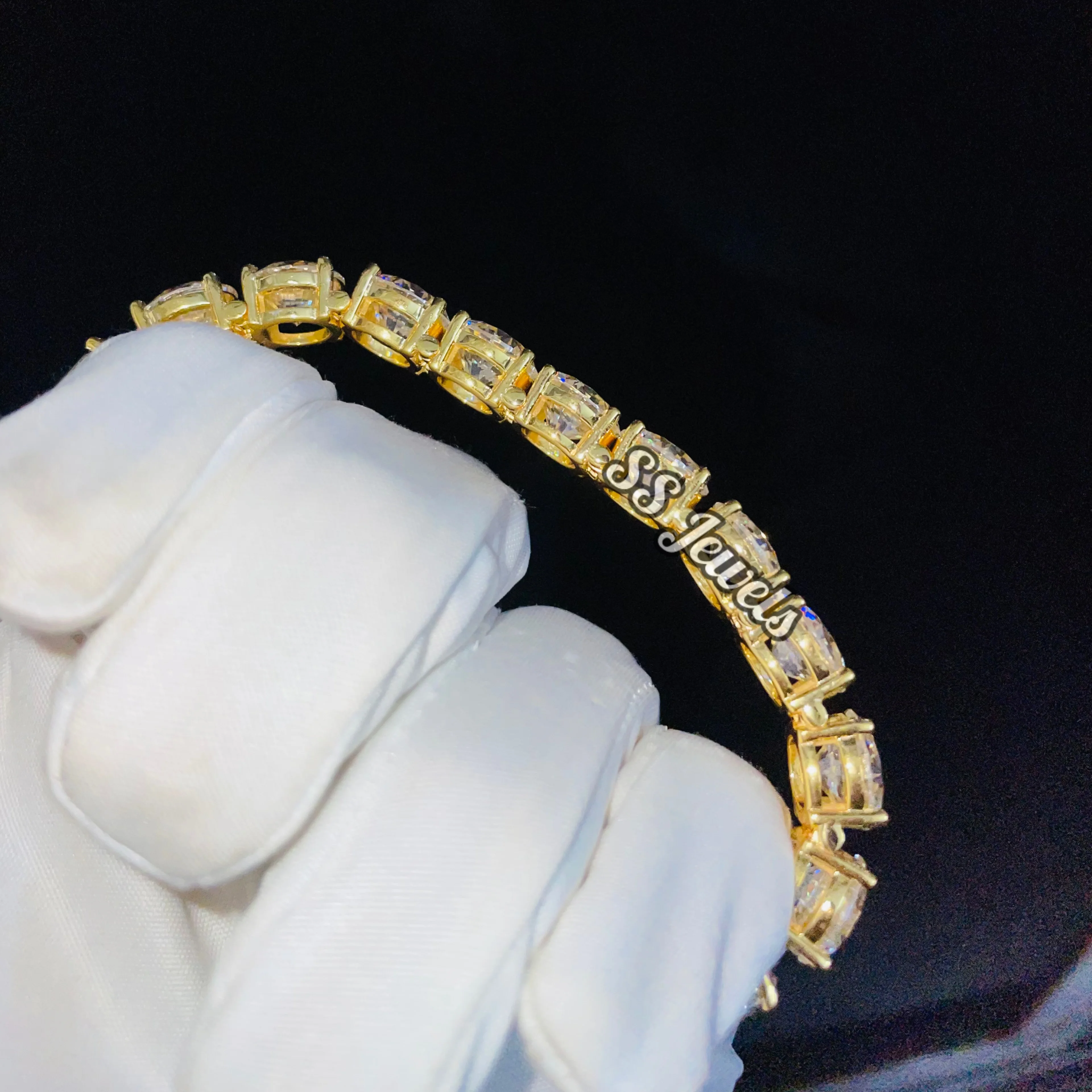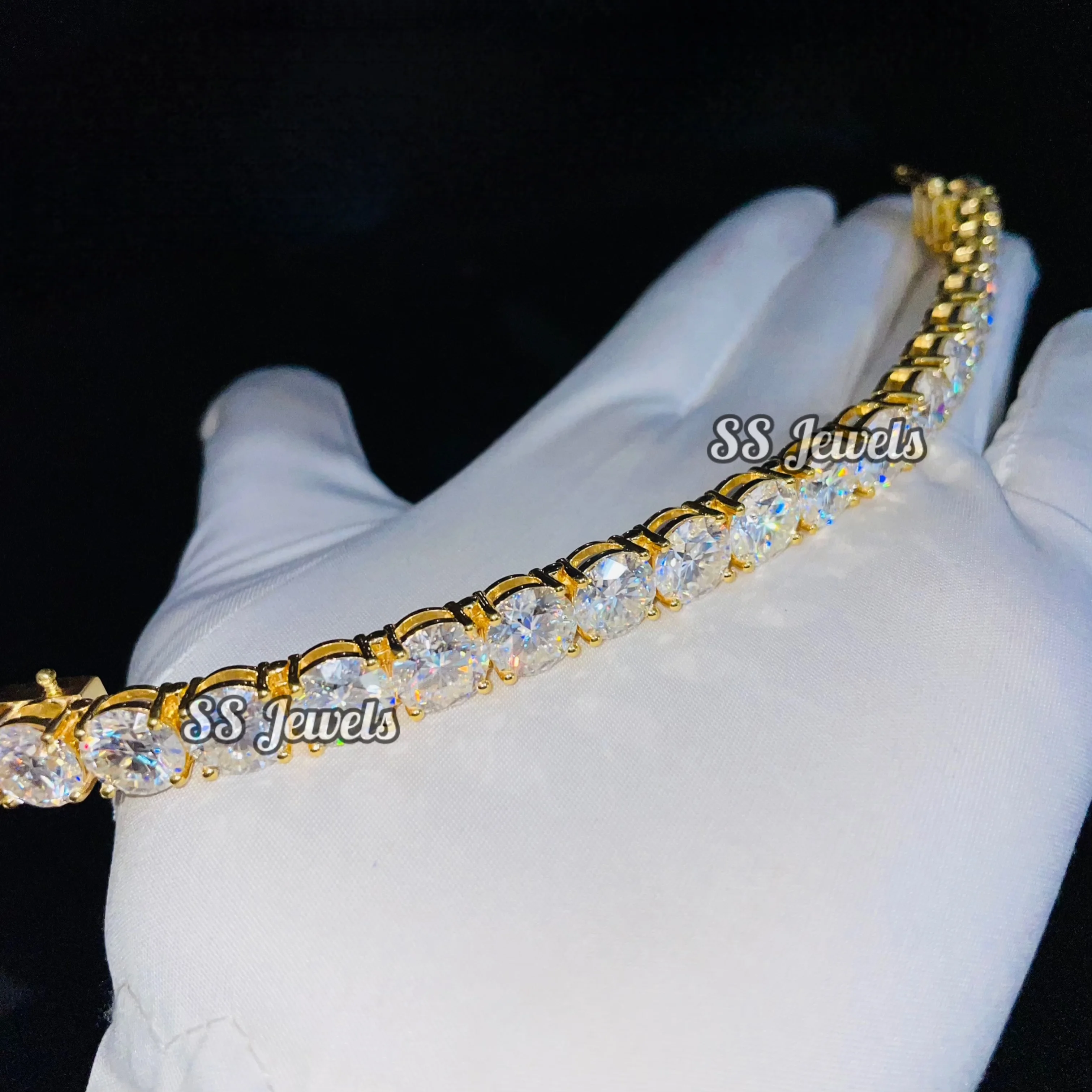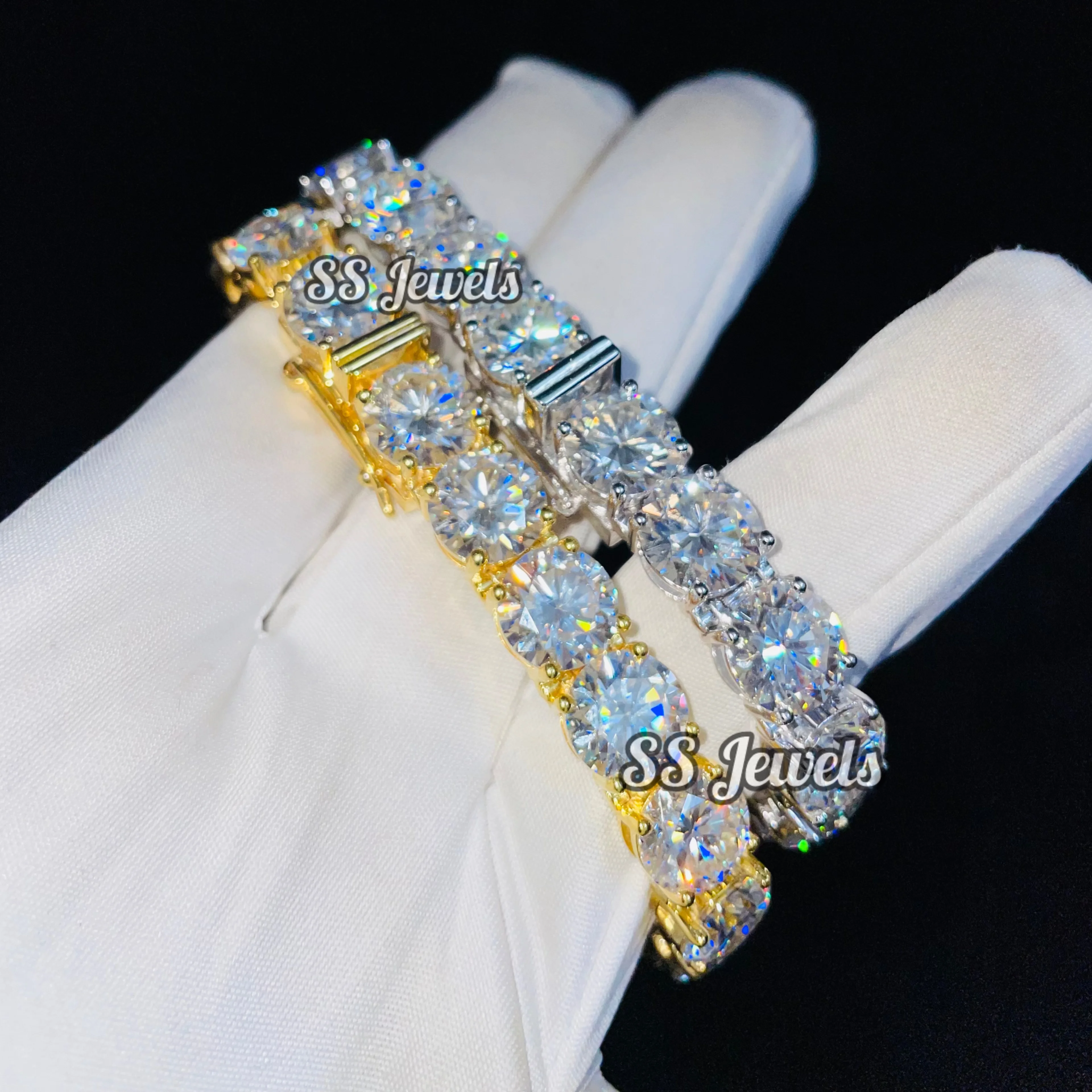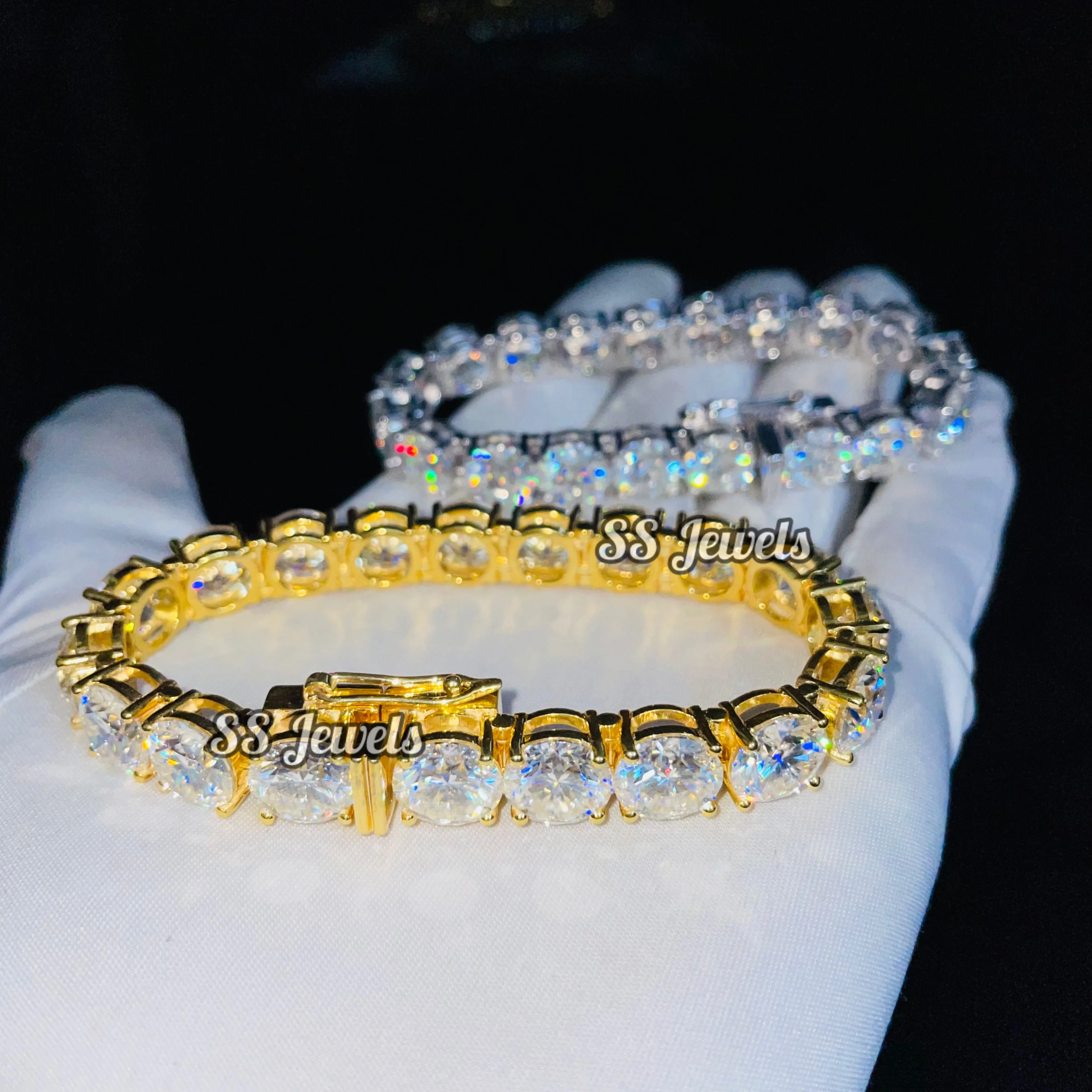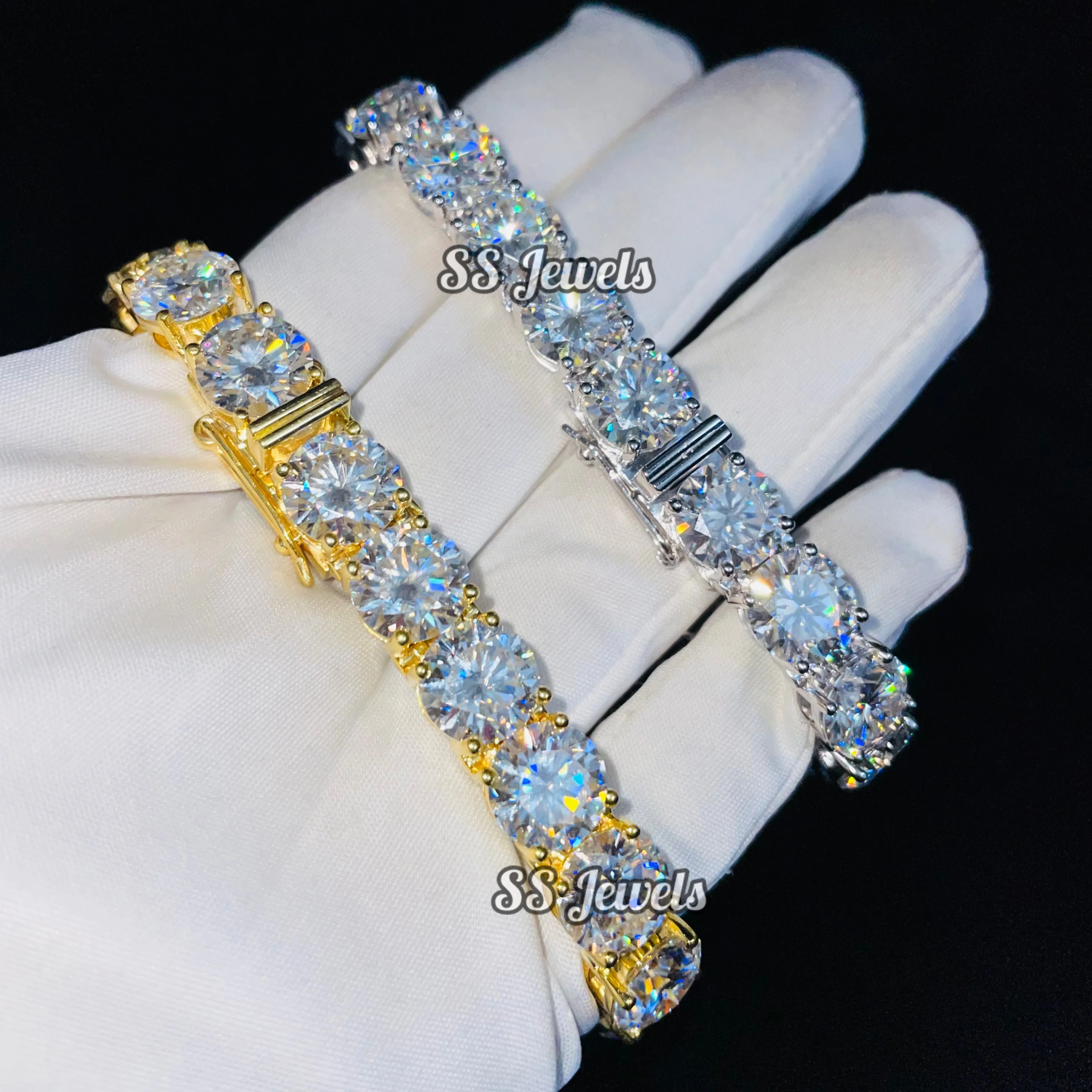 4ct VVS1 Brilliant Cut Moissanite Hiphop Unisex Tennis Bracelet 925 Silver Rhodium Plated GRA Certified Iced Claw Setting