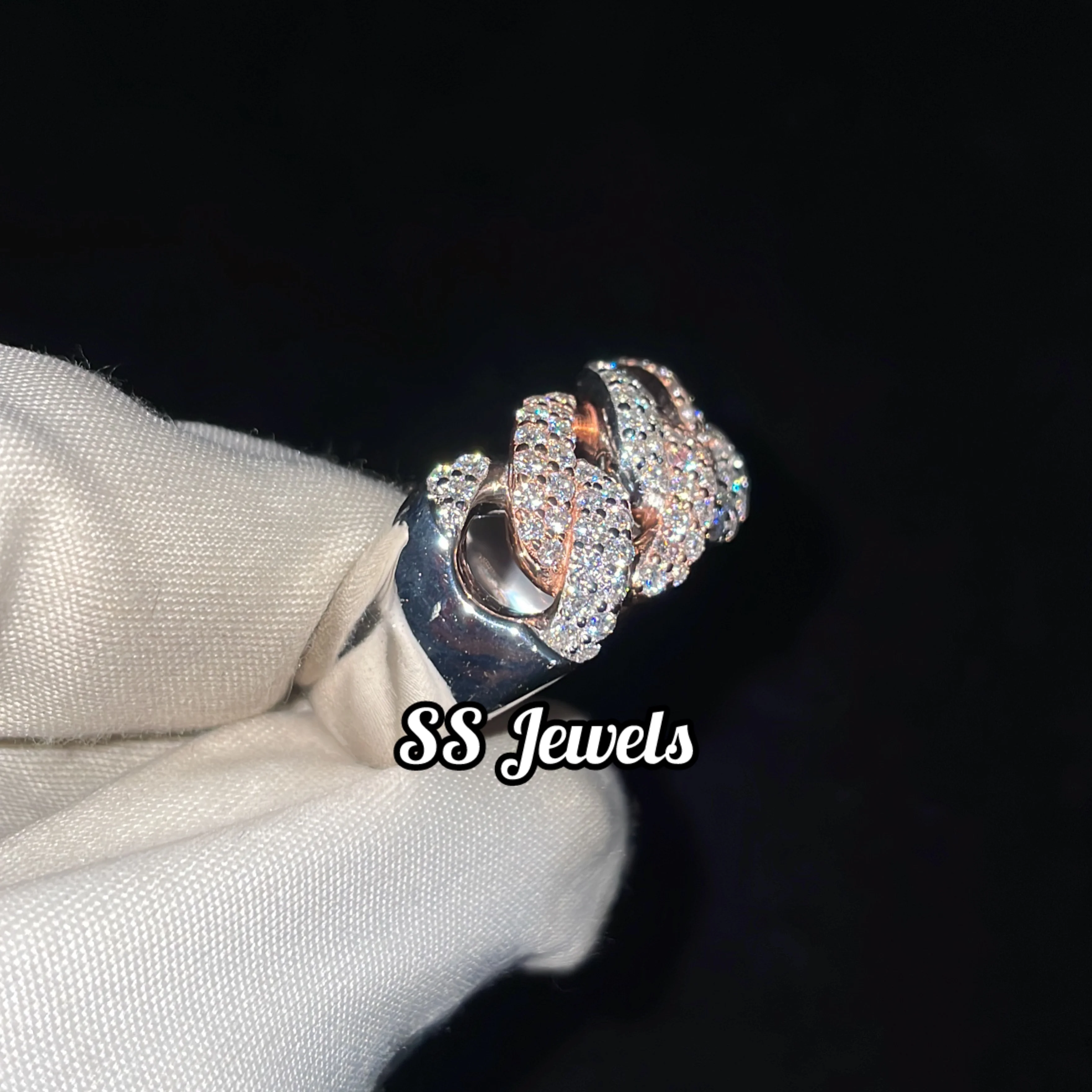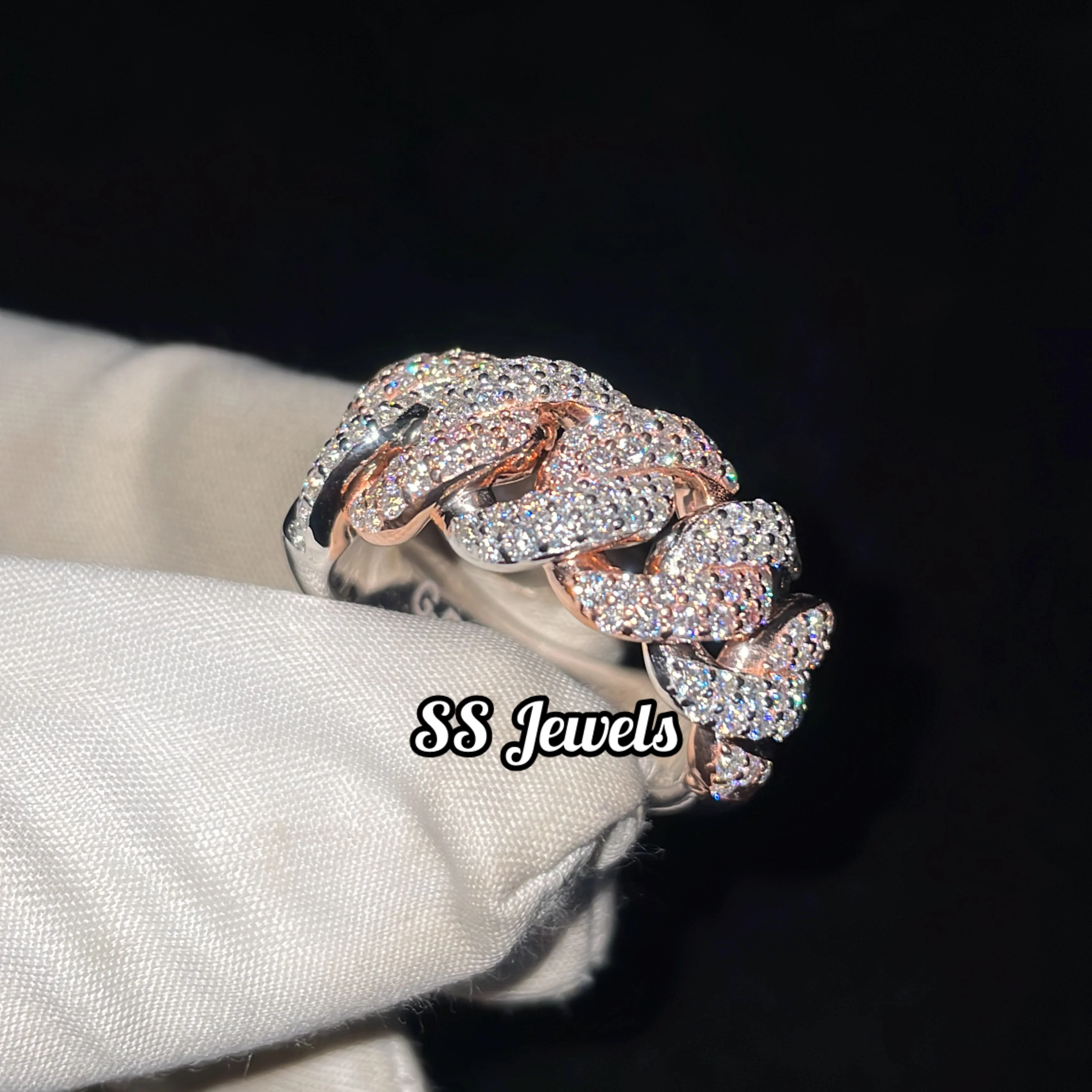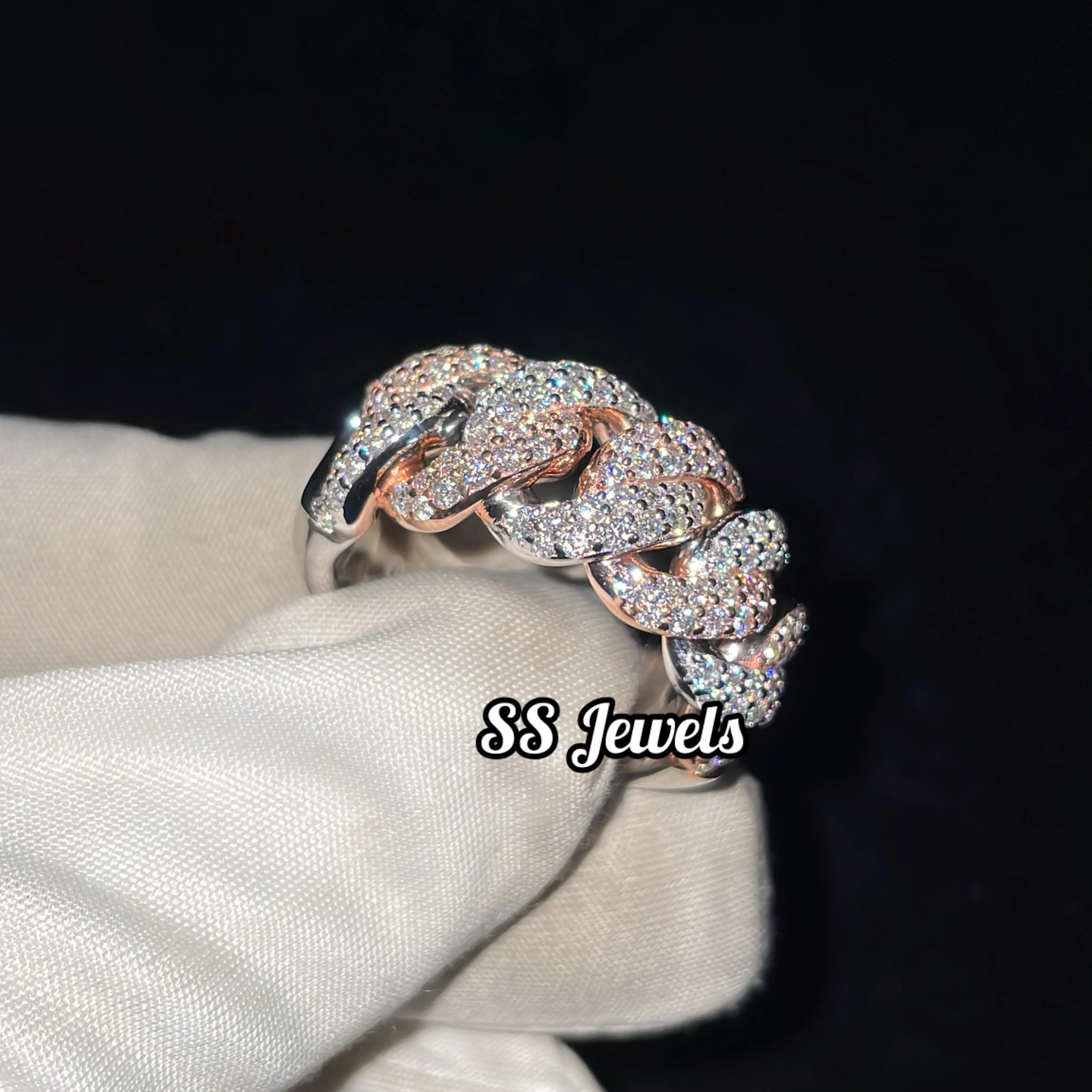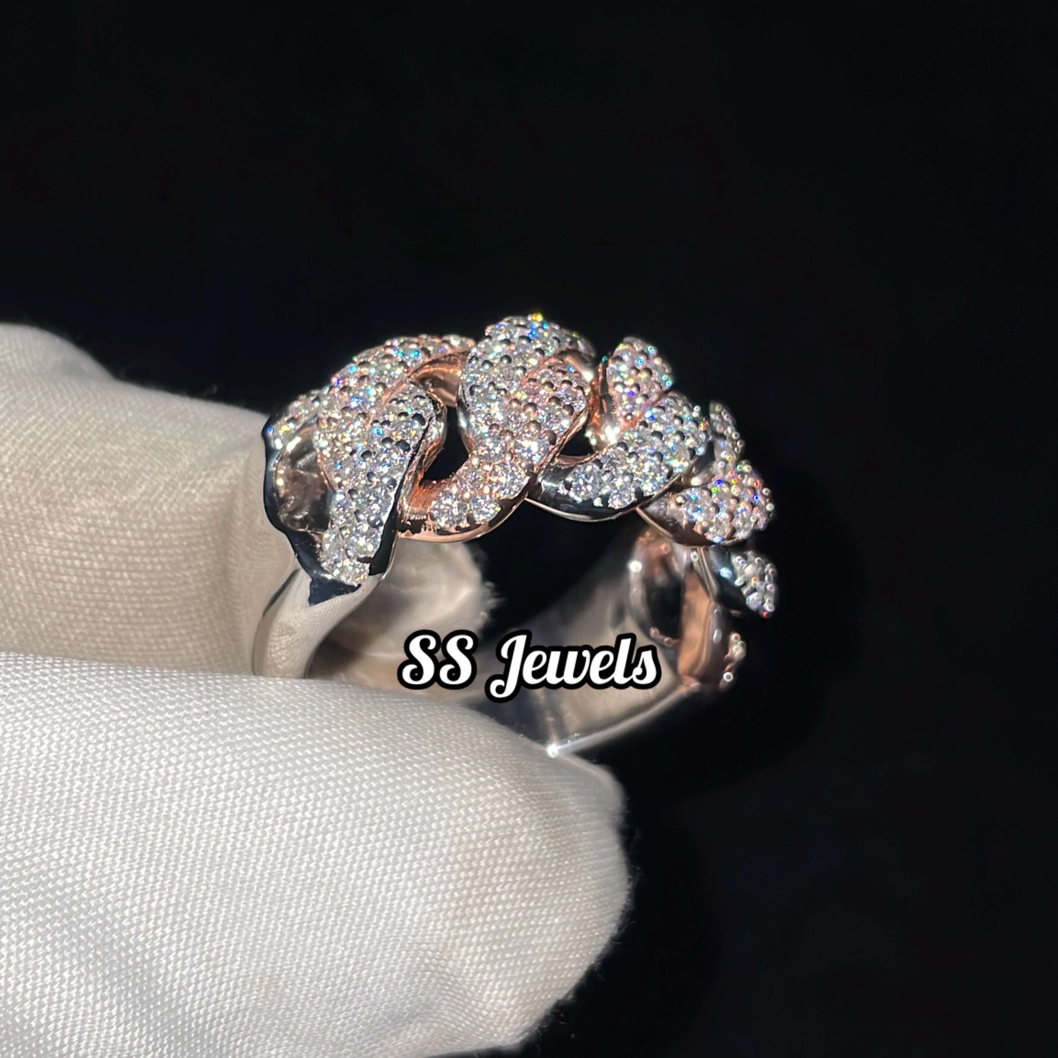 New Style 925 Silver Half Cuban Link Men's Ring Fully Iced Moissanite Wedding Religious Rhodium Plated Jewelry