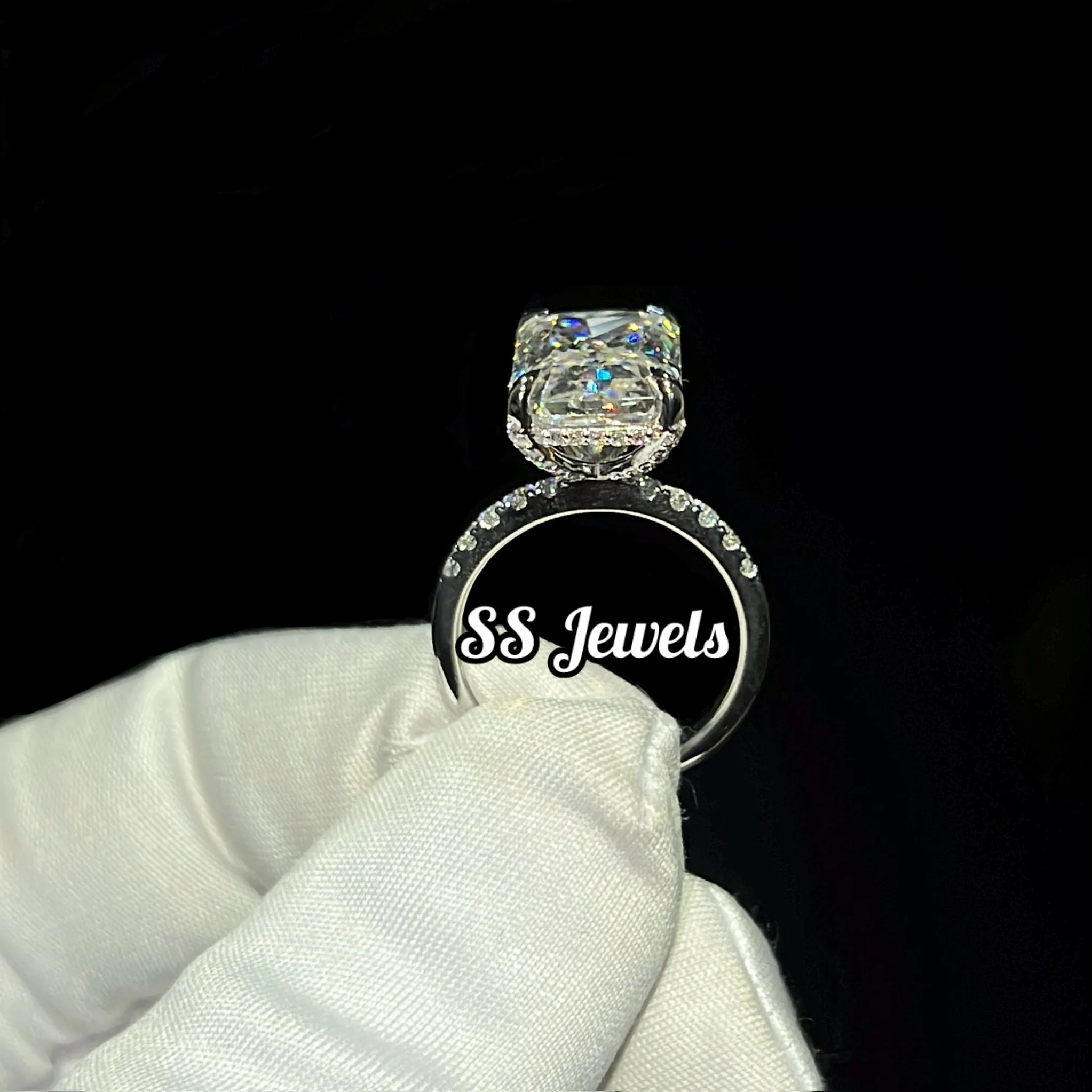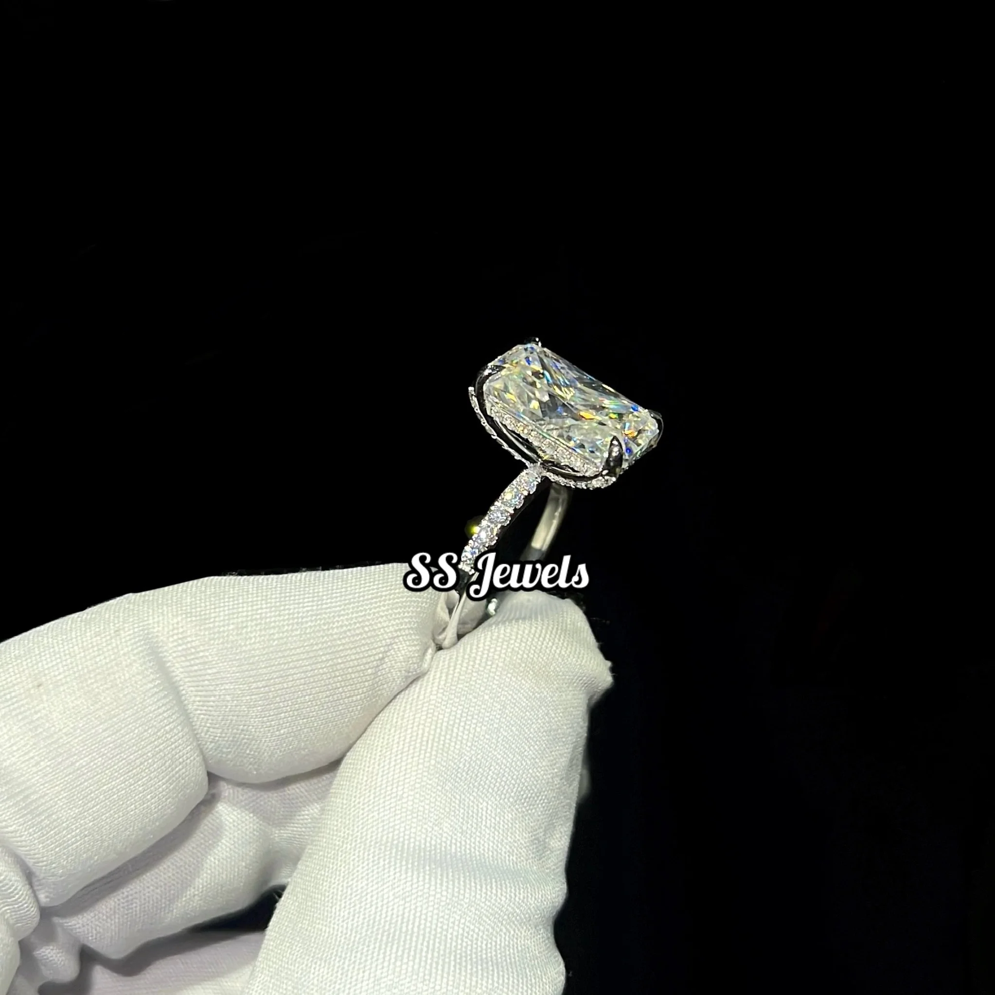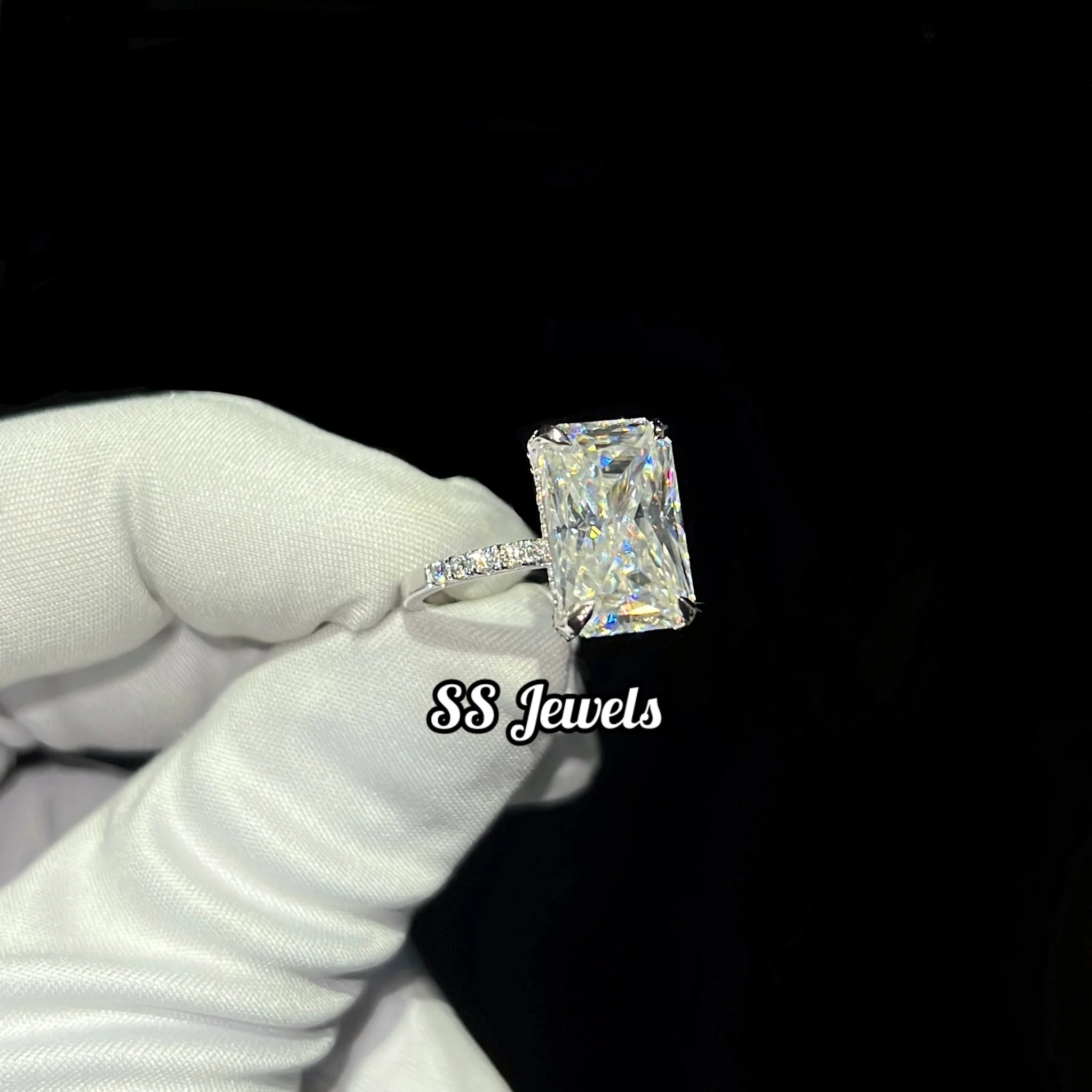 6ct VVS Moissanite Engagement Ring 10K White Gold Radiant Cut Prong Setting Rhodium Plated Wedding & Anniversary Gift