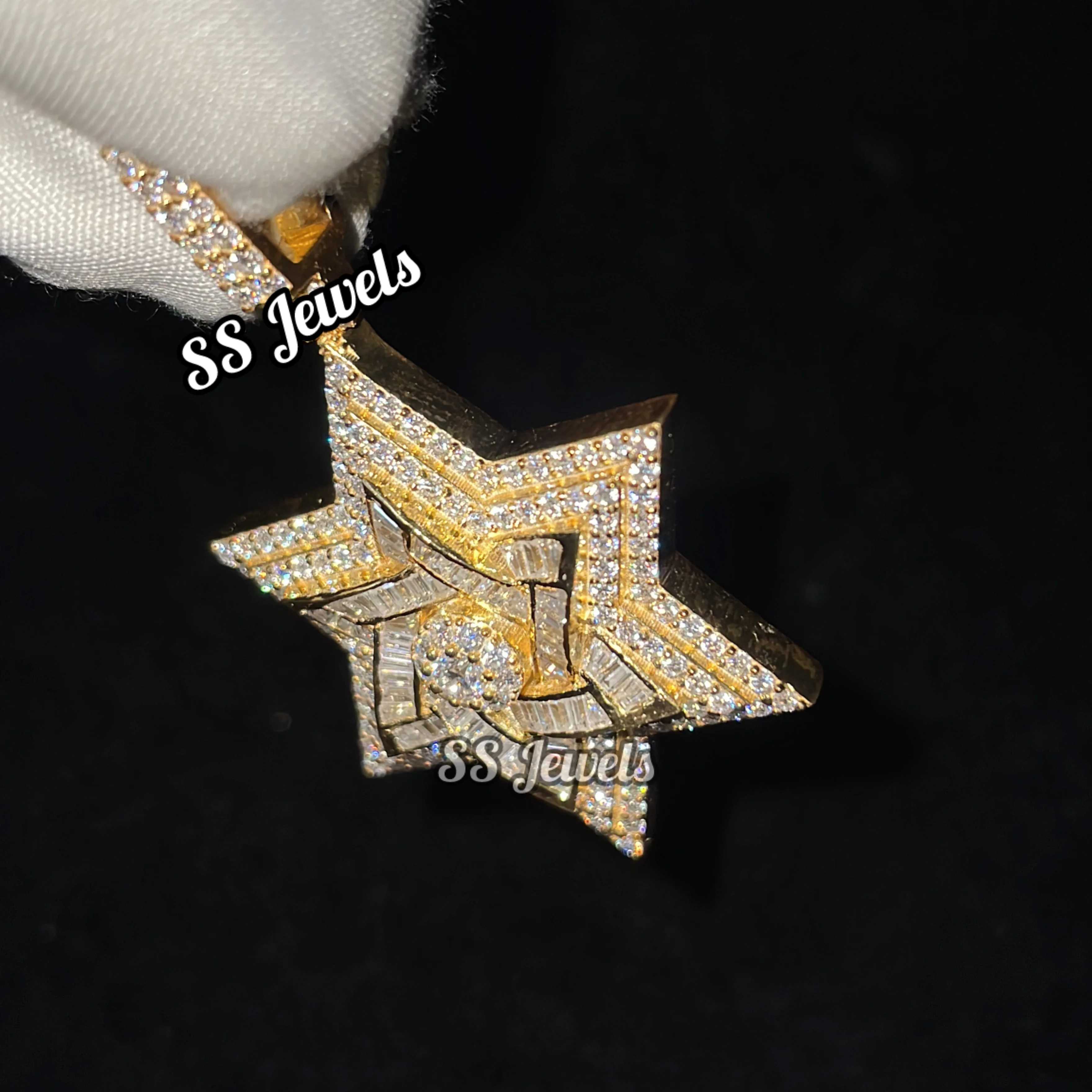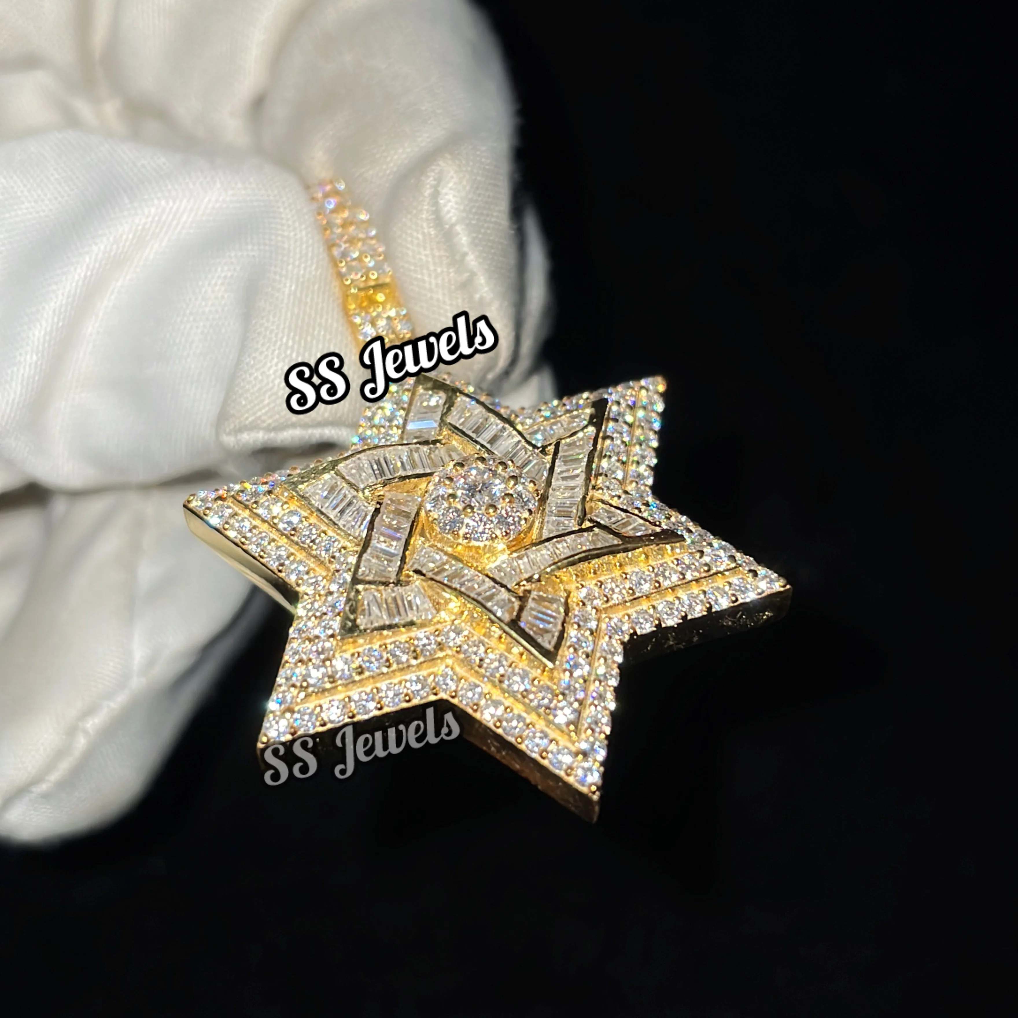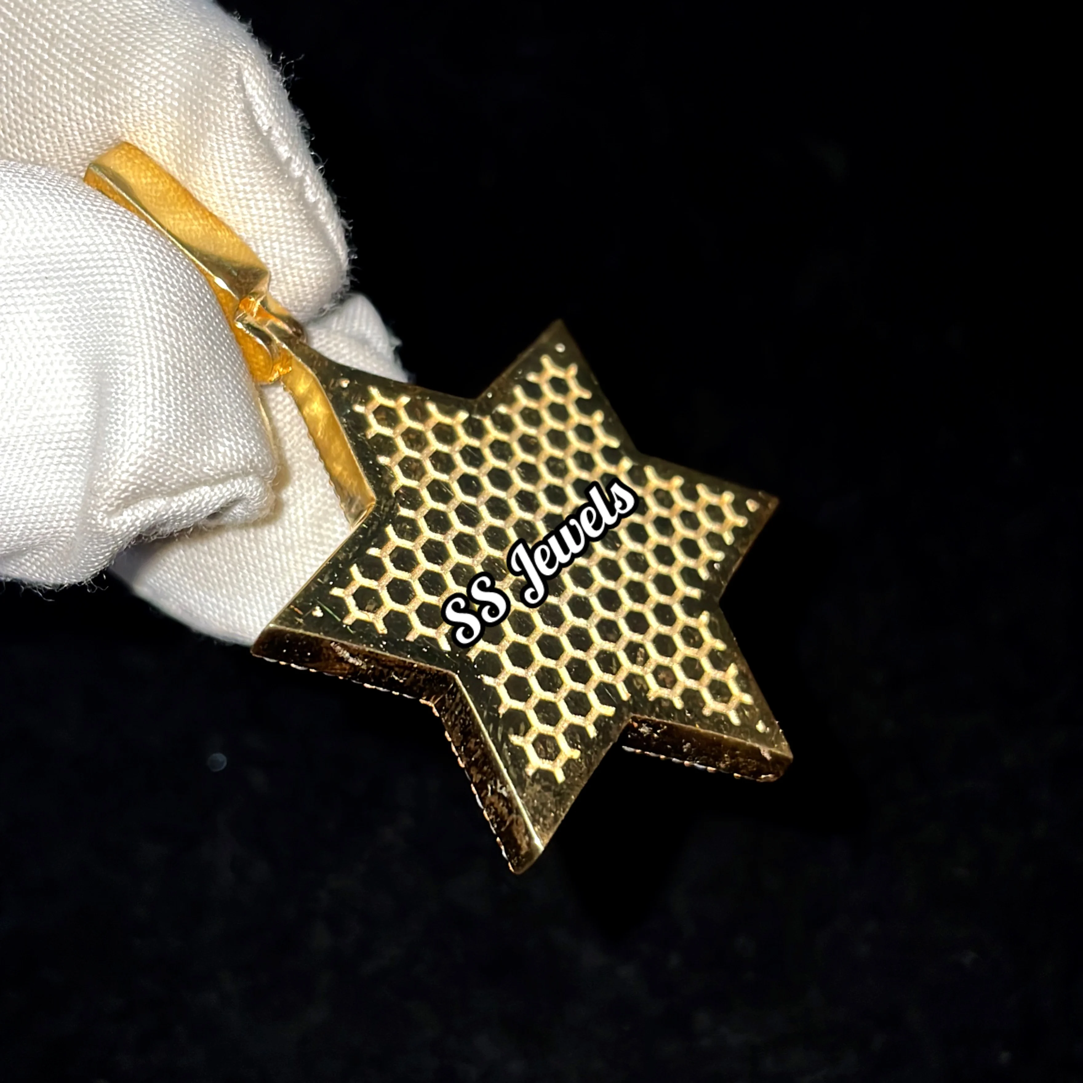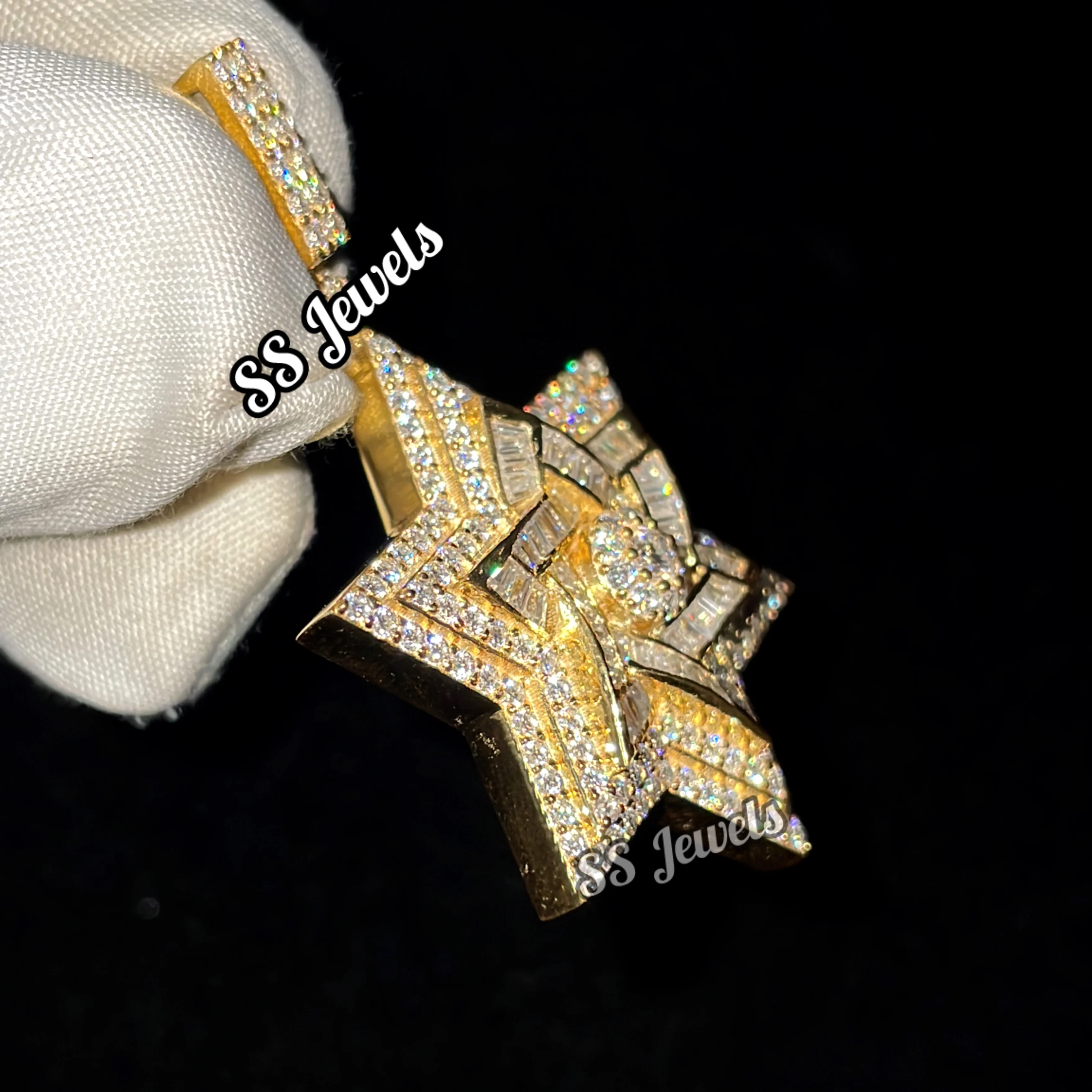 Unisex Custom Shield David Pendant VVS Lab Grown Diamond Star Necklace 925 Sterling Silver Brilliant Cut Rhodium Plated Trendy