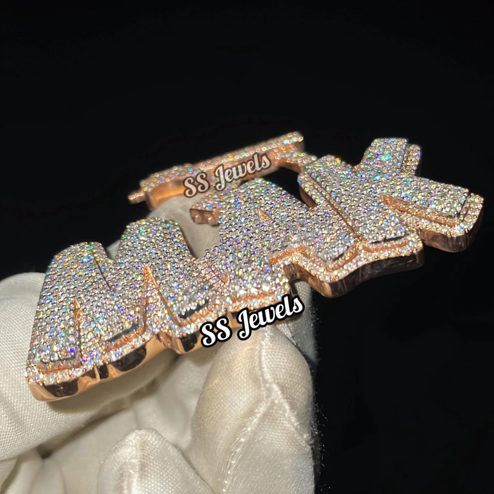 Luxury Hip Hop Custom VVS Moissanite Pendant on 925 Sterling Silver Rhodium Plated Gun Bail Bustdown Unisex Necklace