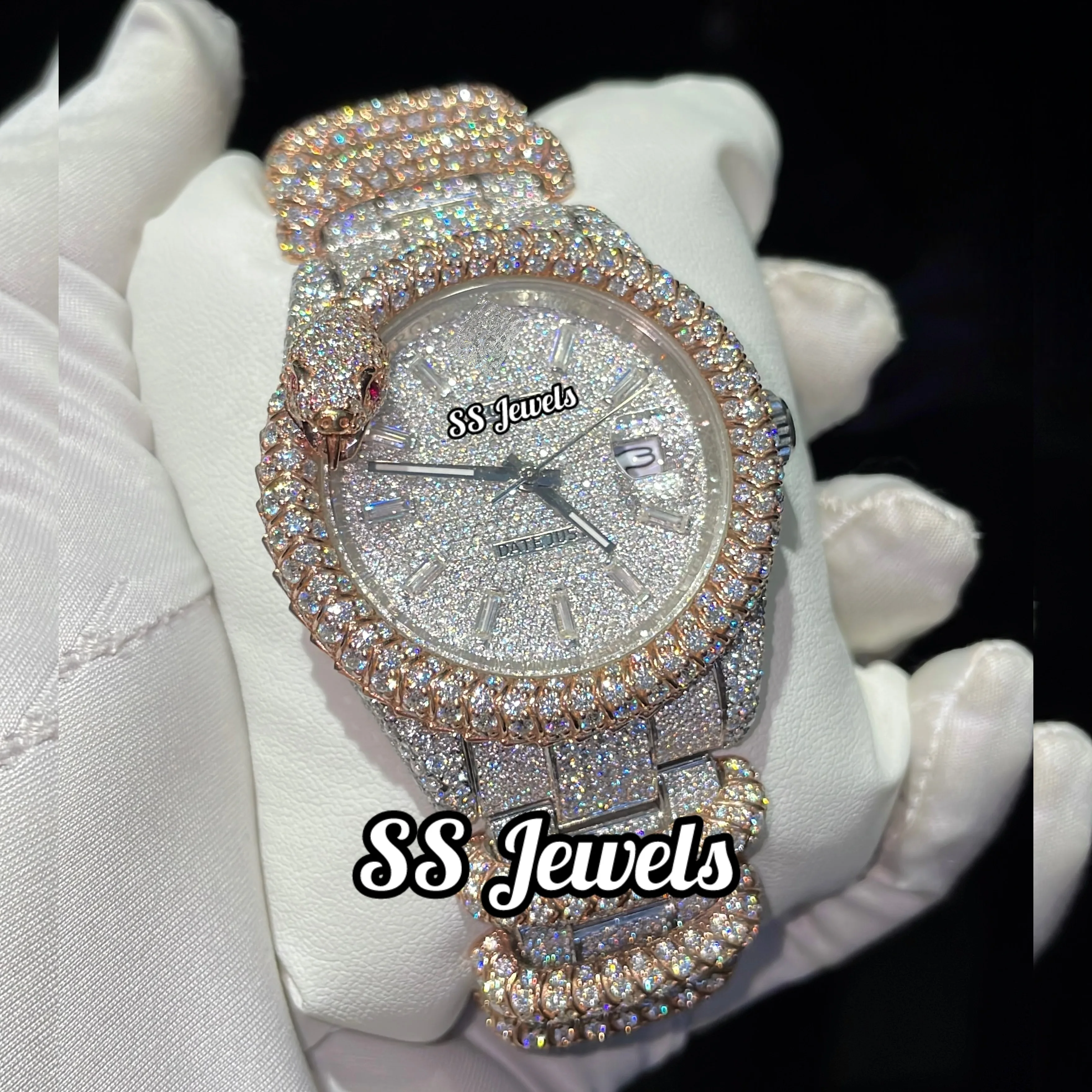 Men's Luxury Hip Hop 3D Snake 41 MM Stainless Steel Customized Mechanical Watch Analog Glass High Quality Moissanite