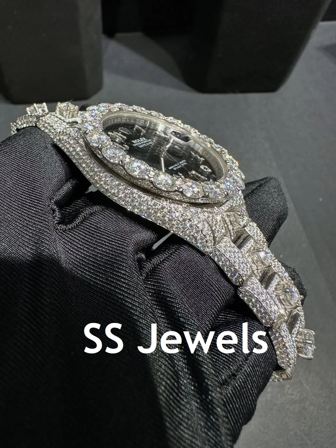 Real VVS1 Moissanite Diamond Stainless Steel Glass Japan Mechanical Automatic Business Analog Arabic Letter Men's Hip Hop Watch