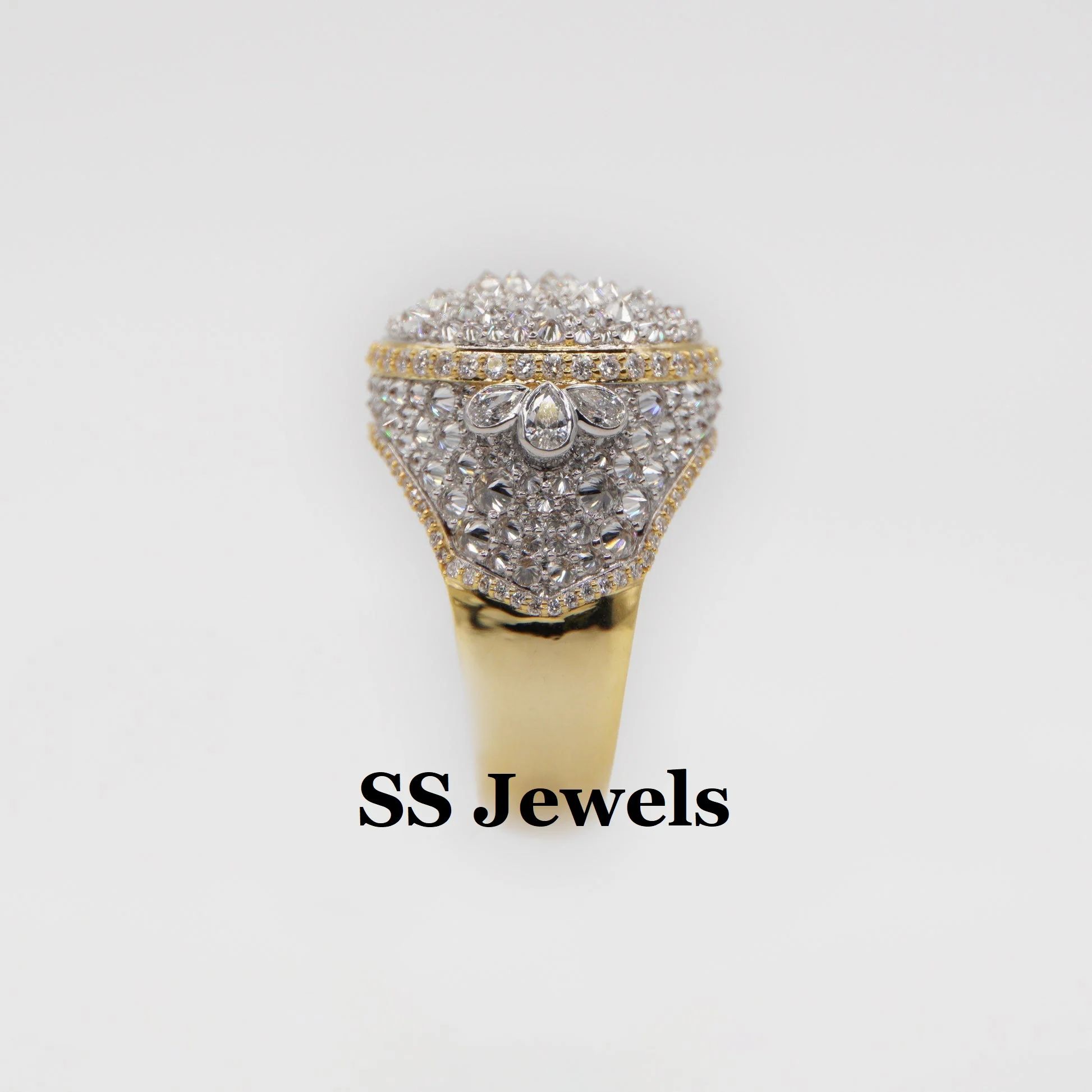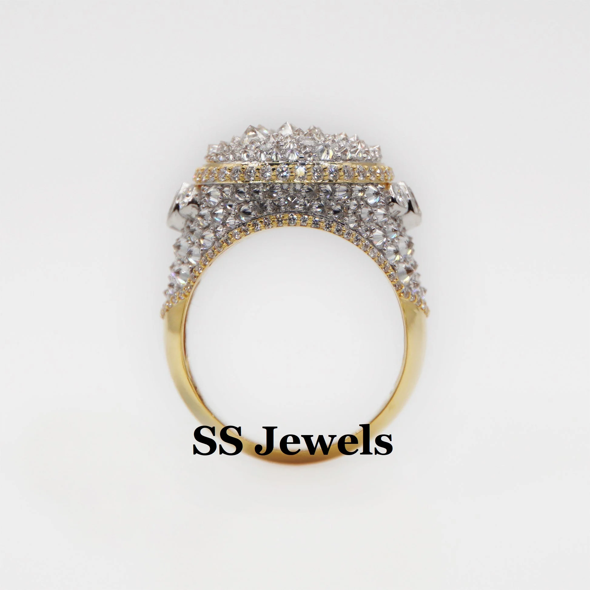 Upside VS1 Moissanite Brilliant Cut Prong Setting Rhodium Plated 925 Silver Iced Hip Hop Rapper Men's Trendy Champion Style Ring