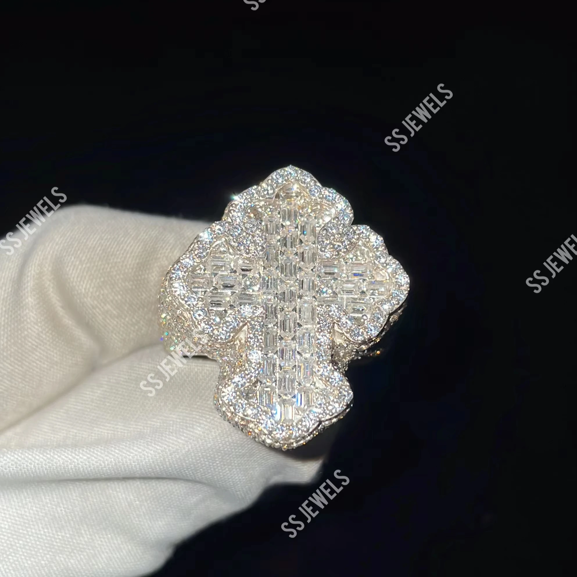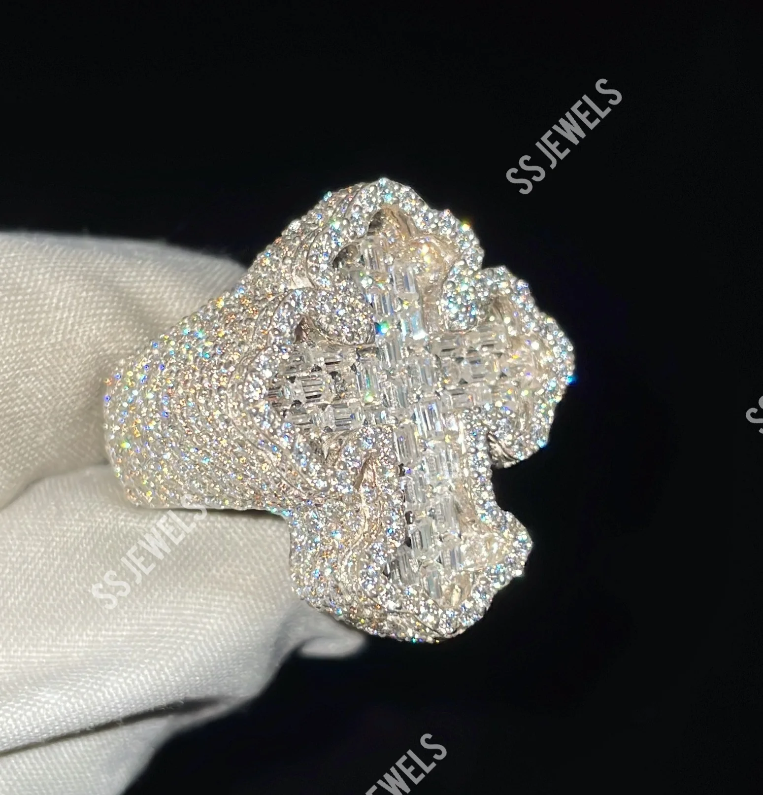 Custom Made VVS Lab Grown Diamond Jesus Cross Ring 925 Silver Gold Plated Iced Cross Brilliant Cut Bustdown Unisex Christmas