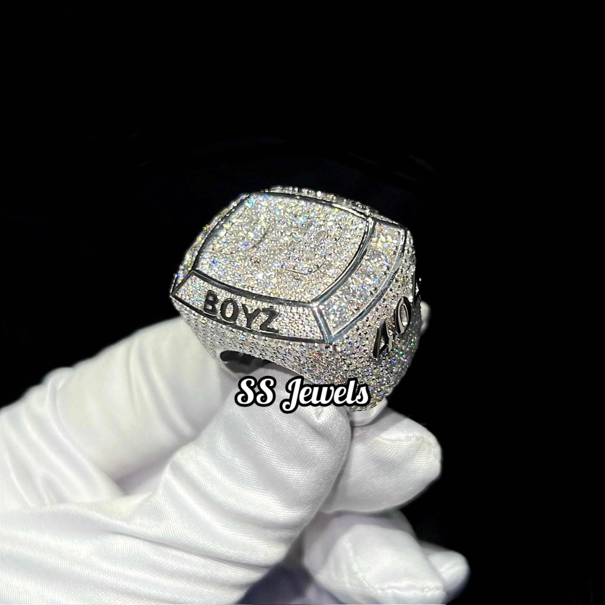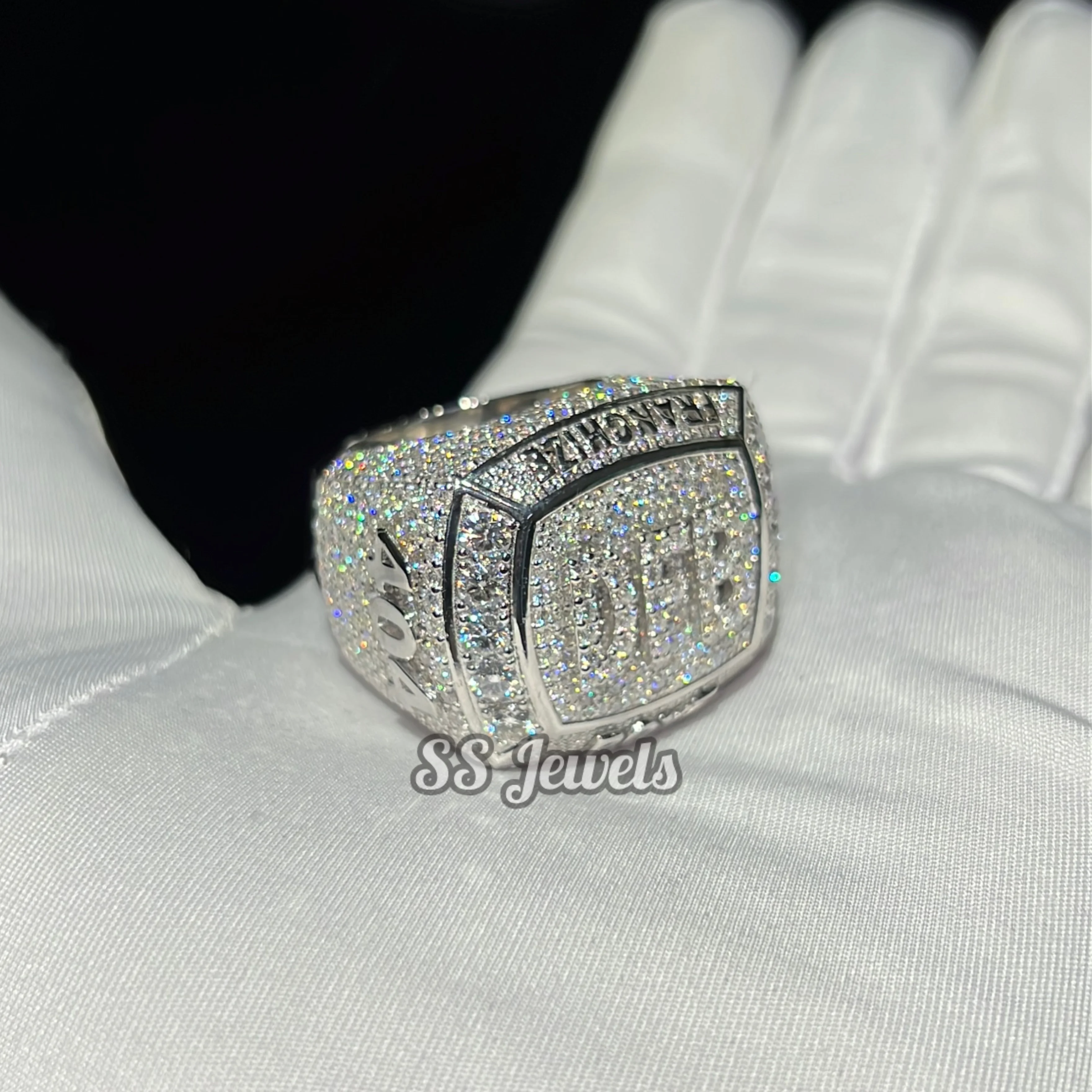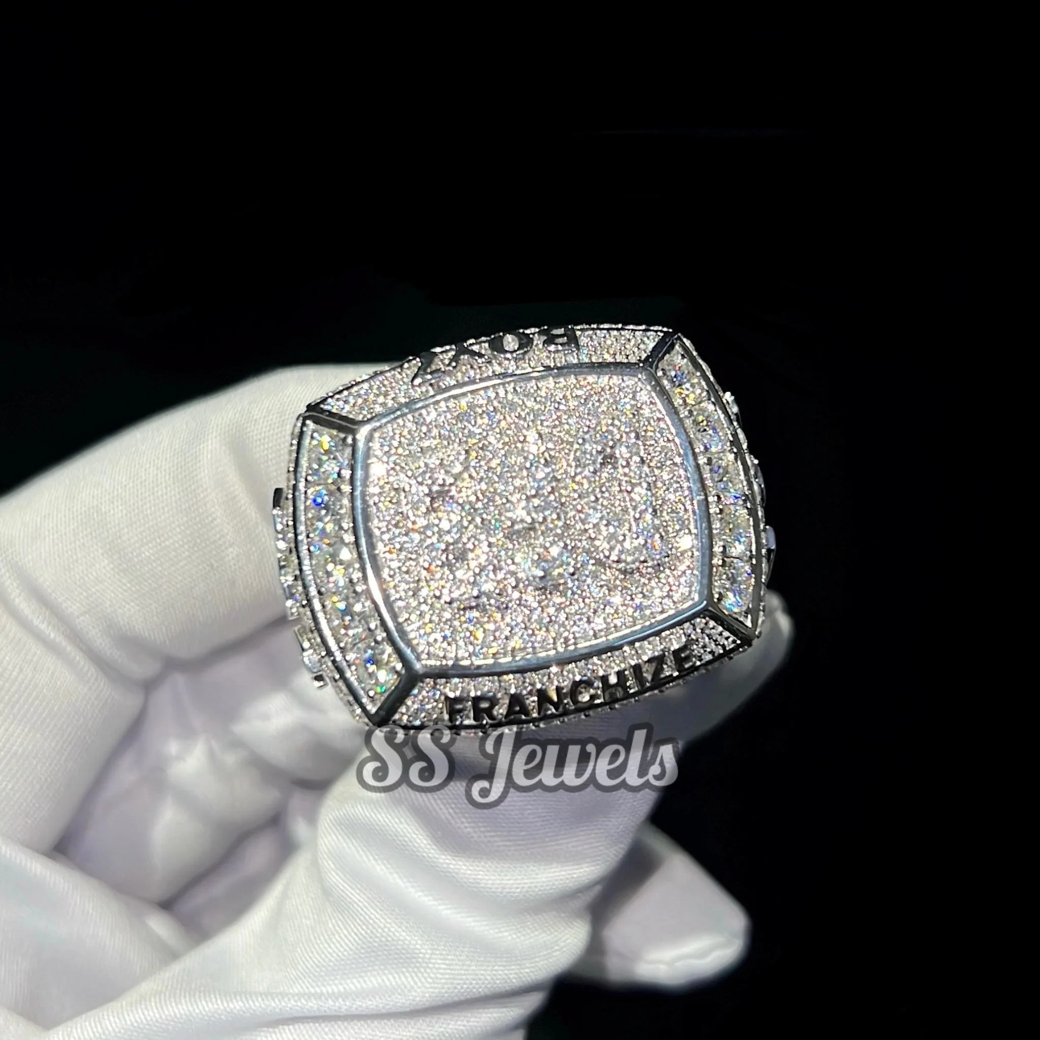 Hip Hop Men's Championship Moissanite Ring 925 Silver Custom Made Rapper Champion Bustdown Iced Rhodium Plated Prong Setting