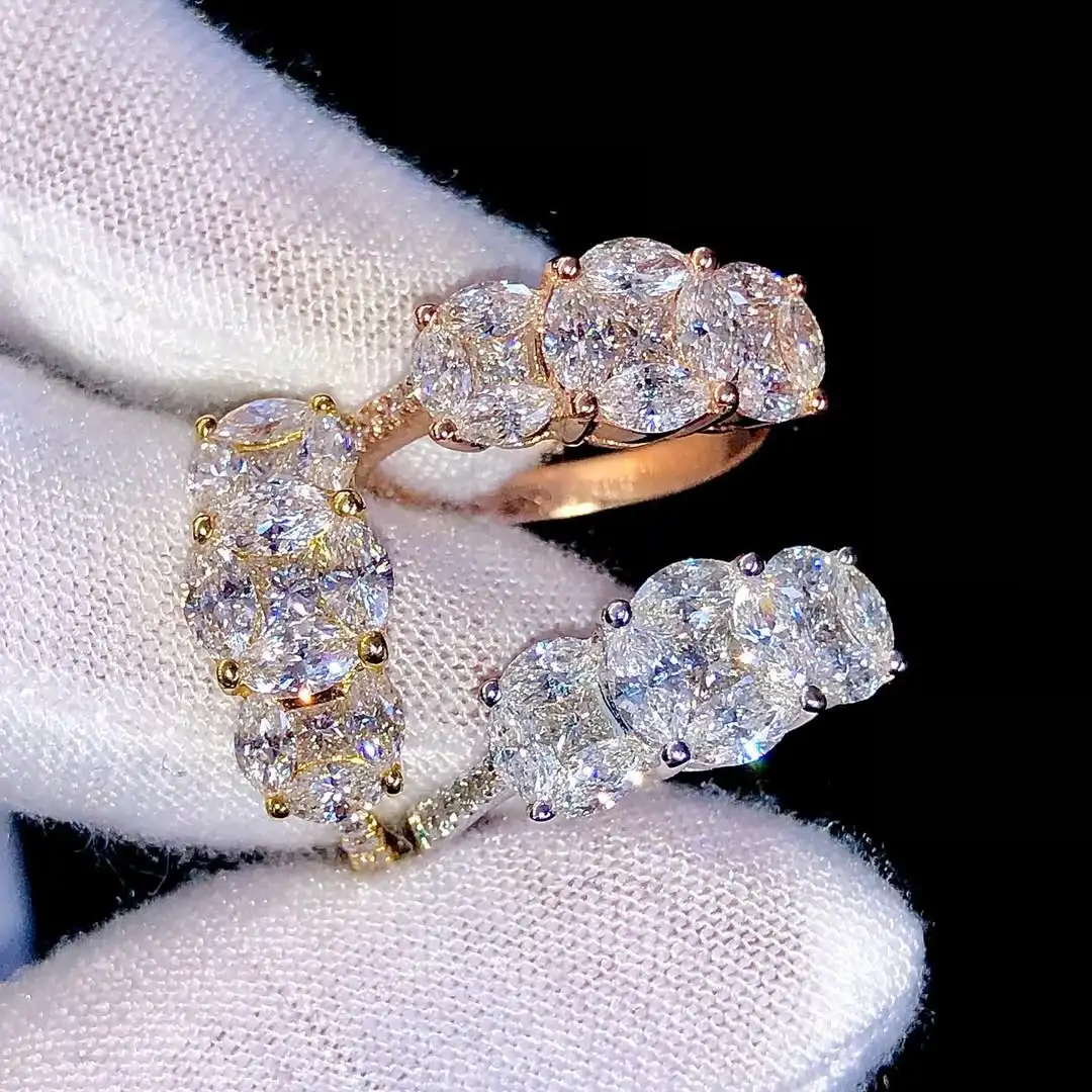 Women's Tri-Color Moissanite Diamond Ring Set 925 Sterling Silver Brilliant Cut Engagement Bands Rhodium Plated Prong Setting