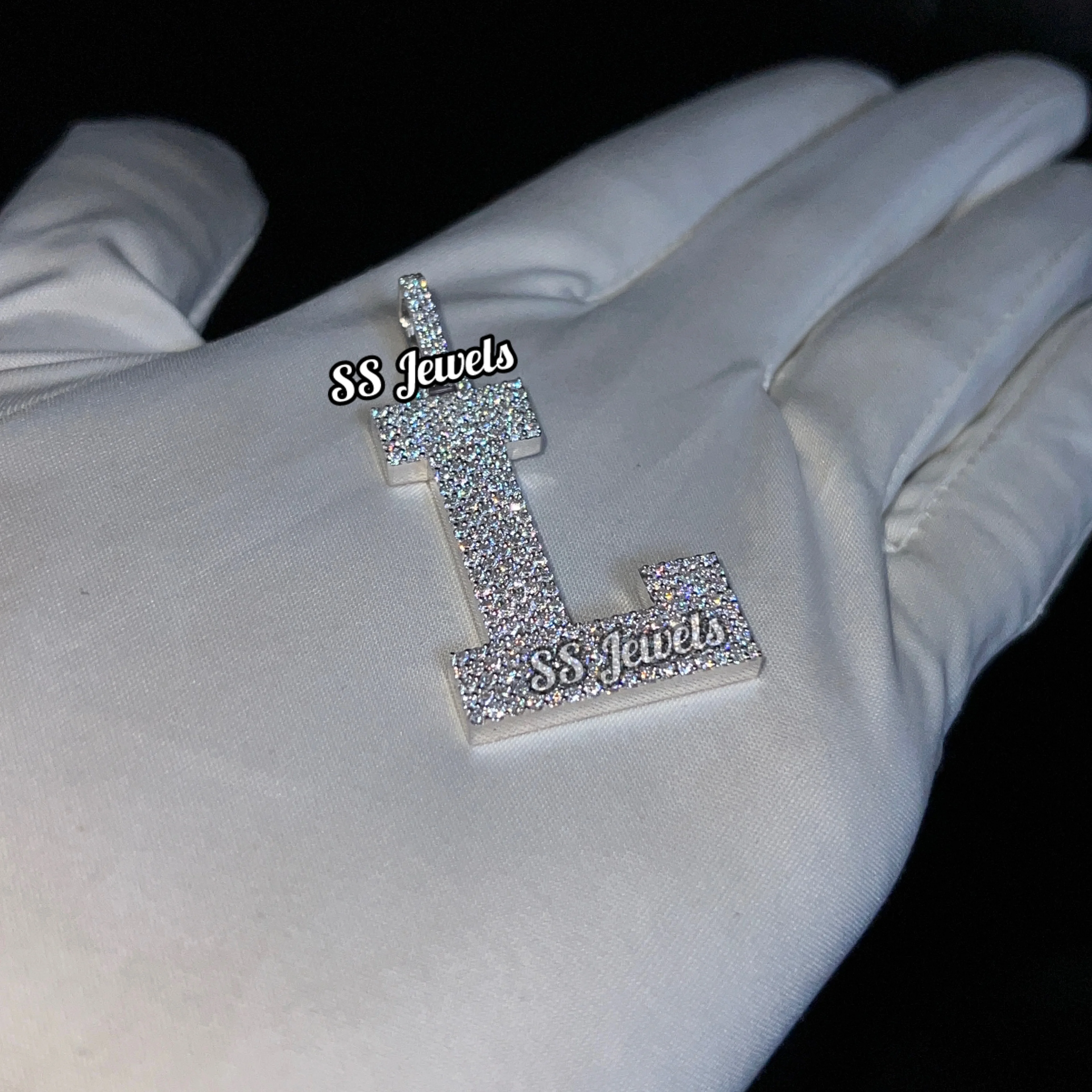 Custom Personalized 925 Silver Rhodium Plated Iced Charm Pendant Initial Letter Logo Moissanite Diamonds Hip Hop Necklace