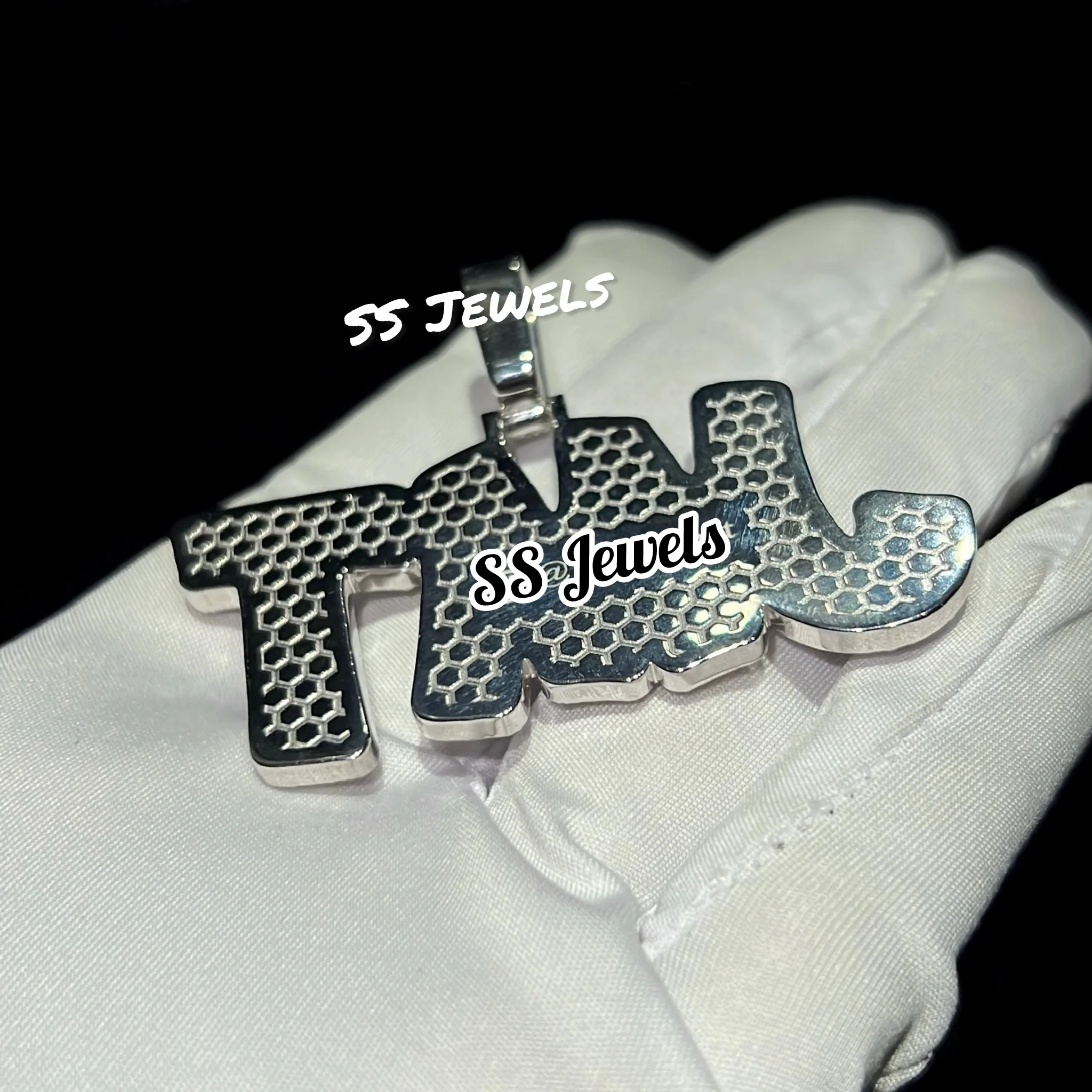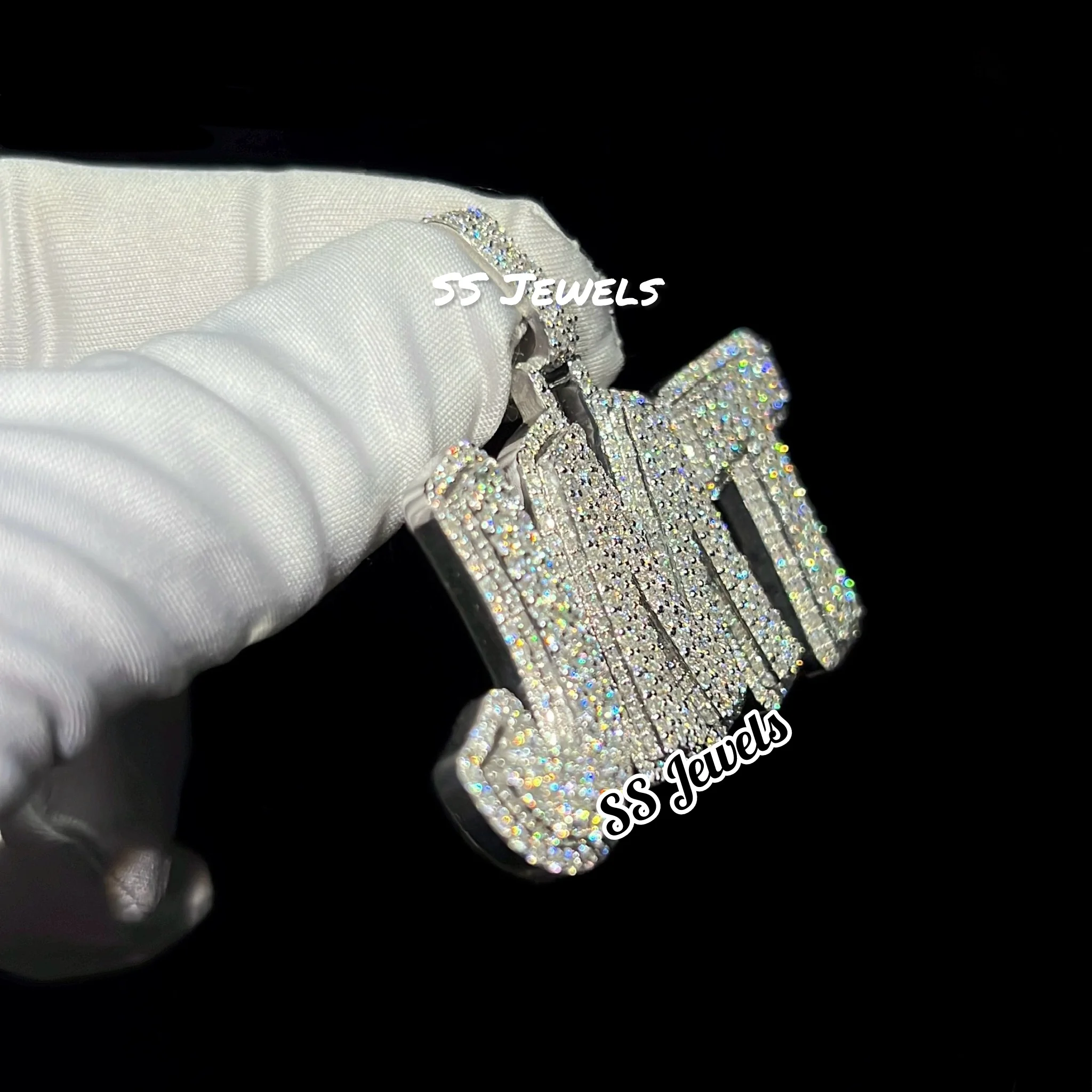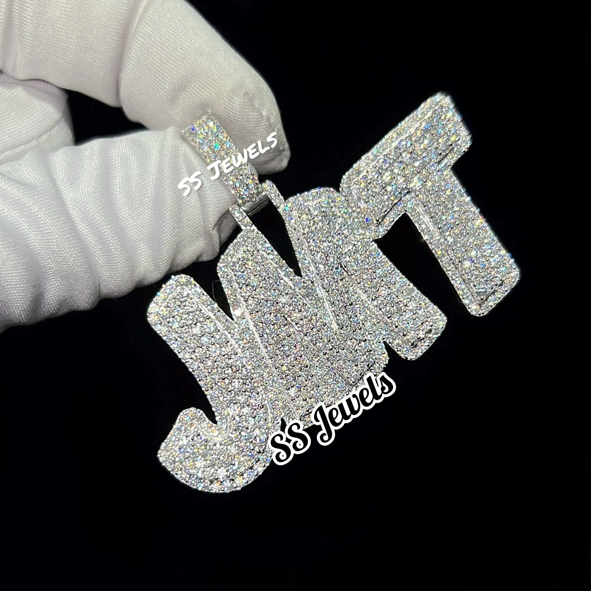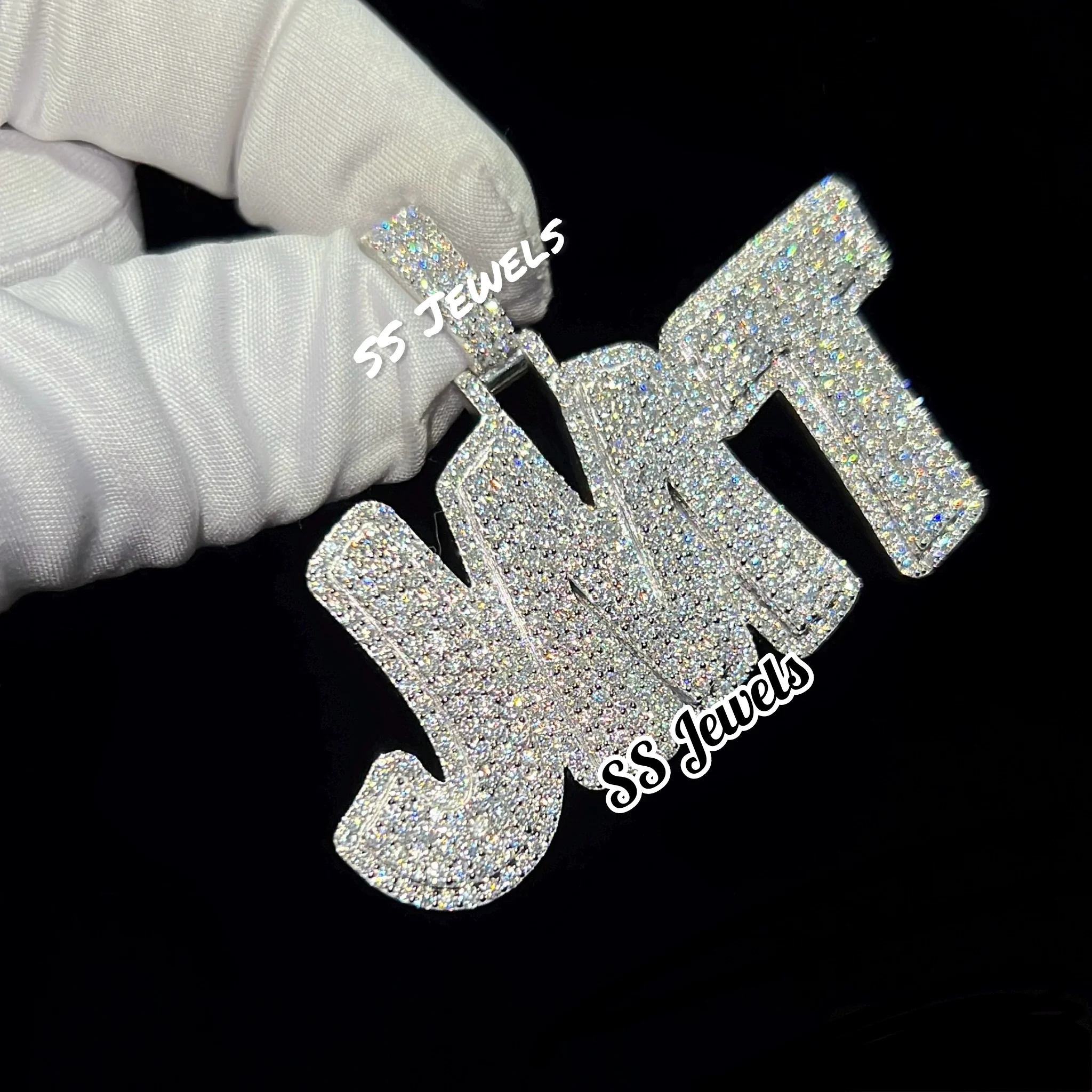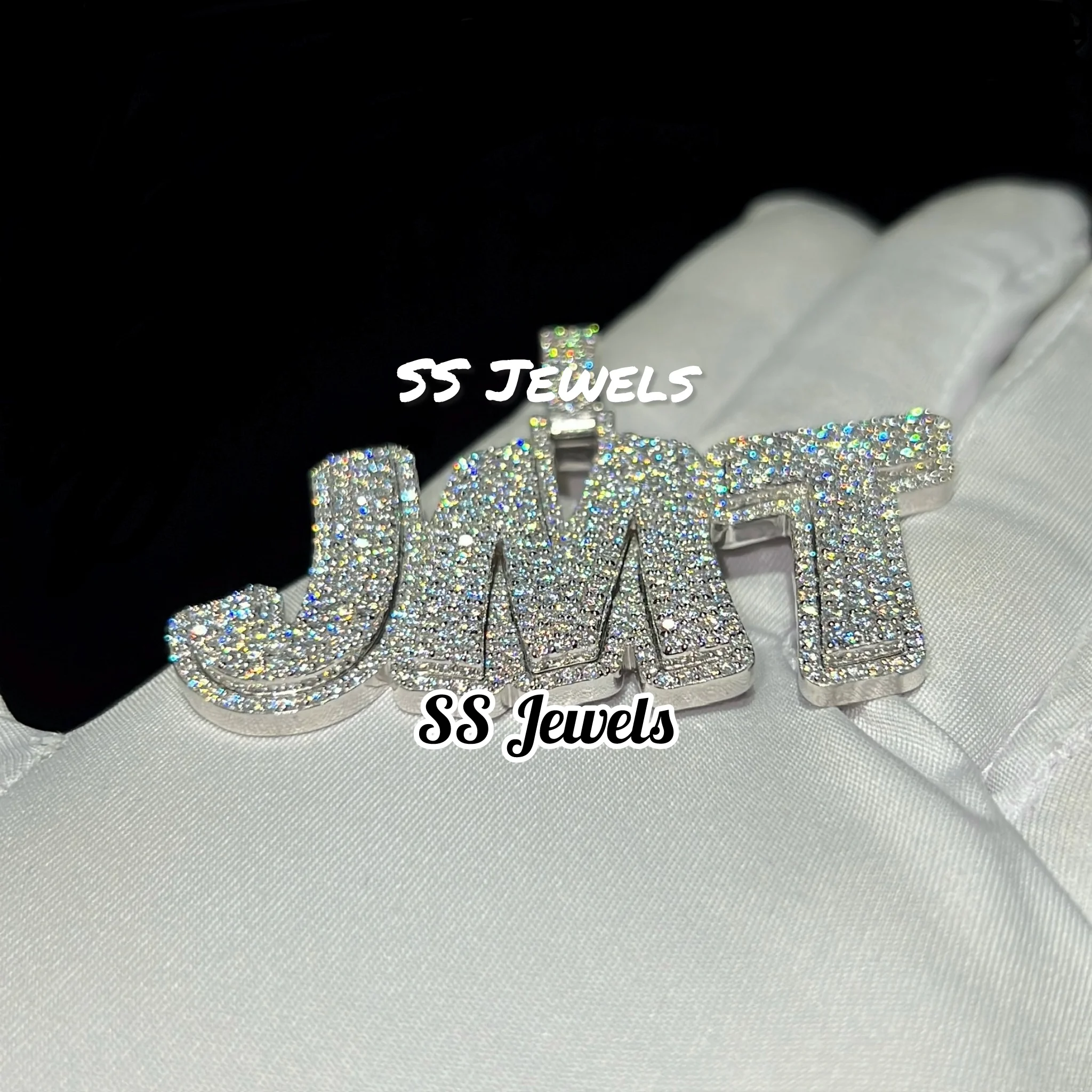 Sterling Silver VVS Emerald-Cut Moissanite Custom JMT Iced Out Name Hip Hop Pendant with 13MM Cuban Link Chain