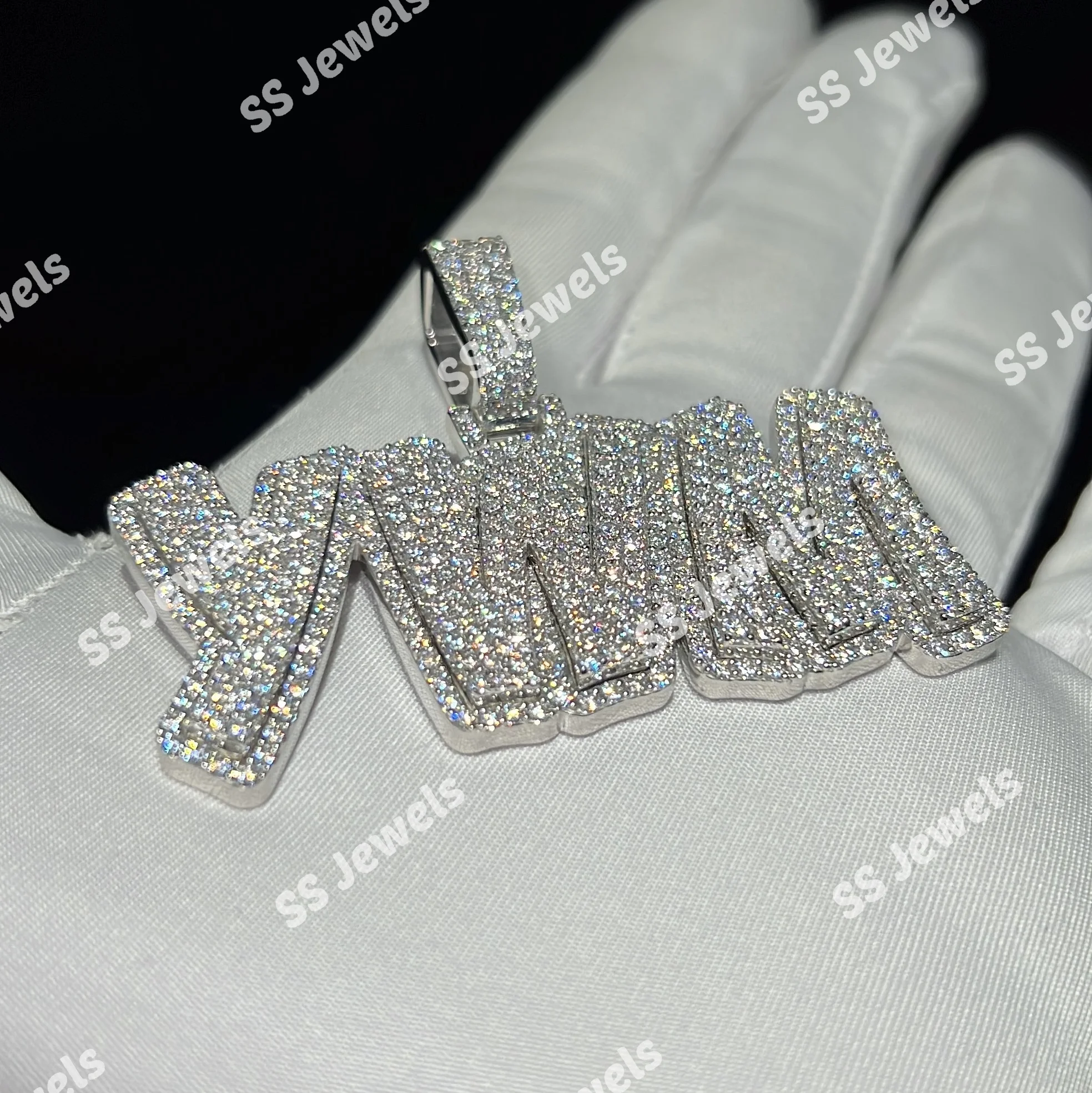 Custom Initial Name Pendant S925 VVS D Lab Grown Diamond Letter Chain Full Iced Charm Rhodium Plated for Men Women Trendy Style