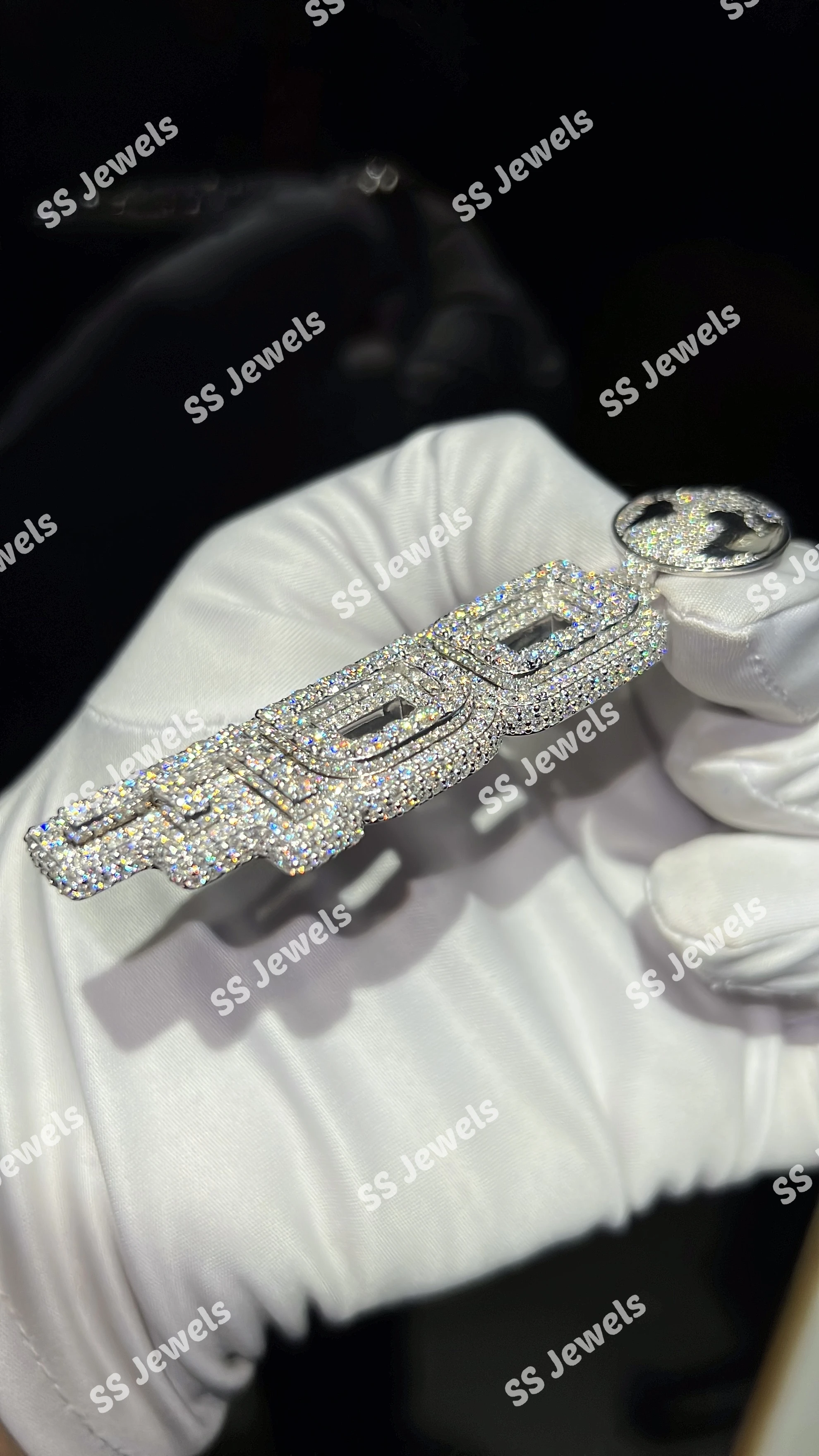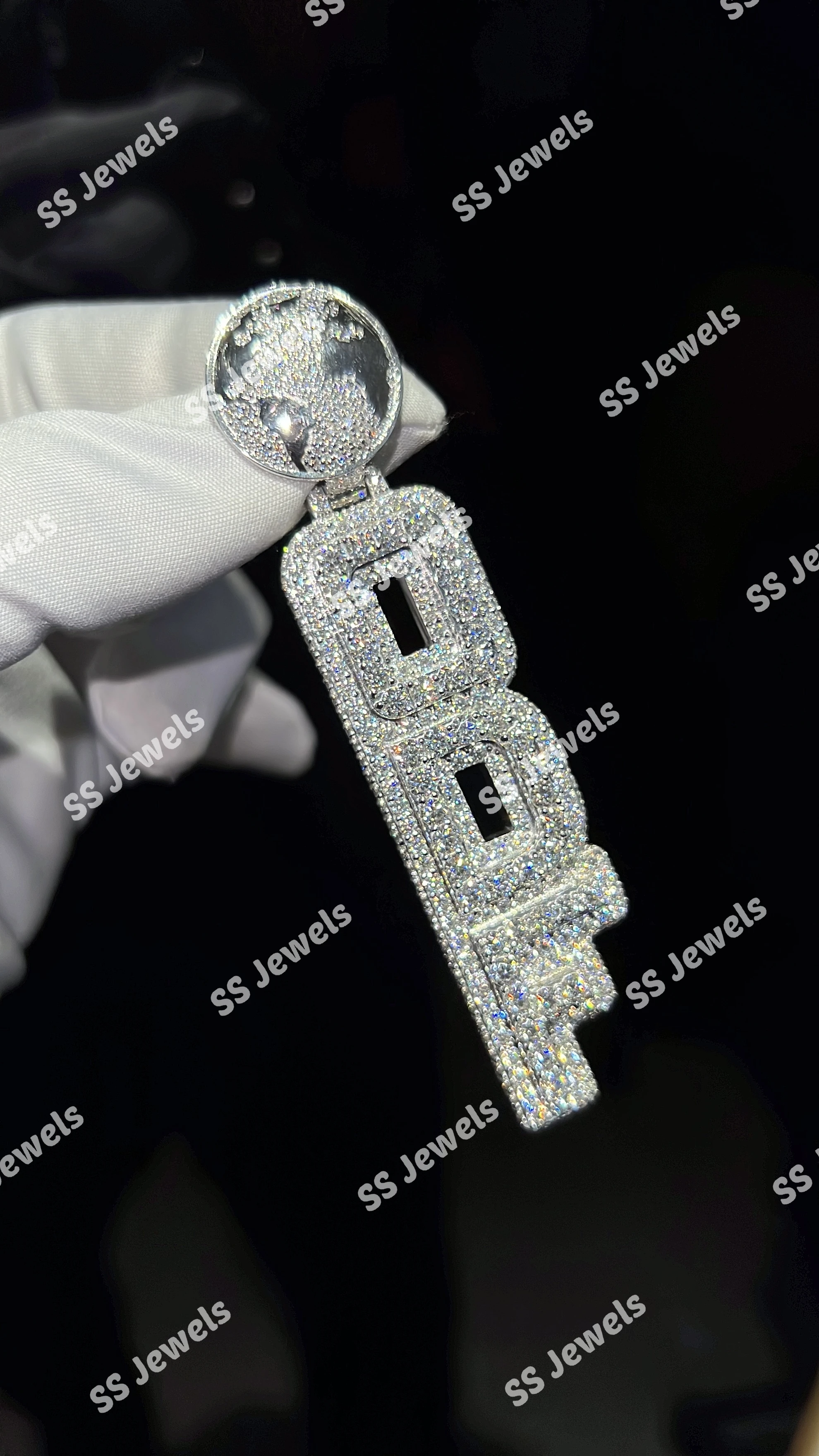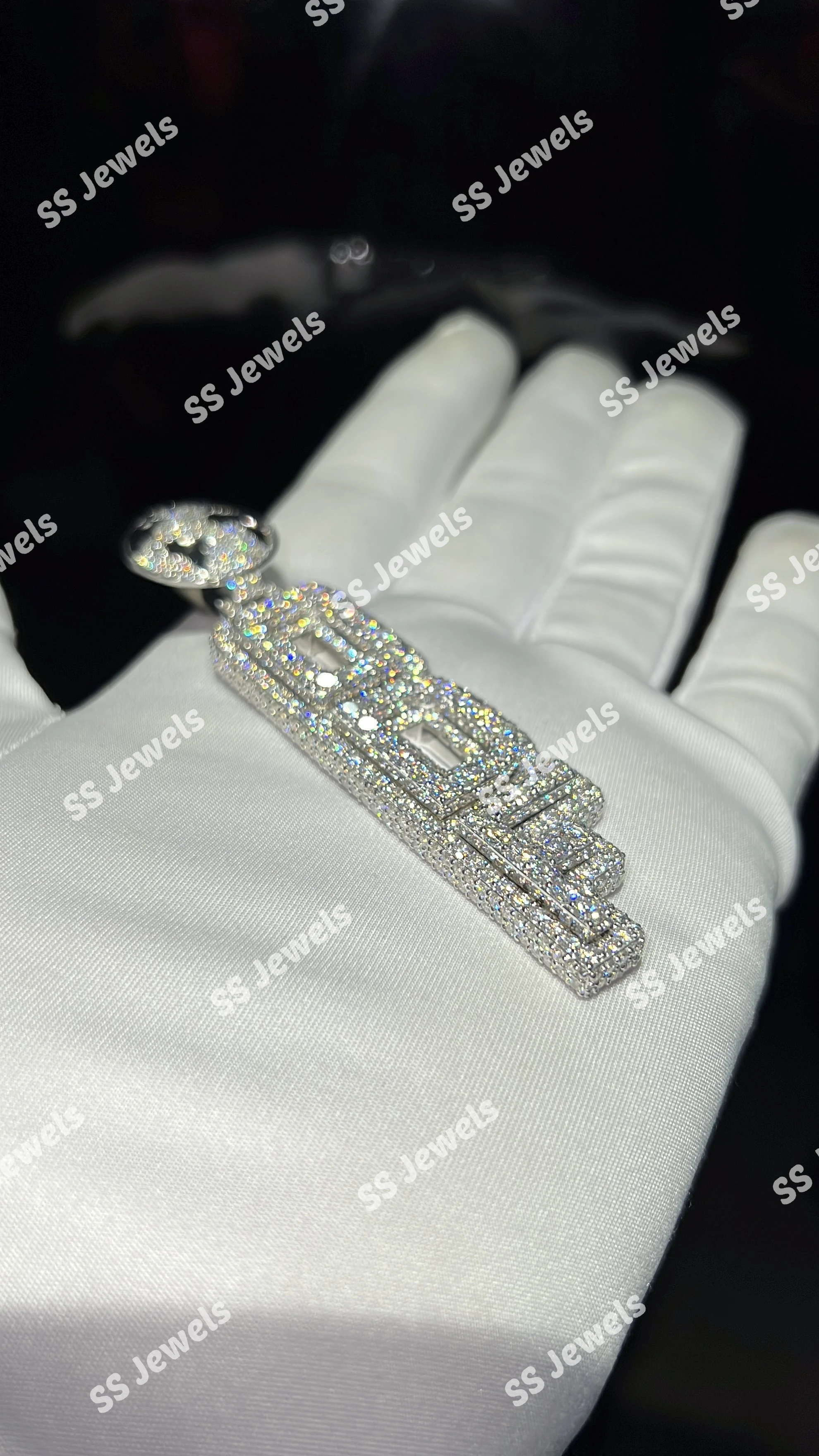 Custom Vertical Letter VVS Lab Grown Diamond Pendant 925 Sterling Silver Rhodium Plated Brilliant Cut Iced Name Diamond Charm
