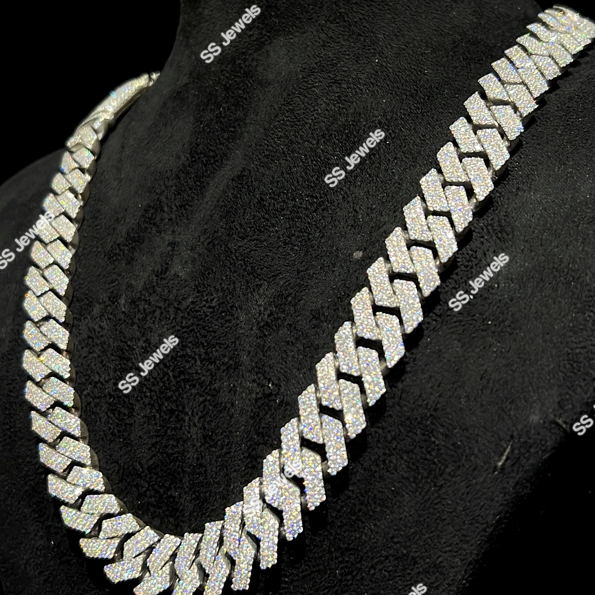 VVS Lab Grown Diamond Sterling Silver Gold Plated Cuban Link Chain 15mm Hip Hop Unisex Gift Necklace