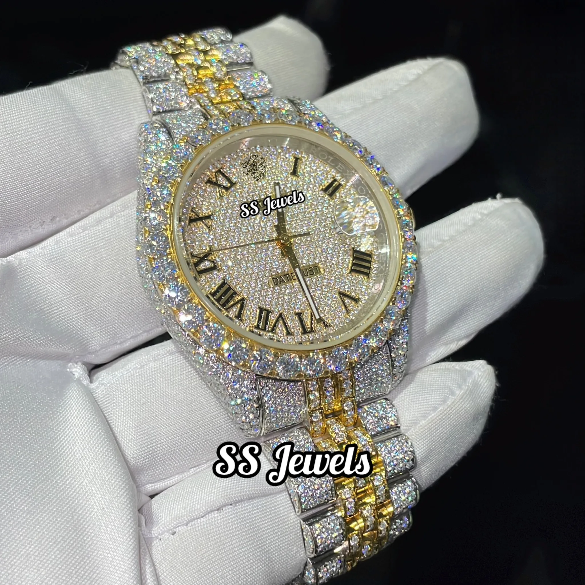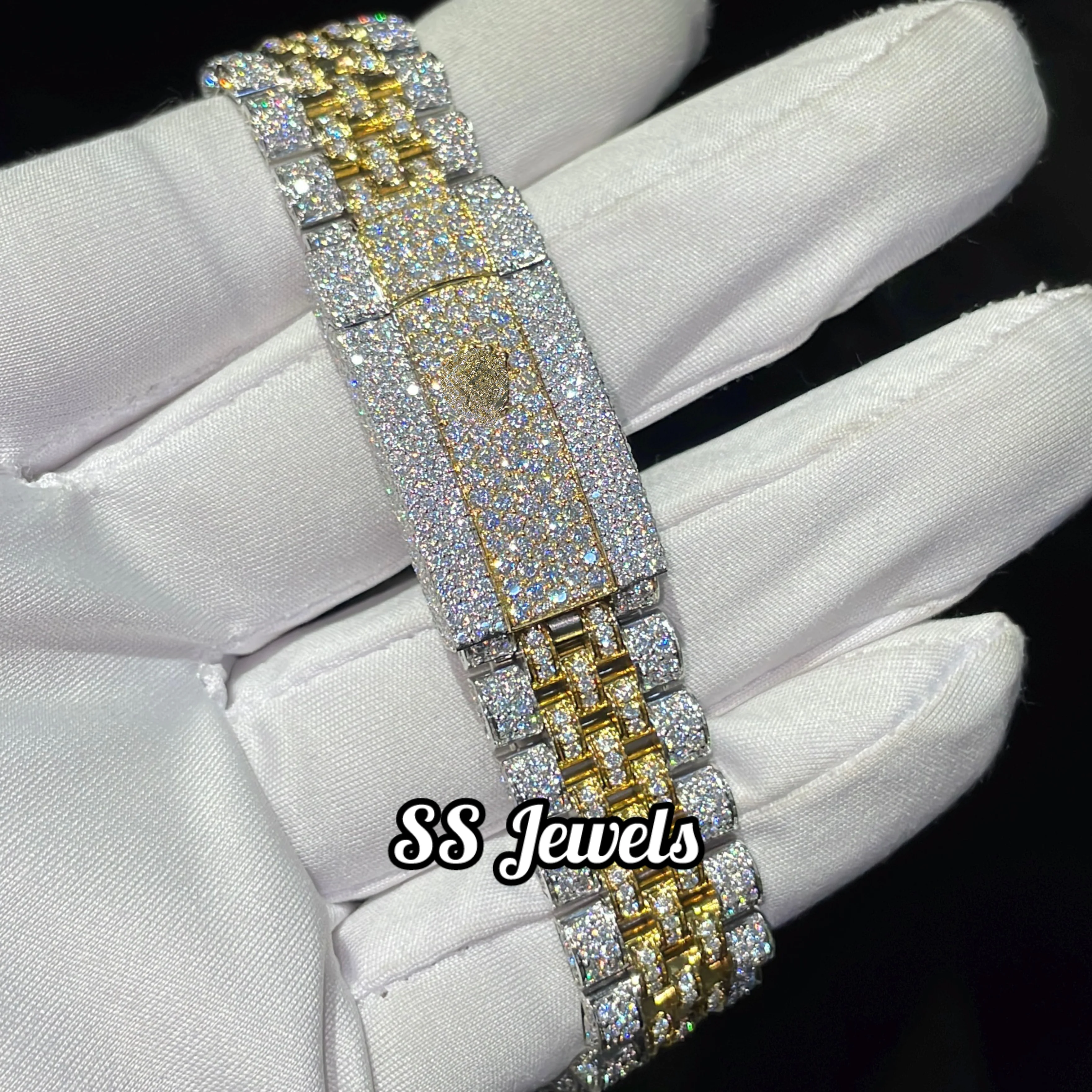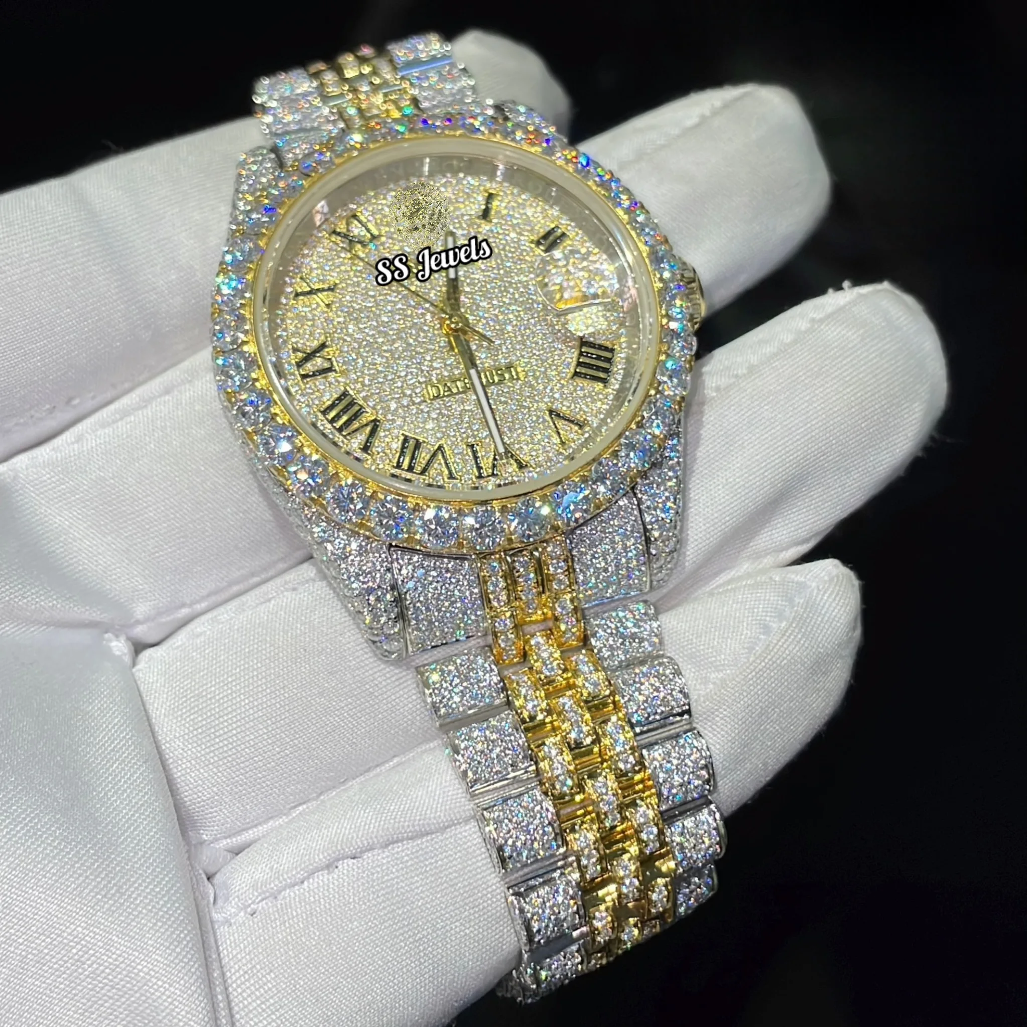 Hot Selling Luxury Handmade Stainless Steel Fully Iced VVS Moissanite Watches Diamond Automatic Movement Analog Display Hip Hop