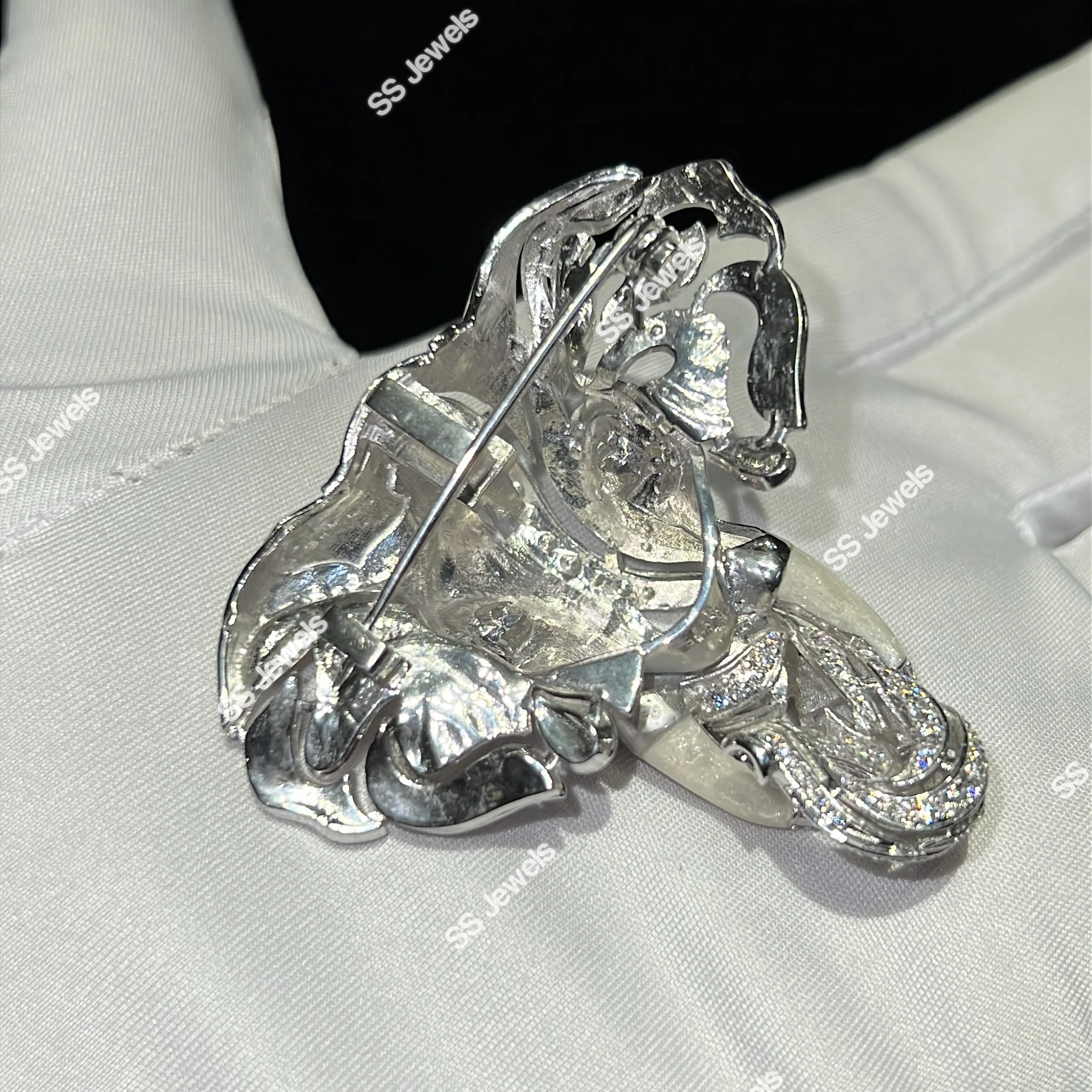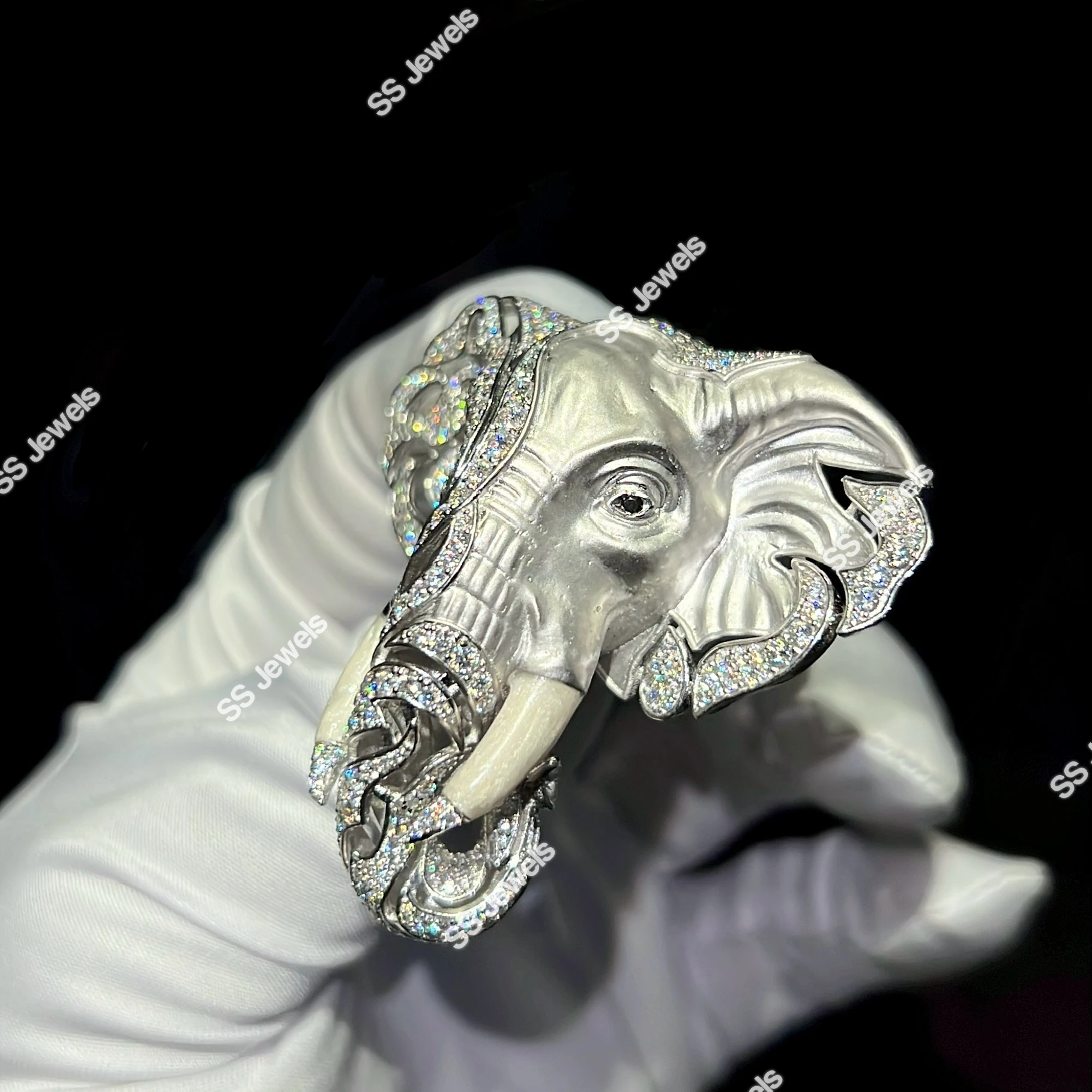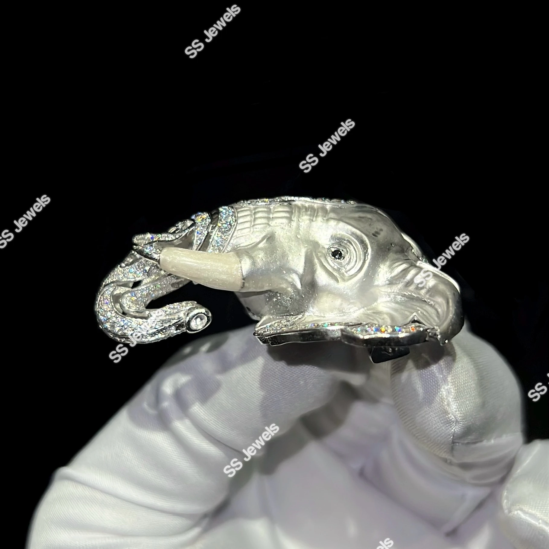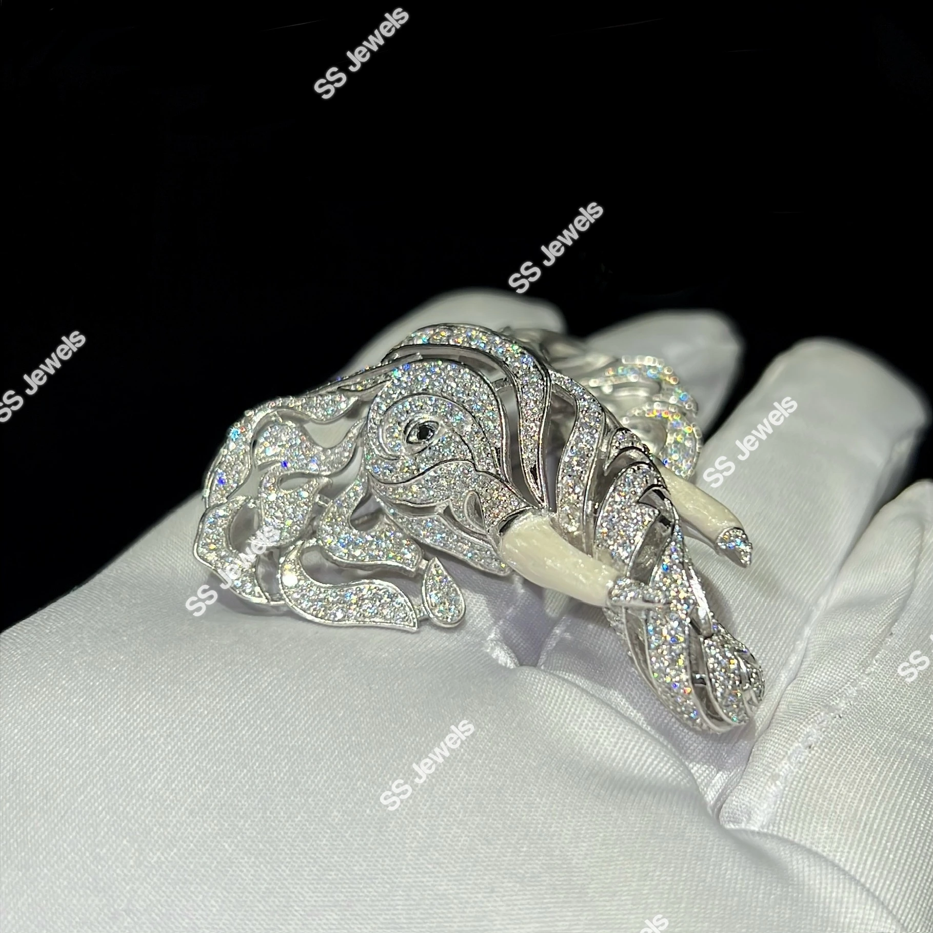 Luxury Sterling Silver Rhodium Plated Elephant Brooch Lab Grown Diamonds Custom Iced Animal Jewelry Pin Designer Statement
