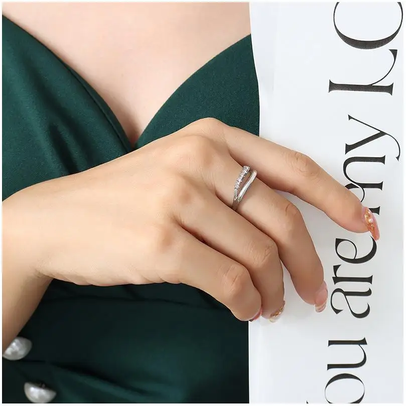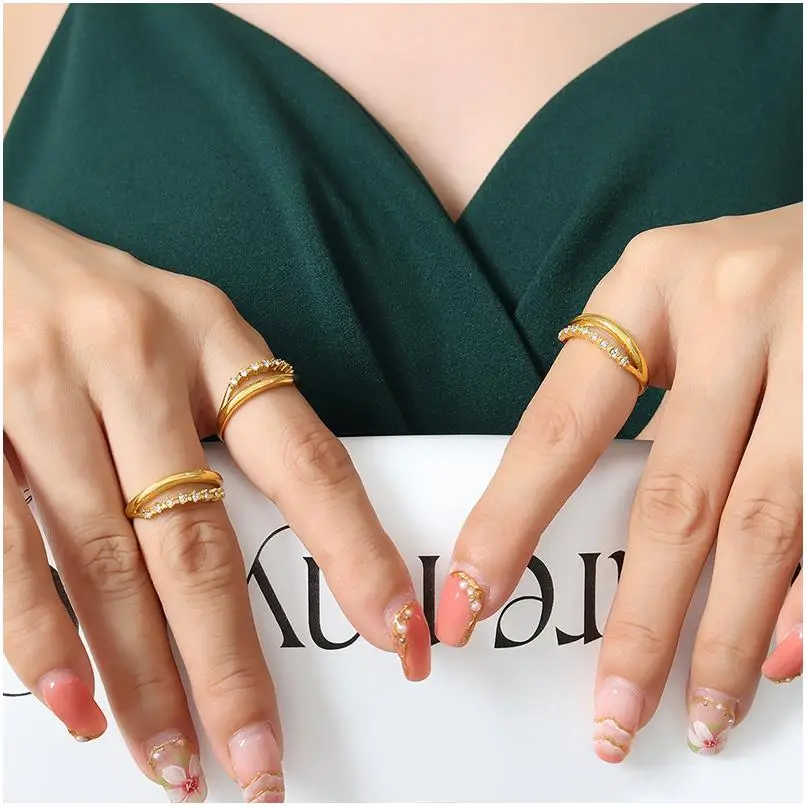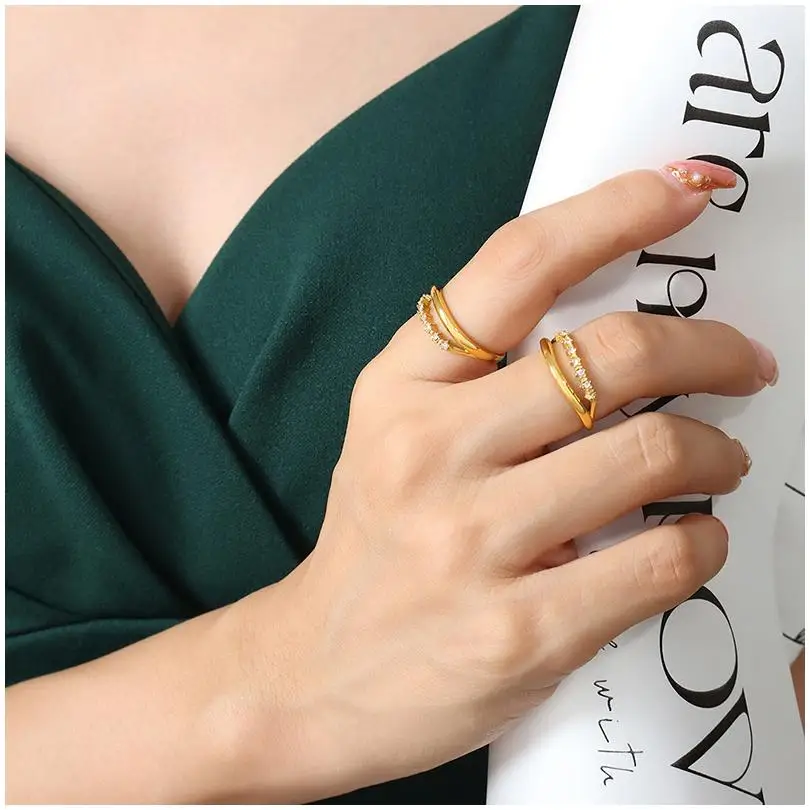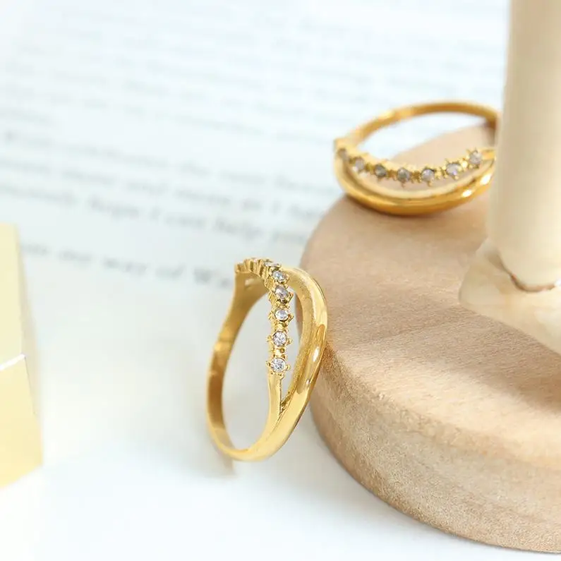 Ring Bulk Buying Geometry Double Deck Wedding Handicraft Events Chunky Gifts Titanium Steel Zircon Statement Rings Christmas