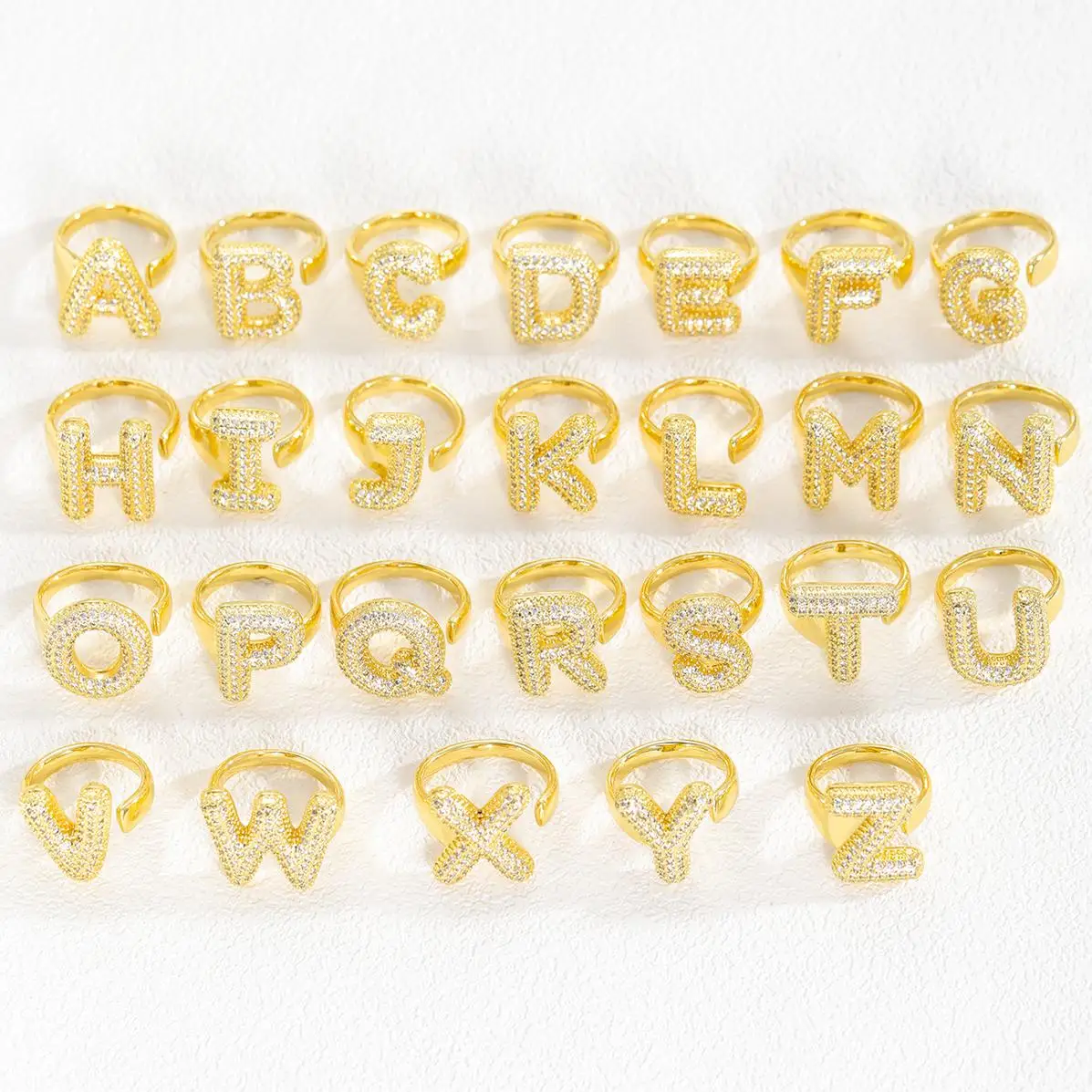 Ring Dainty 26 English Letters Gifts Beach Accessories Exquisite Textured Beach Copper Zircon Stackable Rings Christmas