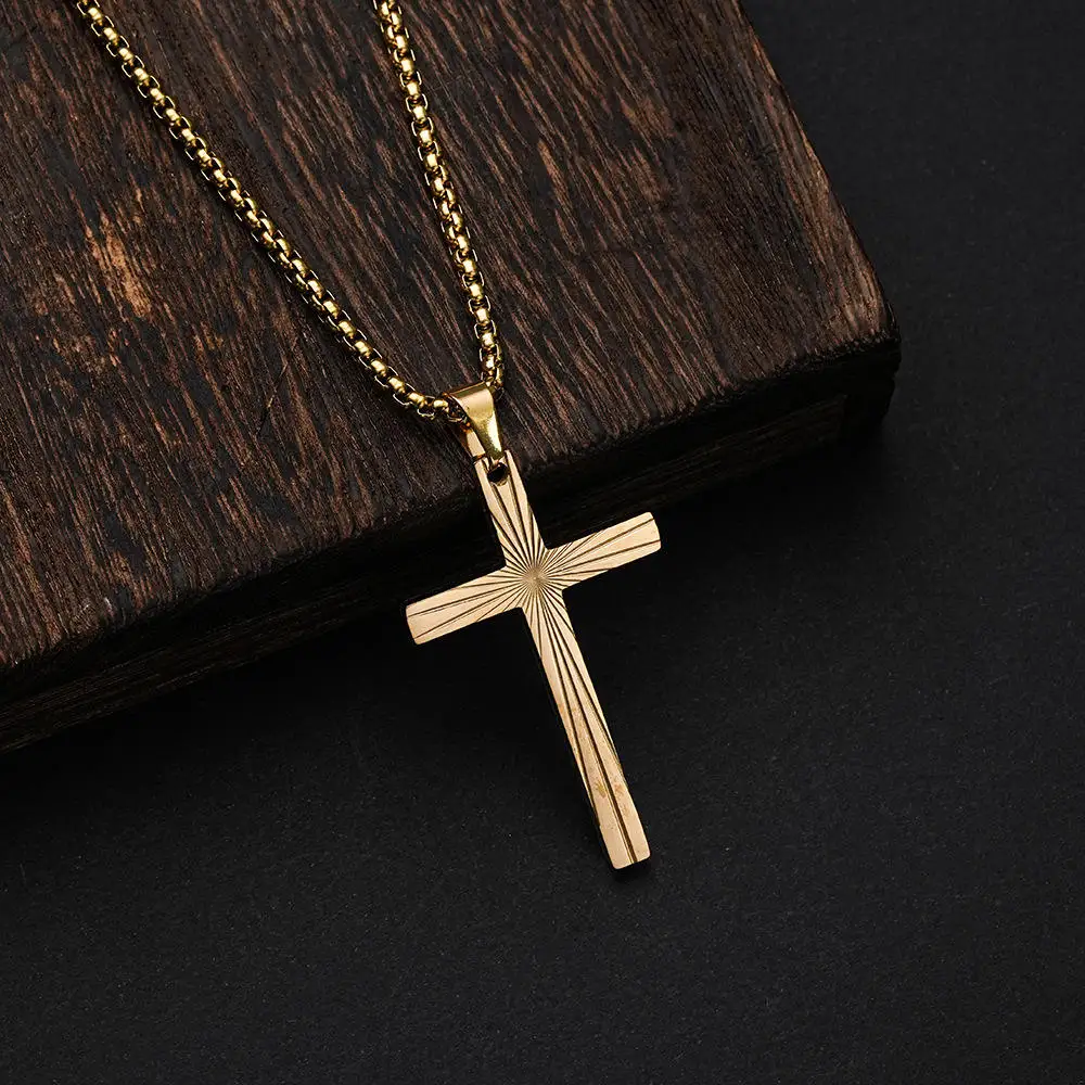 Necklace Popular Luxury Stainless Steel Quality Cable Chain Bracelet Ring Metal Cross Fashion Pendant Necklace for Women Men