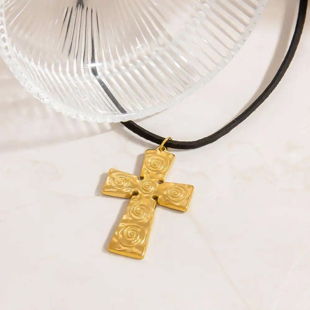 Necklaces Korean Retro Stainless Steel Exquisite Spiral Pattern Cross Street Clavicle Chains Artistic Fashion Pendant Necklaces