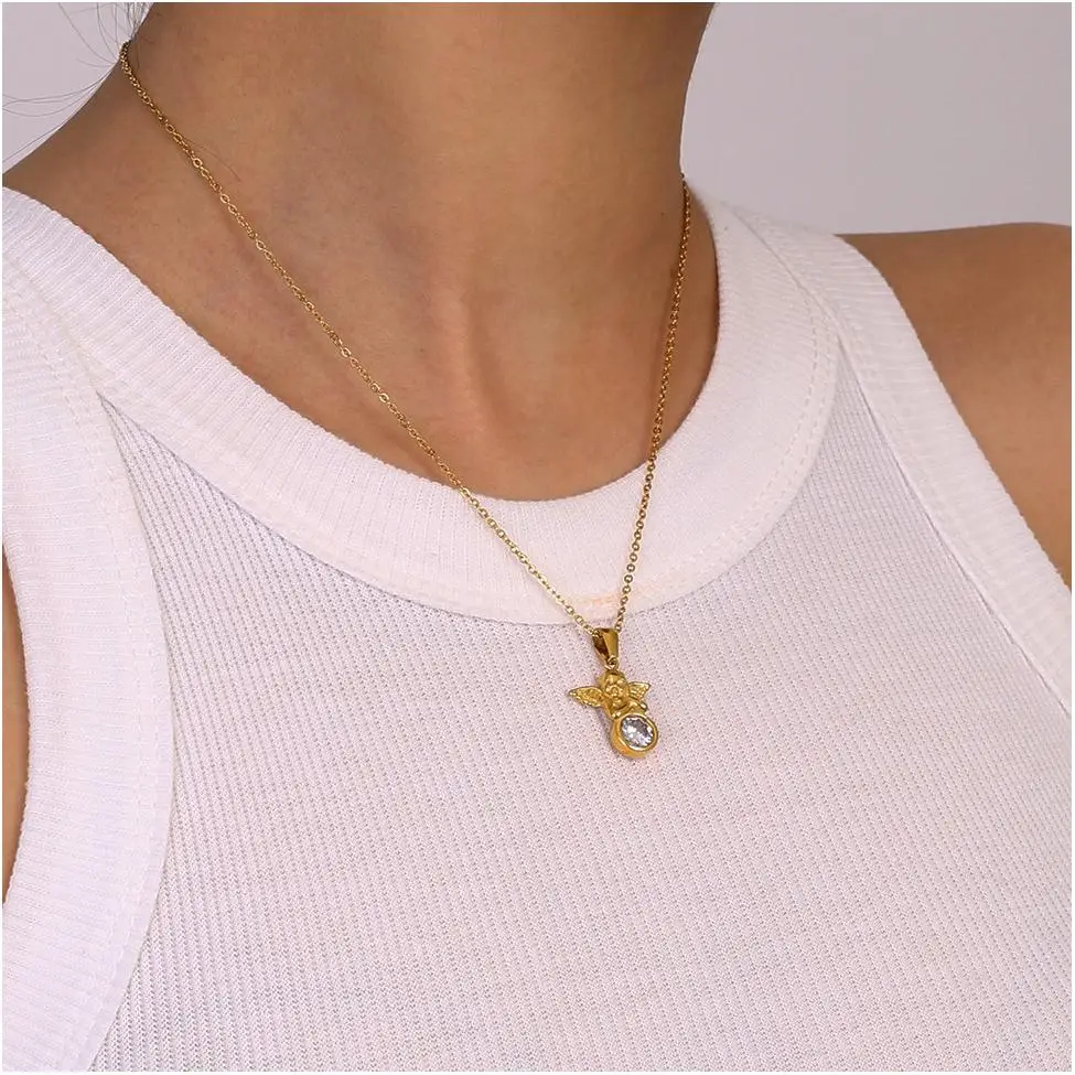 Necklace Exquisite Angel Dainty Promotional Gift Textured Decoration Stainless Steel Zircon Large Pendant Necklace Christmas