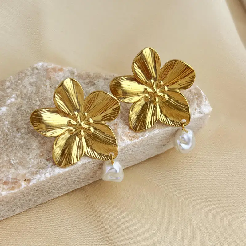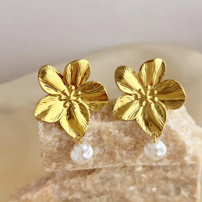Earrings Luxury Pearl Stud Earrings Hyperbole Flower Design with Golden Shell Accent Sweet Diy Style Fashion Jewelry Earrings