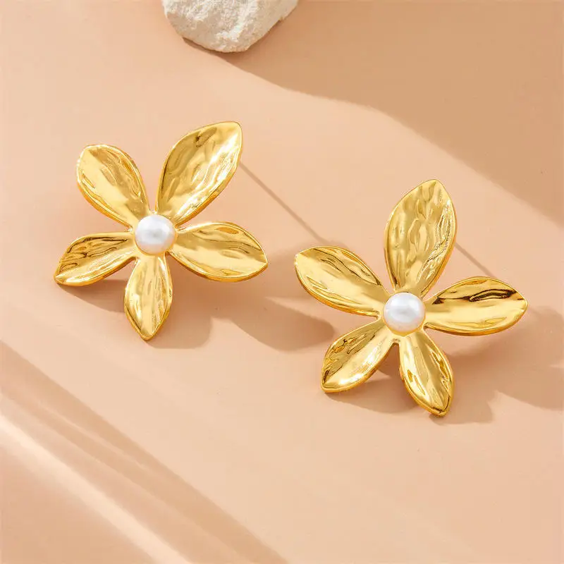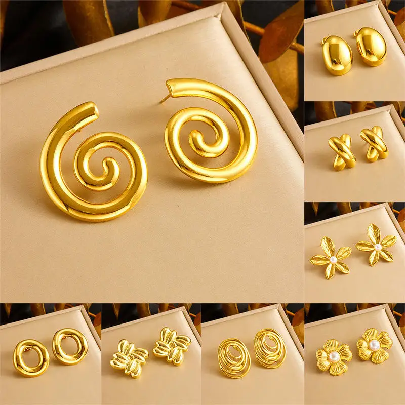 Earrings Unique Stainless Steel Earrings Simple Thread Rotation Foliage Flower Glossy Hyperbole Studs Fashion Jewelry Earrings