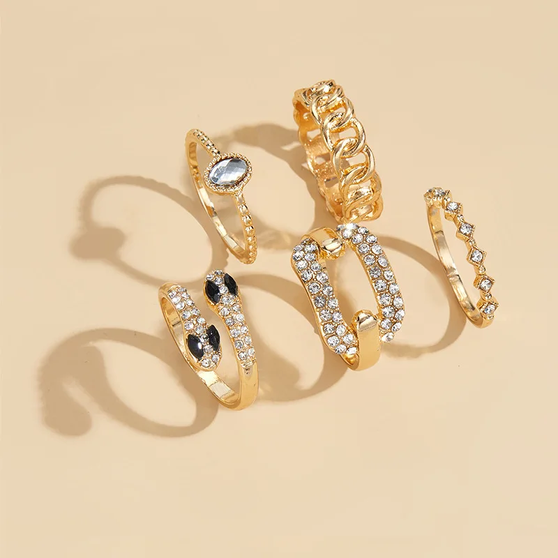 Personalized Geometric Alloy Ring Set, Women's Golden Square Zircon Snake Ring, Girls' Punk Party Jewelry