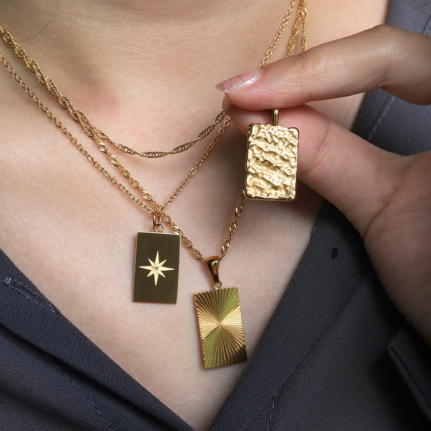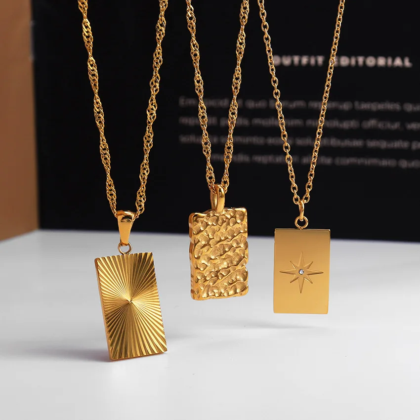 Minimalist Gold Plated Stainless Steel Waterproof Jewelry Geometric Square Pendant Necklace
