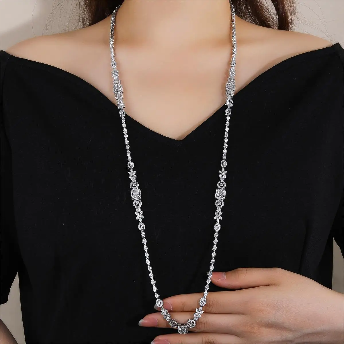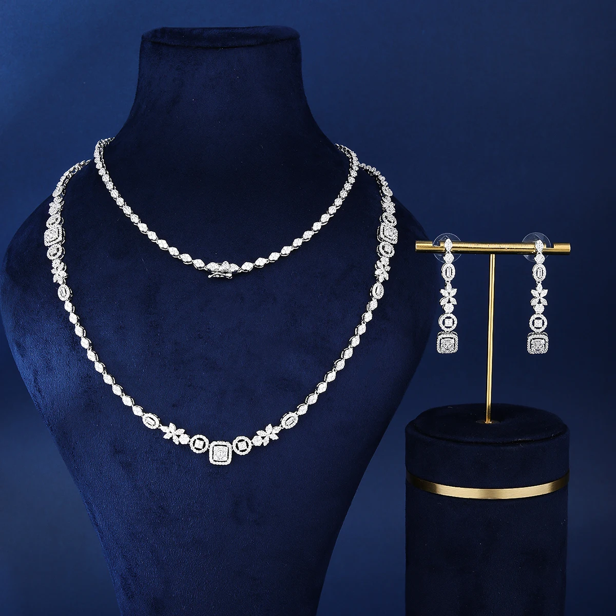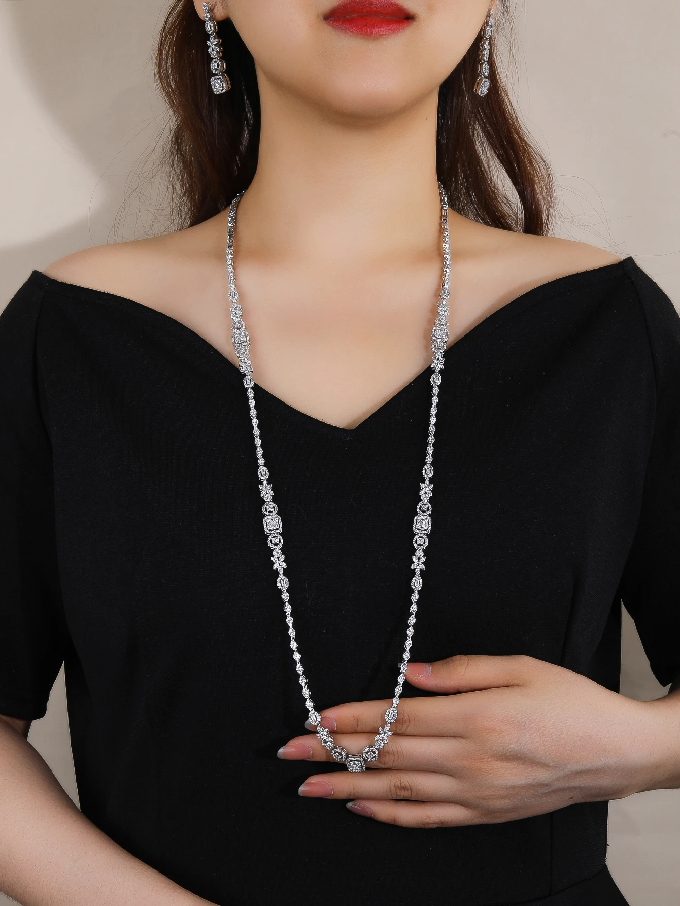 2-Piece Copper Zircon Long Chain Earring Set Fashionable Daily Wear for Ladies Classic Style for Wedding Party & Engagement