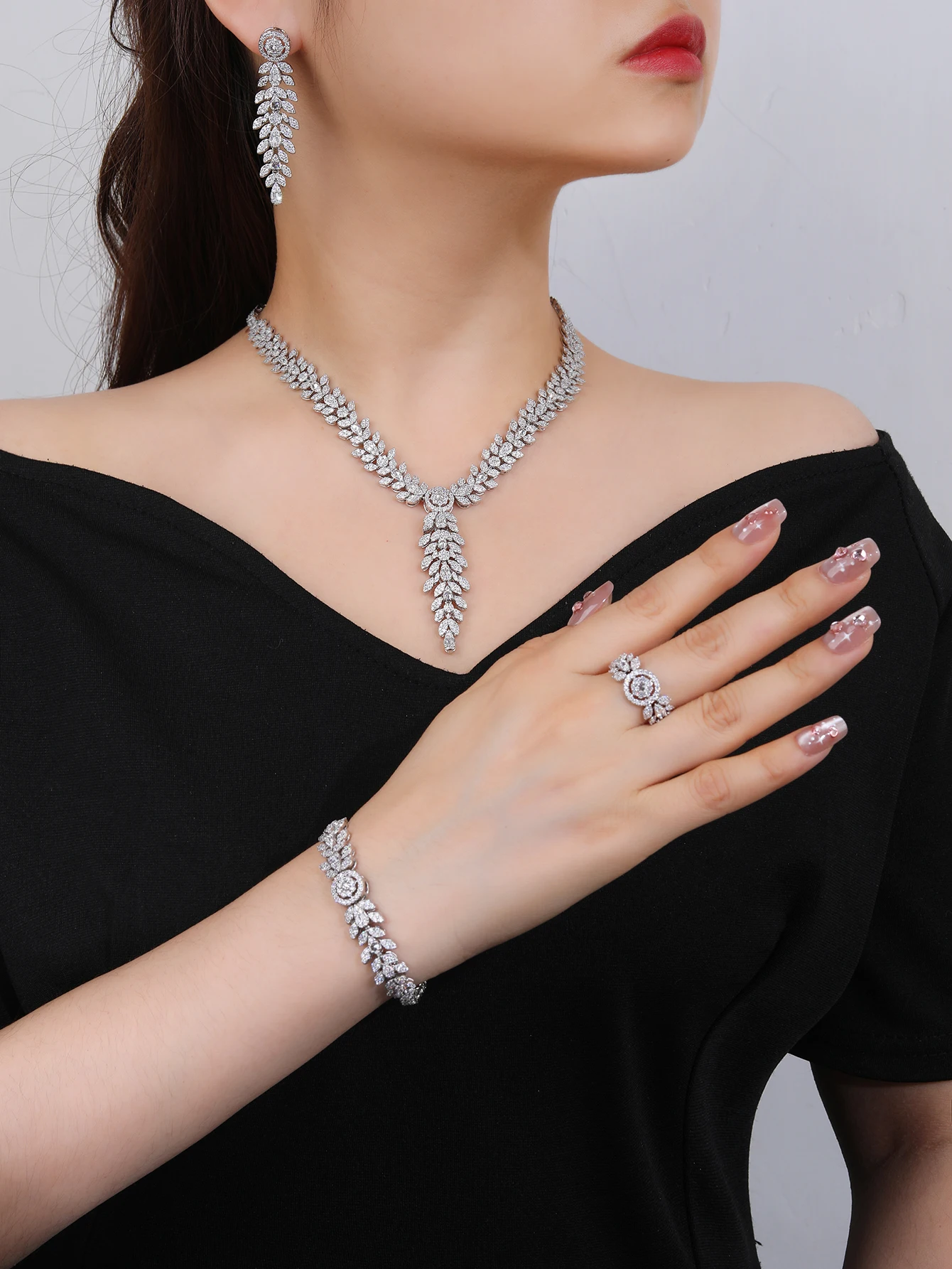 Bridetalk's Newly Designed Copper Zircon Necklace Set Fashion Jewelry for Women to Wear on Festivals and Weddings