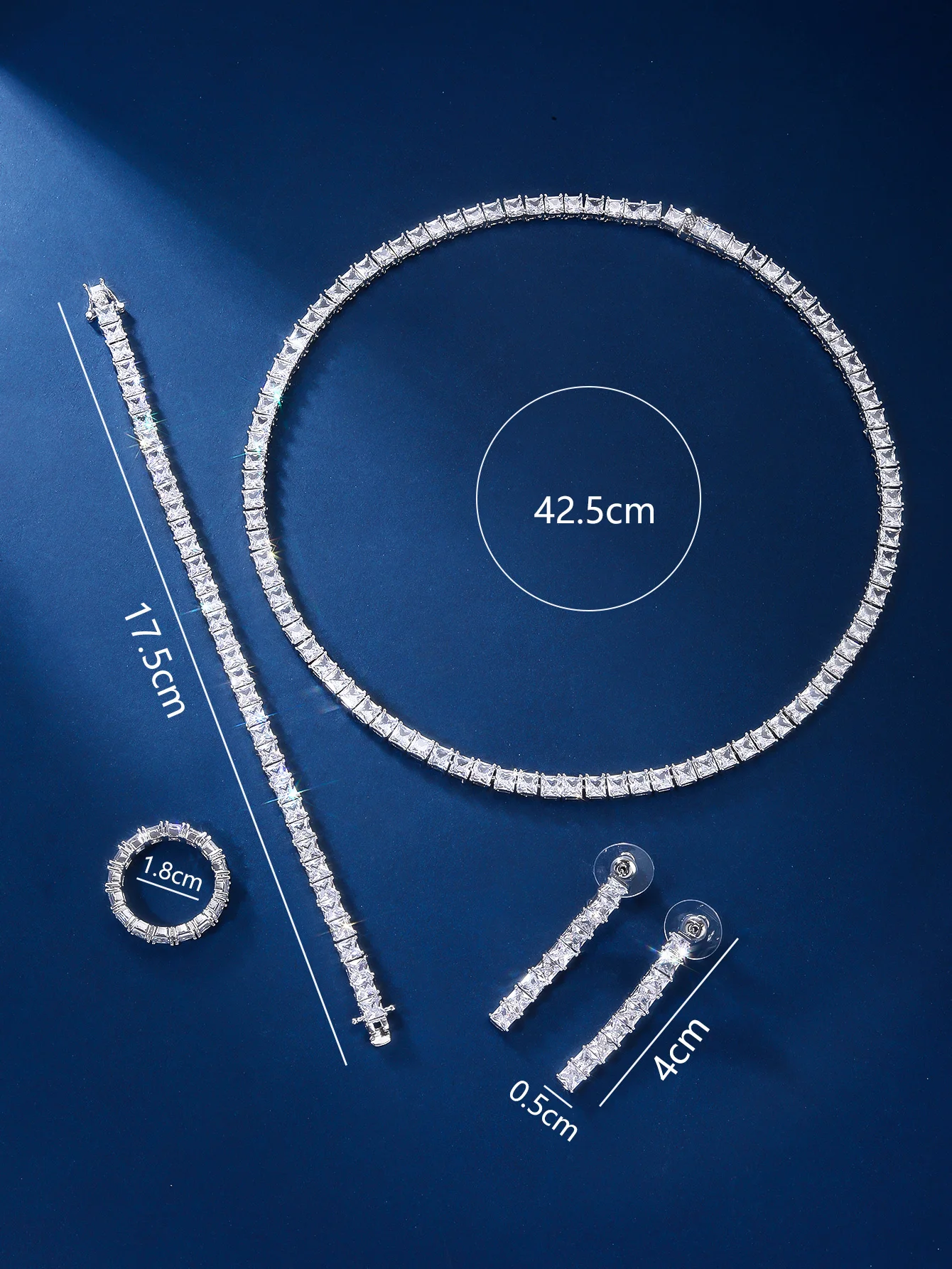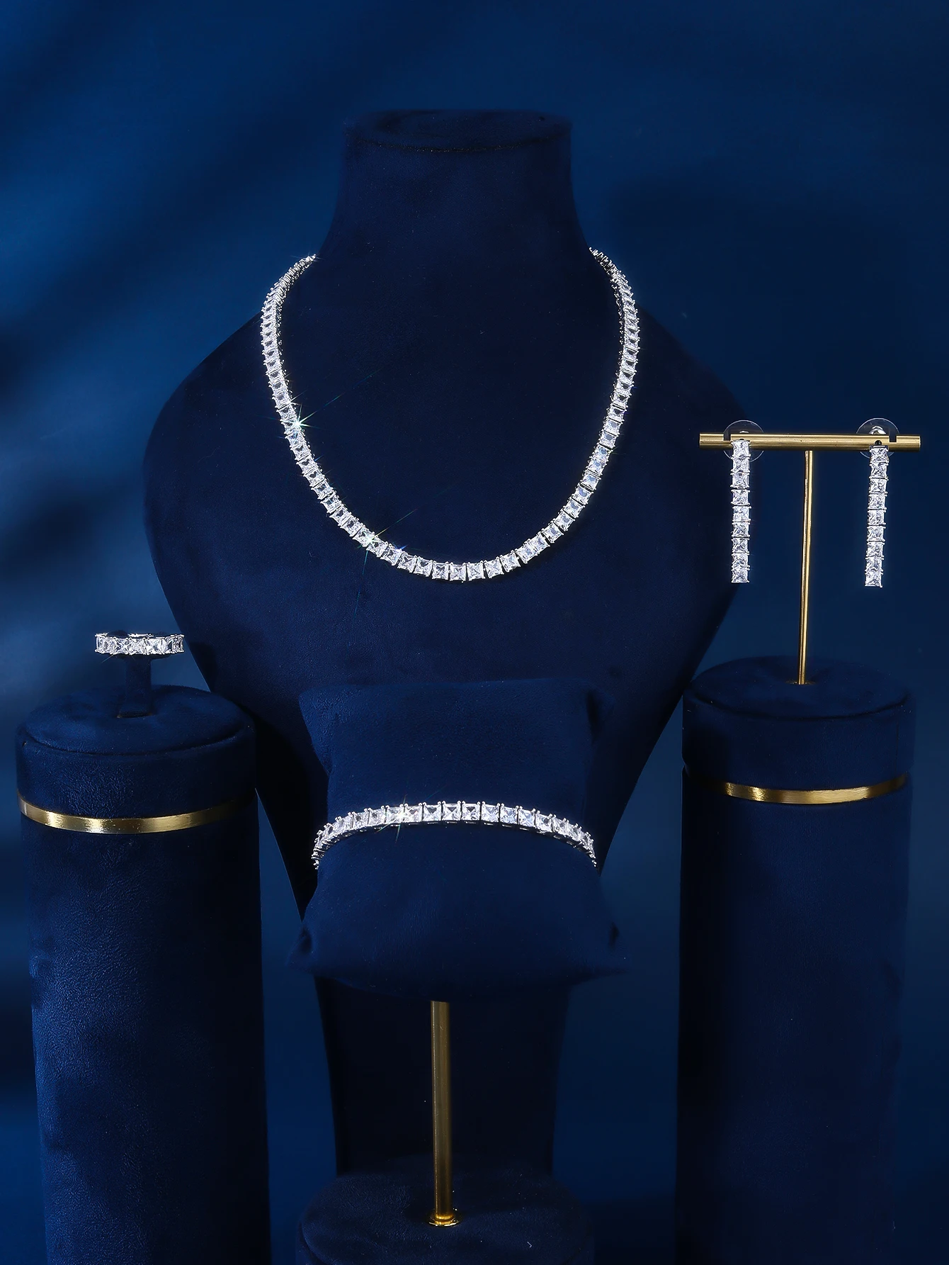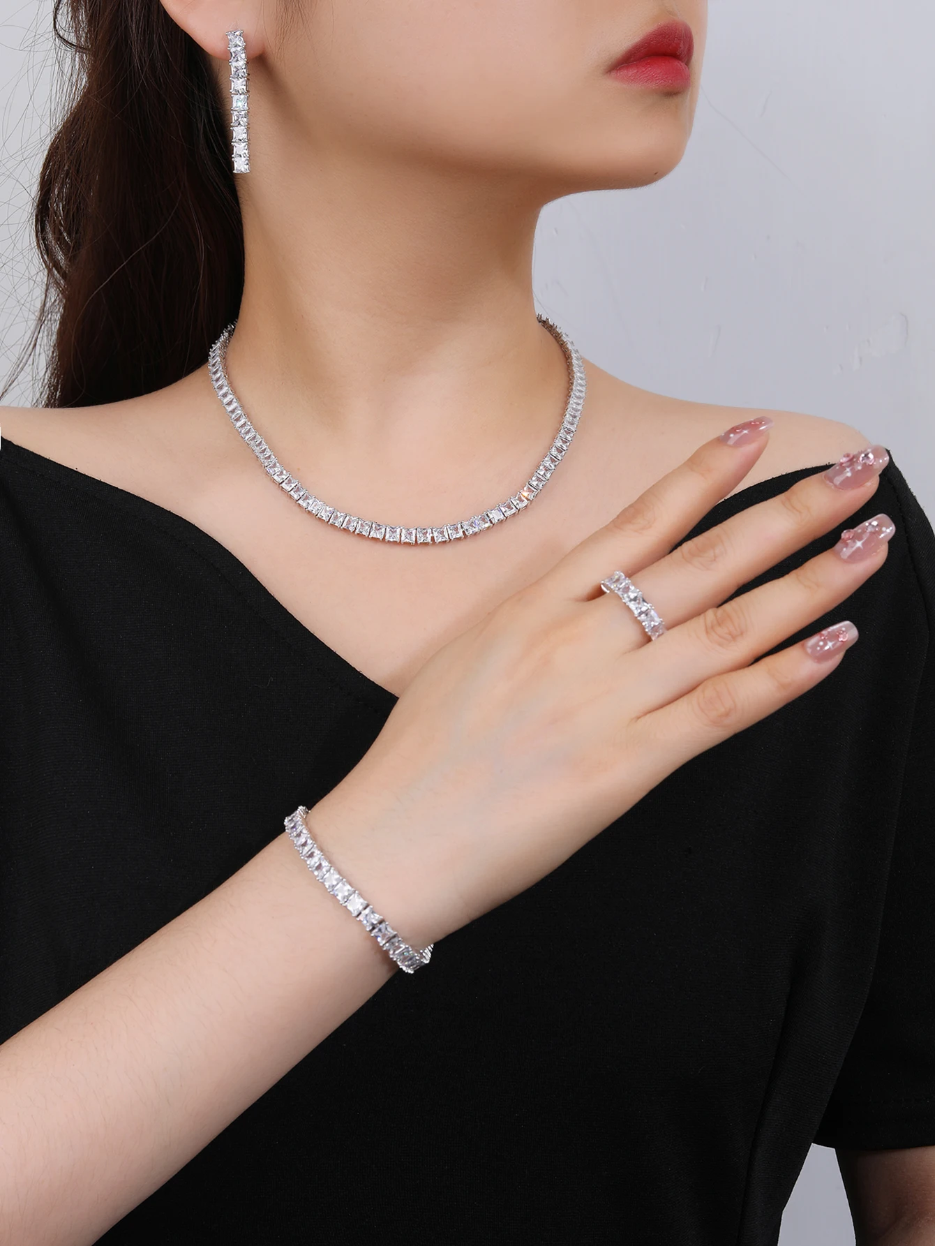 Women's Daily Wear Newly Designed Square Zircon Necklace and Chain Copper Jewelry Set for Weddings
