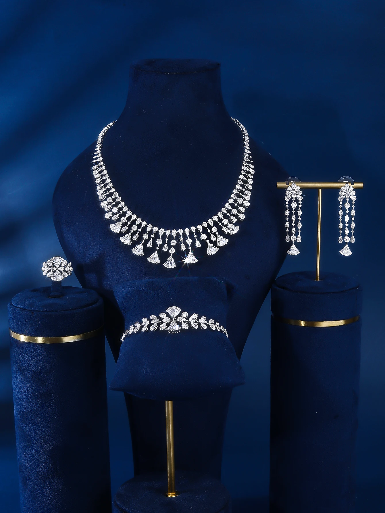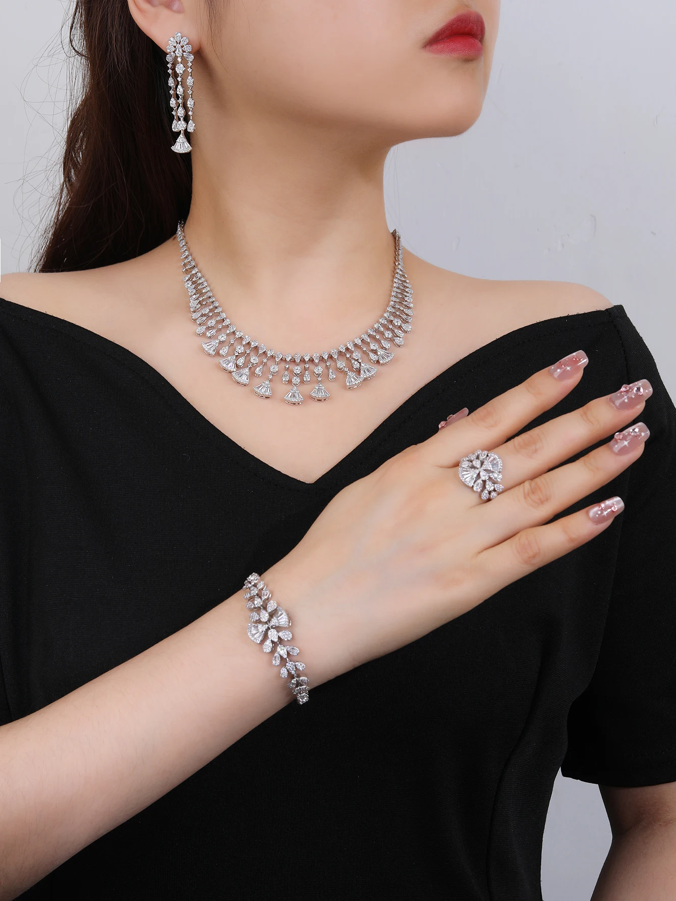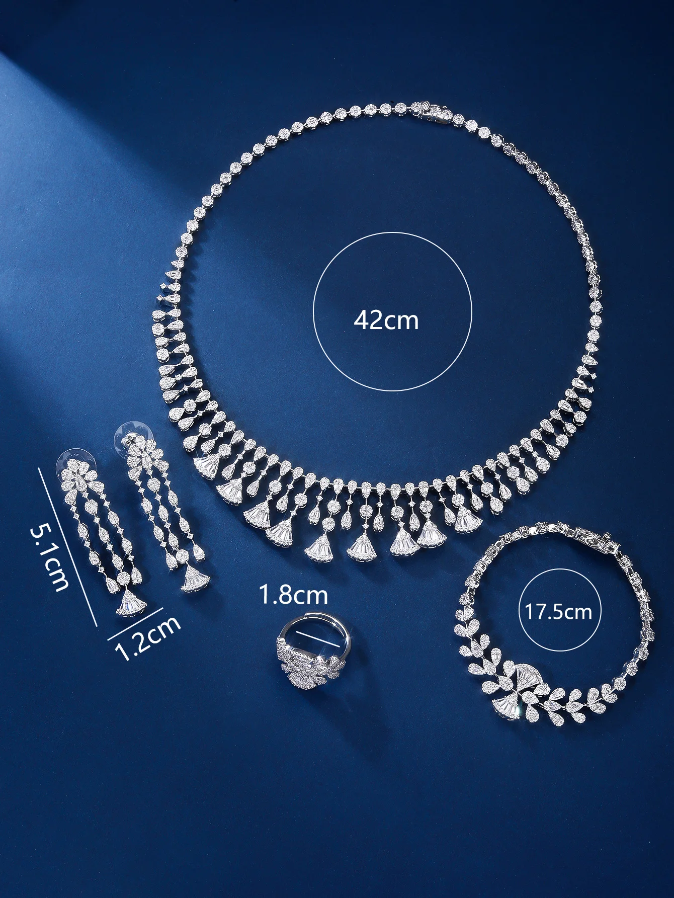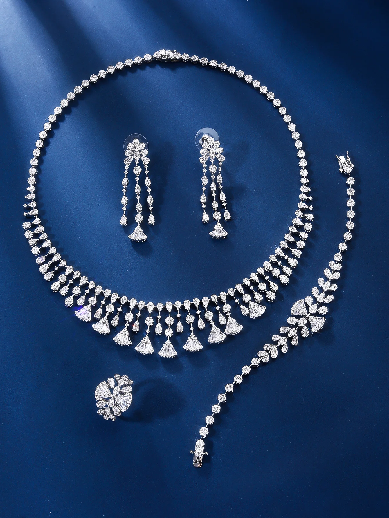 Women's Classic 4-Piece Zircon Jewelry Set Rhodium Plated for Daily Wear Parties Engagements Anniversaries Festivals Weddings