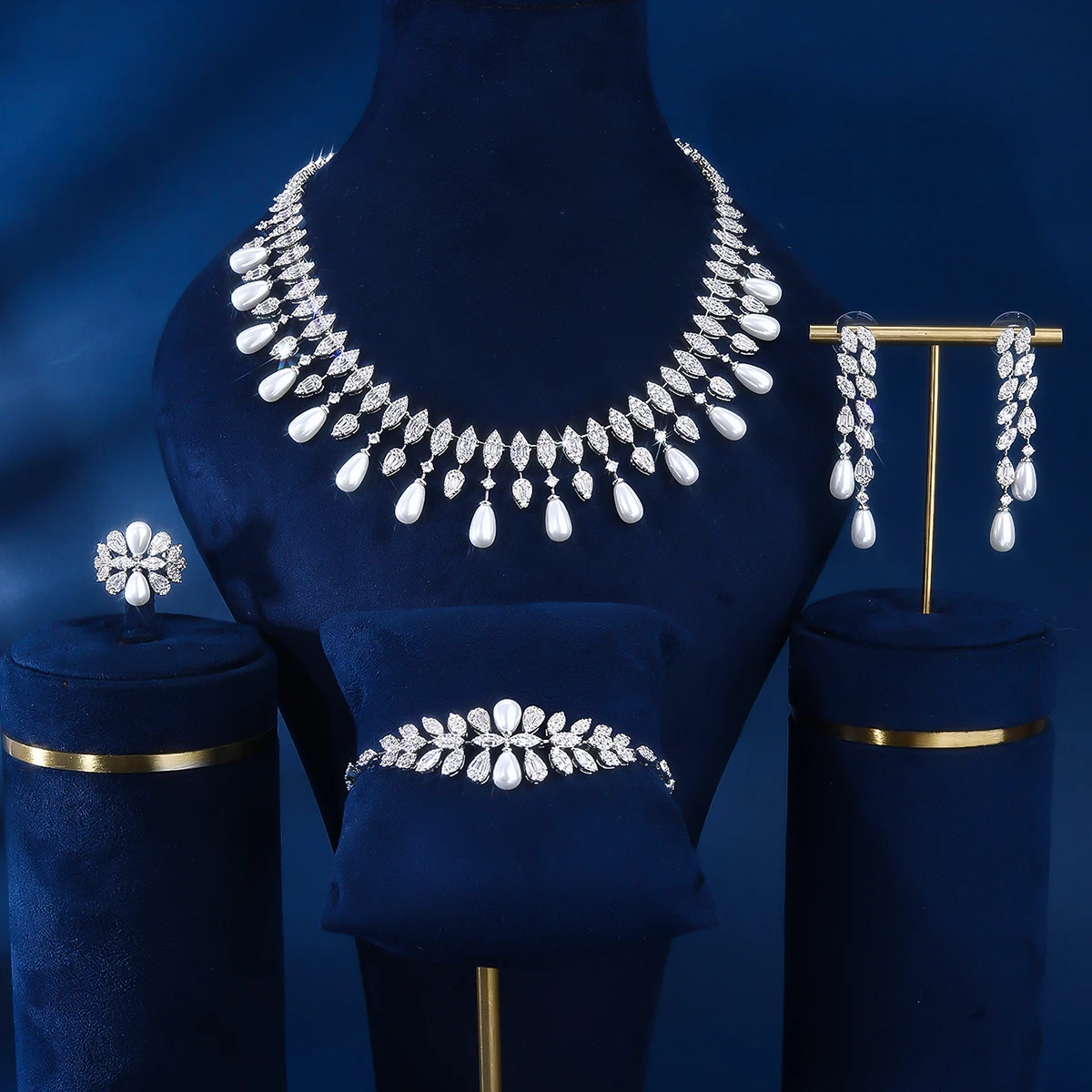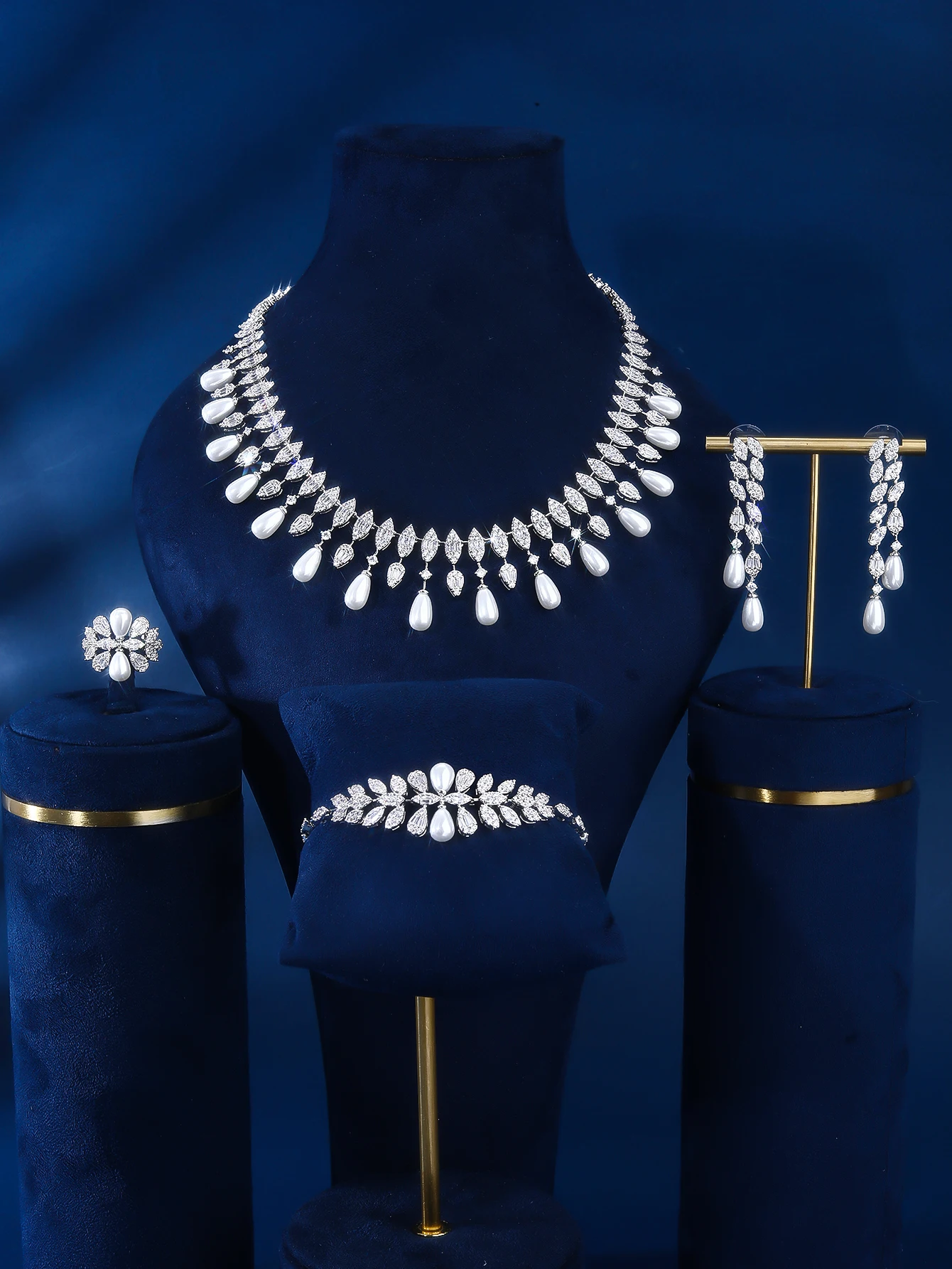 2026 New Design Fashion 4-Piece Zircon Jewelry Set Rhodium Plated Brass for Women's Daily Wear Wedding Party & Engagement