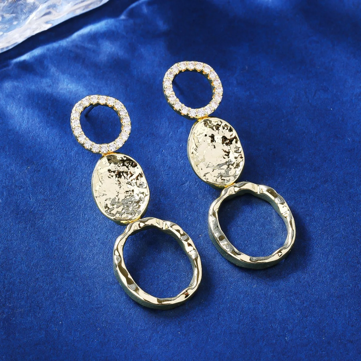 Fashionable Gold-Plated Simple Pendant Drop Earrings for Women Daily Wearing Butterfly Shape with Diamond and Brass Material