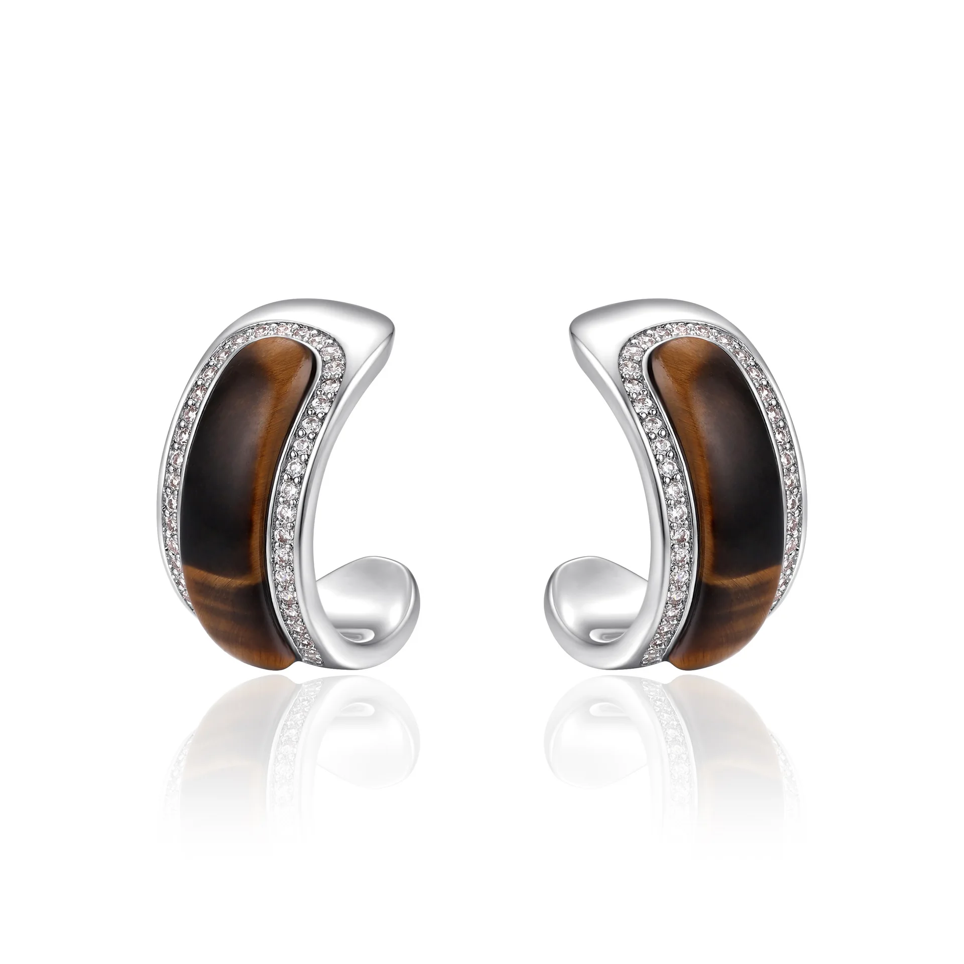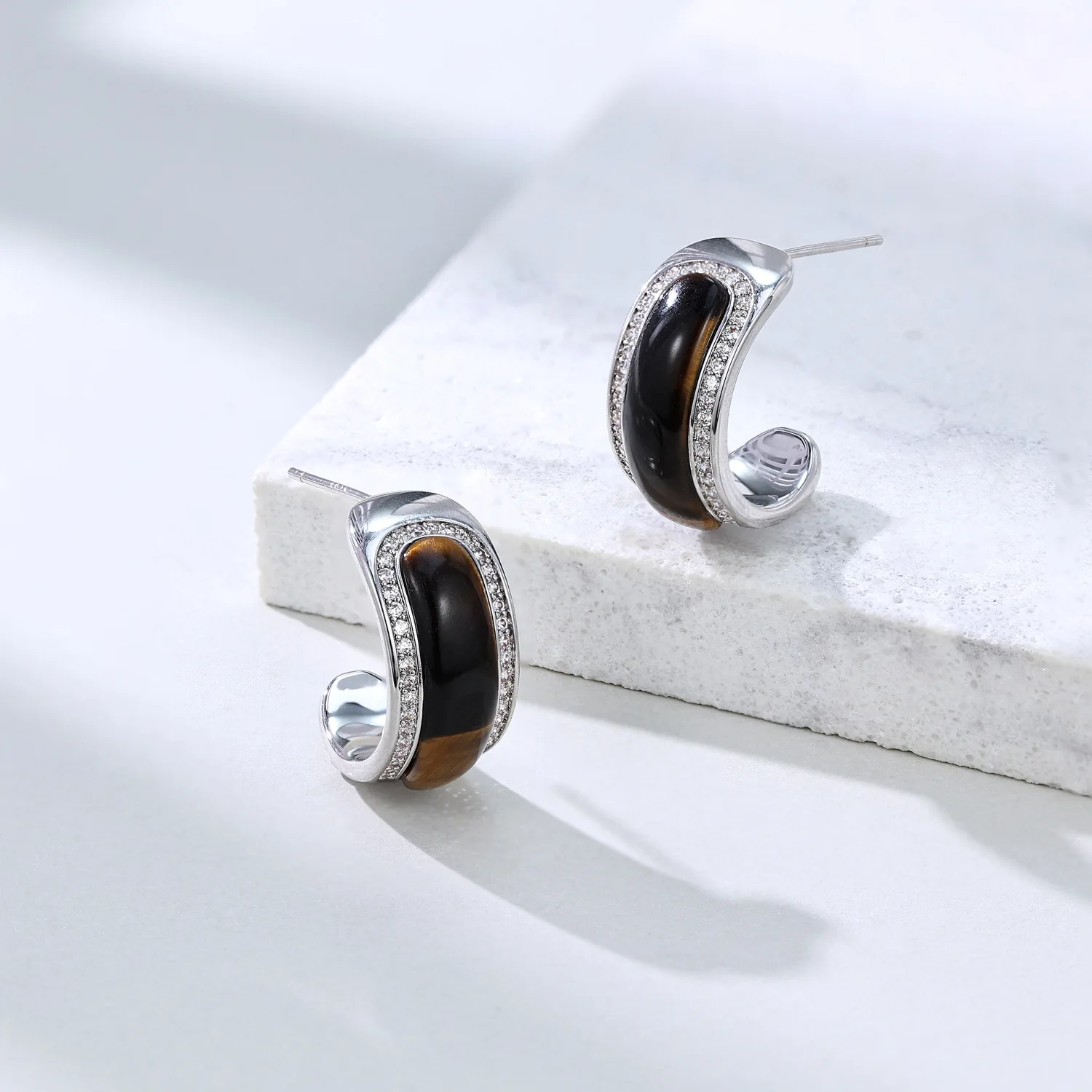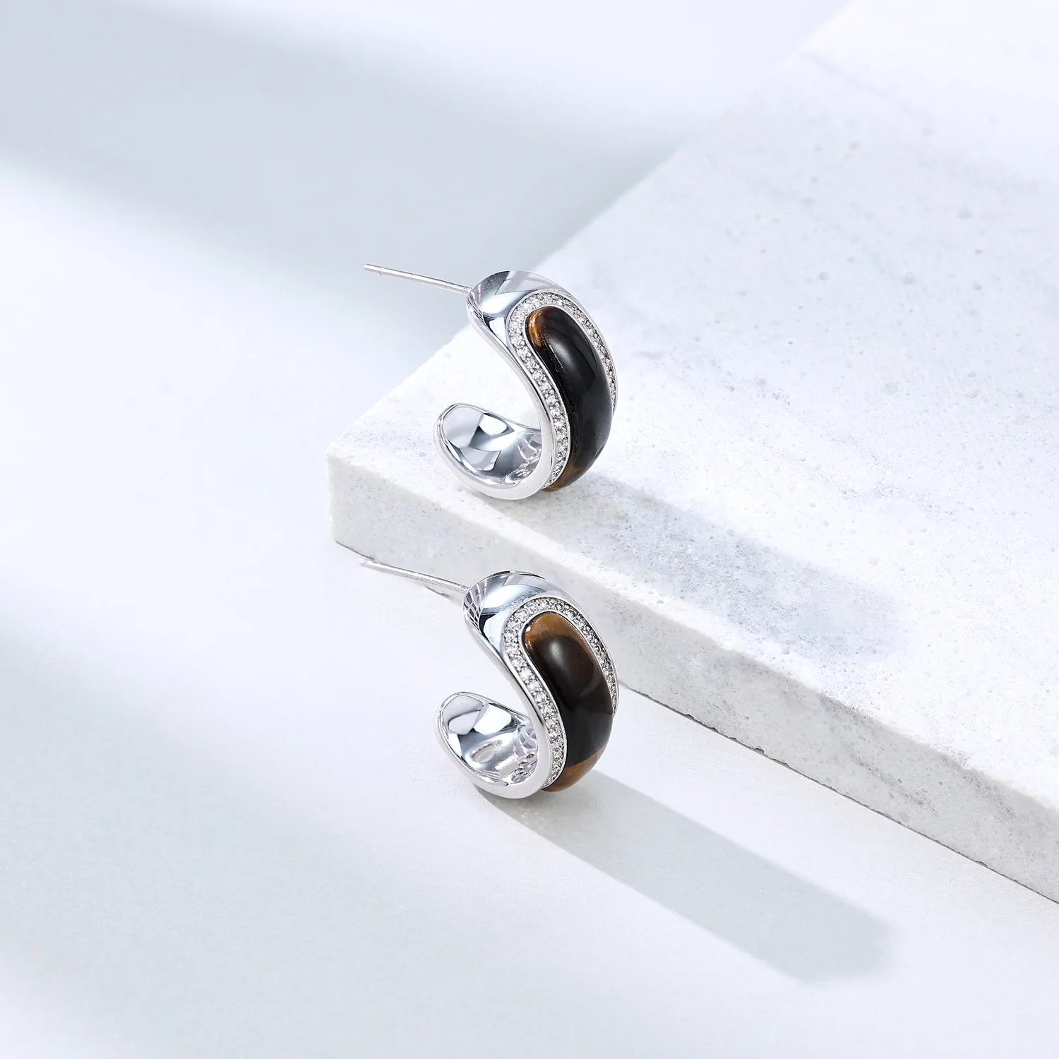 Autumn Winter High-End C-Type Tiger Eye Micro-Infused Brass Jewelry Simple Temperament Diamond Original Fashion Hoop Earrings
