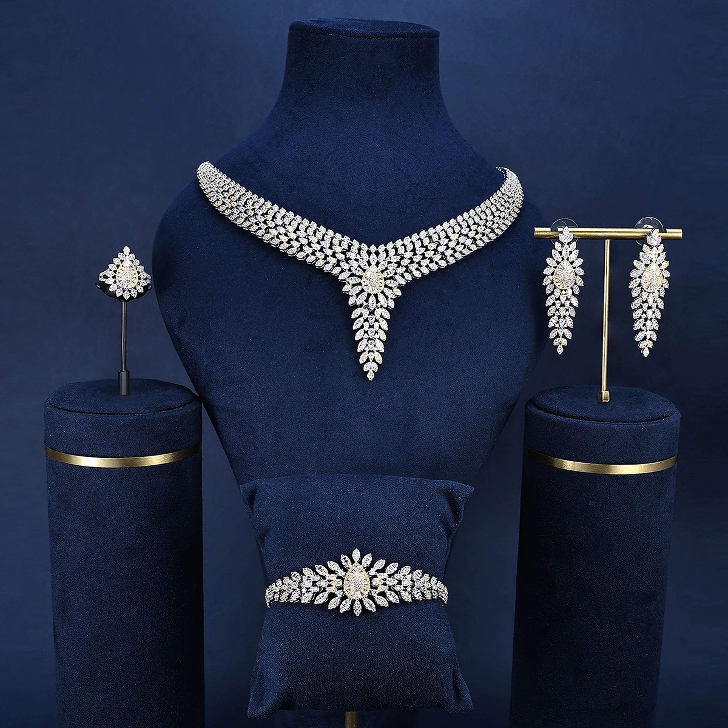 BRIDETALK Women's Classic Gold Plated Brass Necklace Jewelry Set for Weddings Banquets Parties Engagements Anniversaries