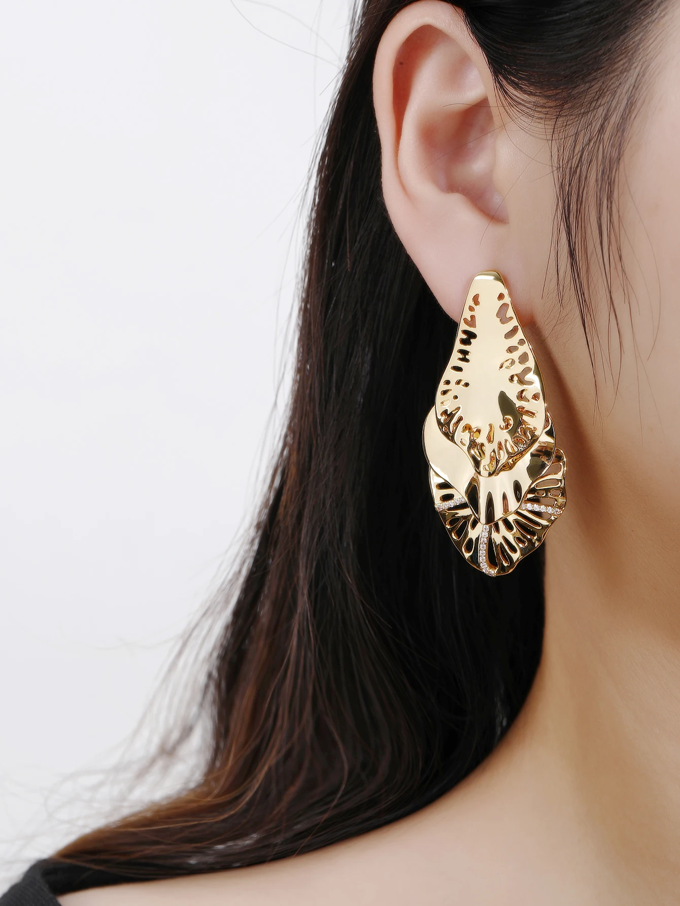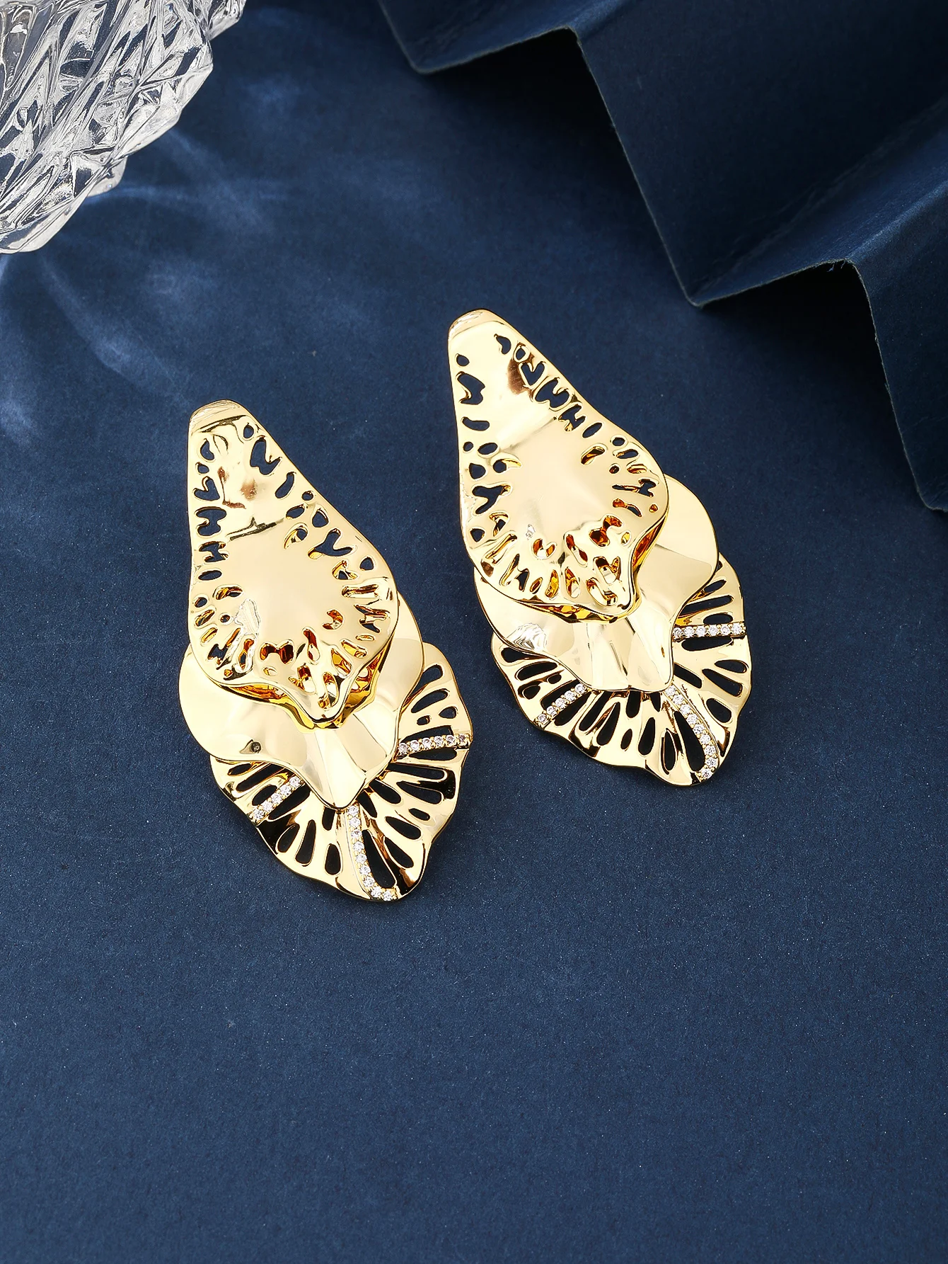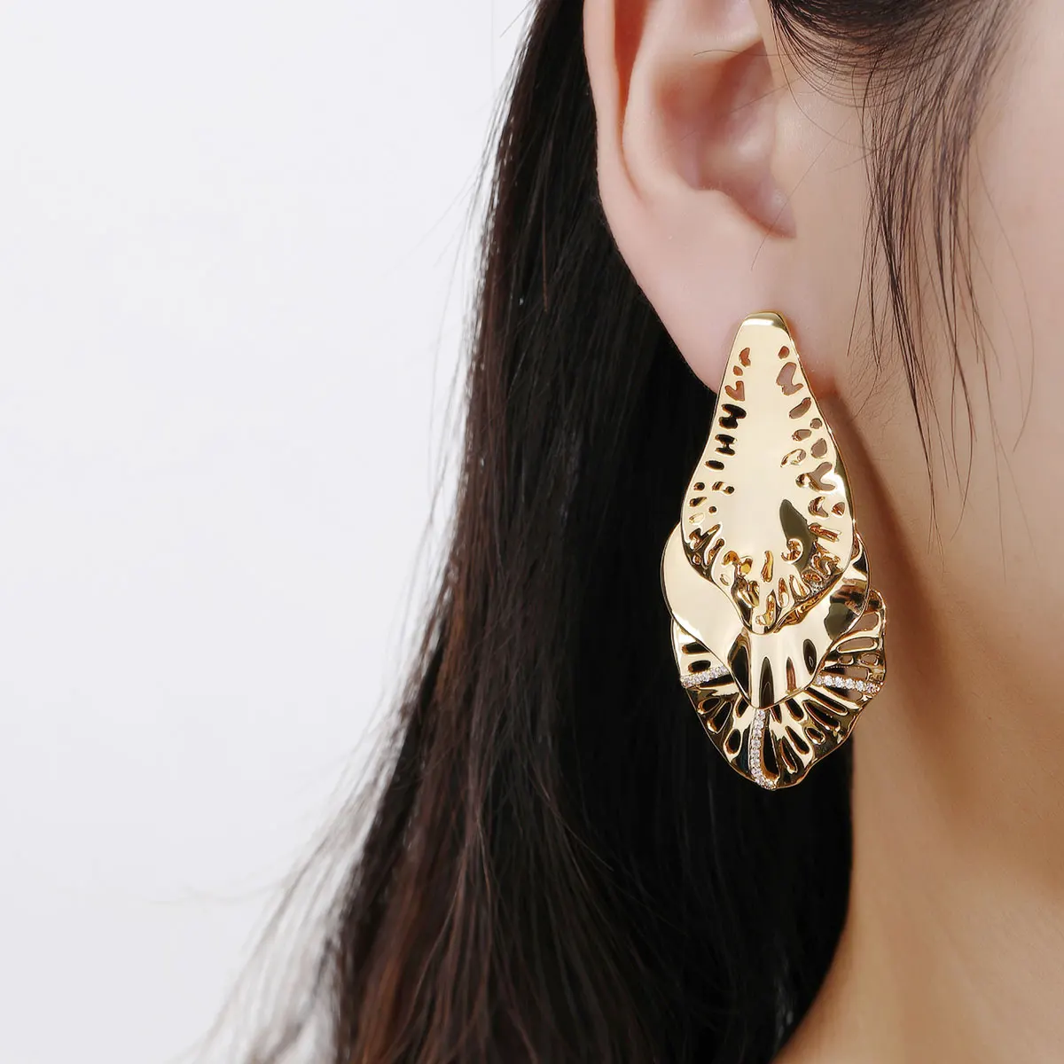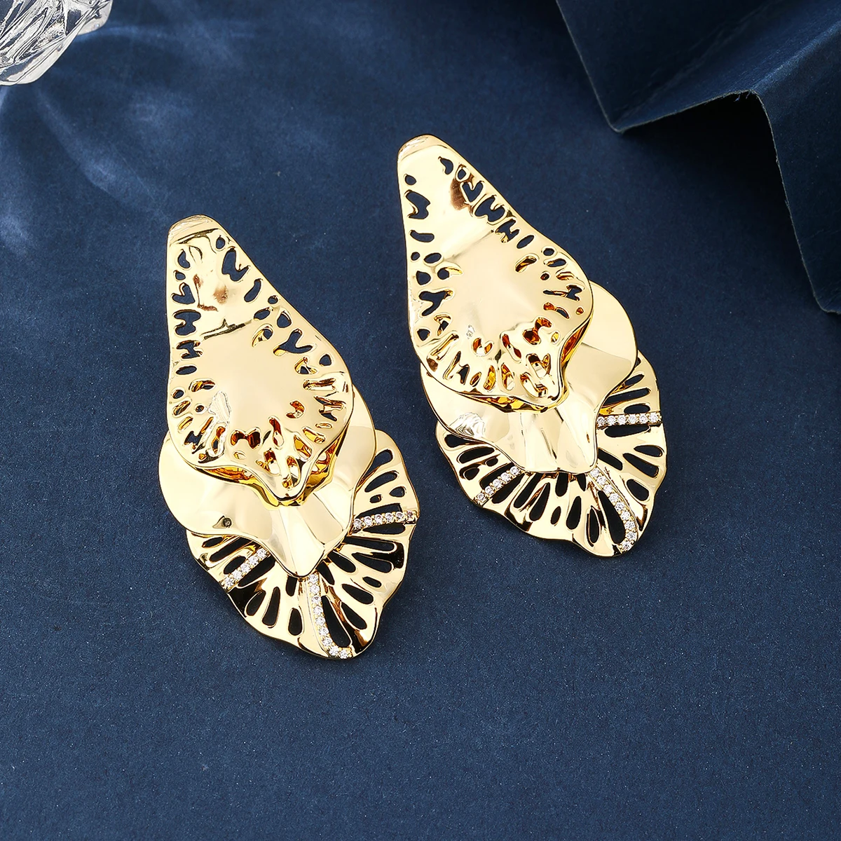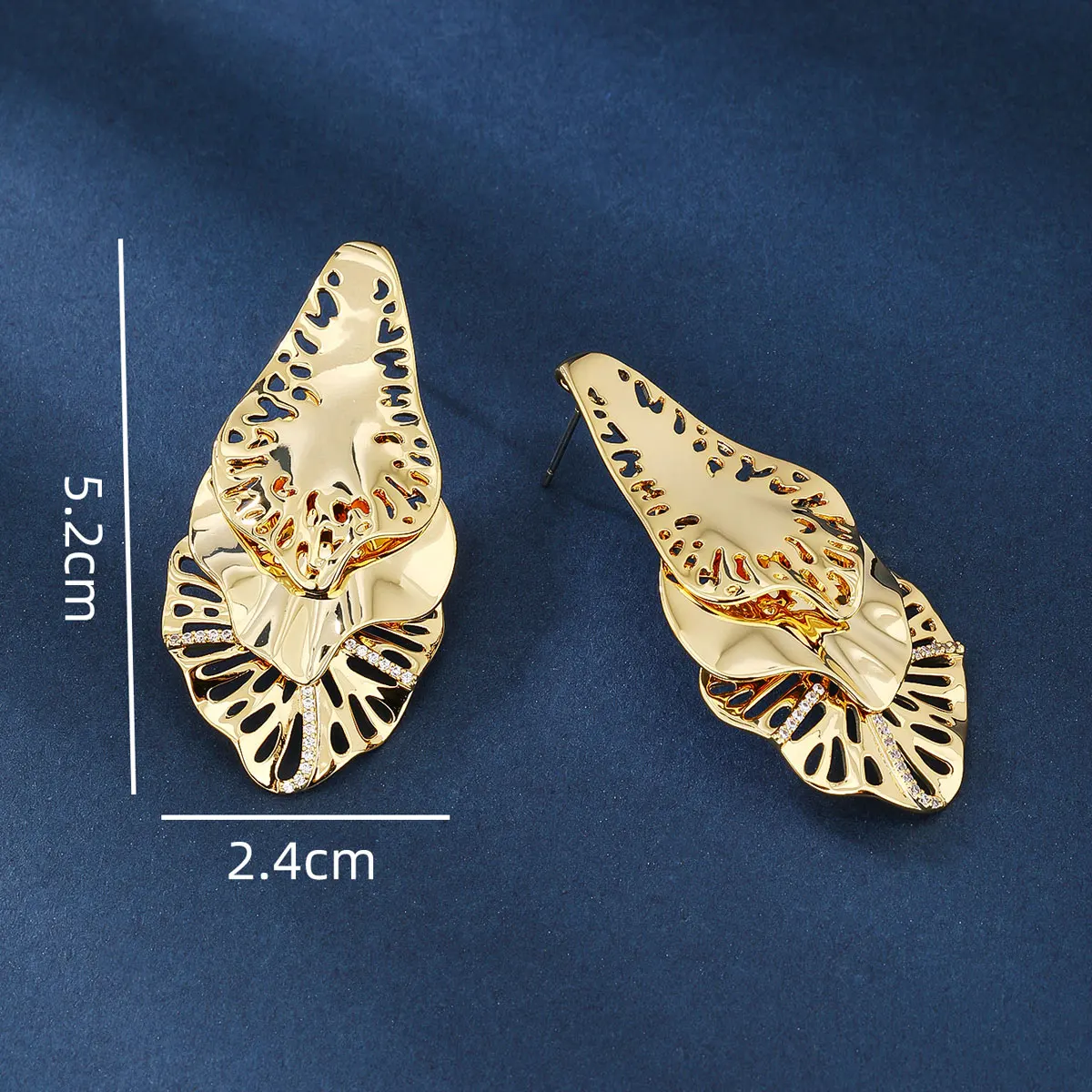 Wholesale Fashionable Gold-Plated Brass and Zircon Drop Earrings for Women Yellow Gold Material for Gift