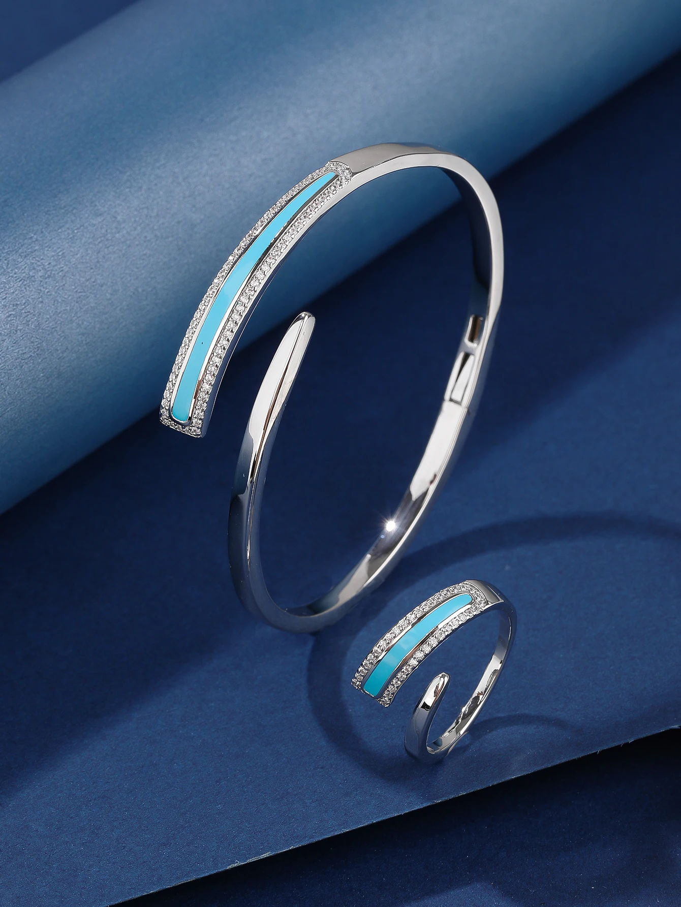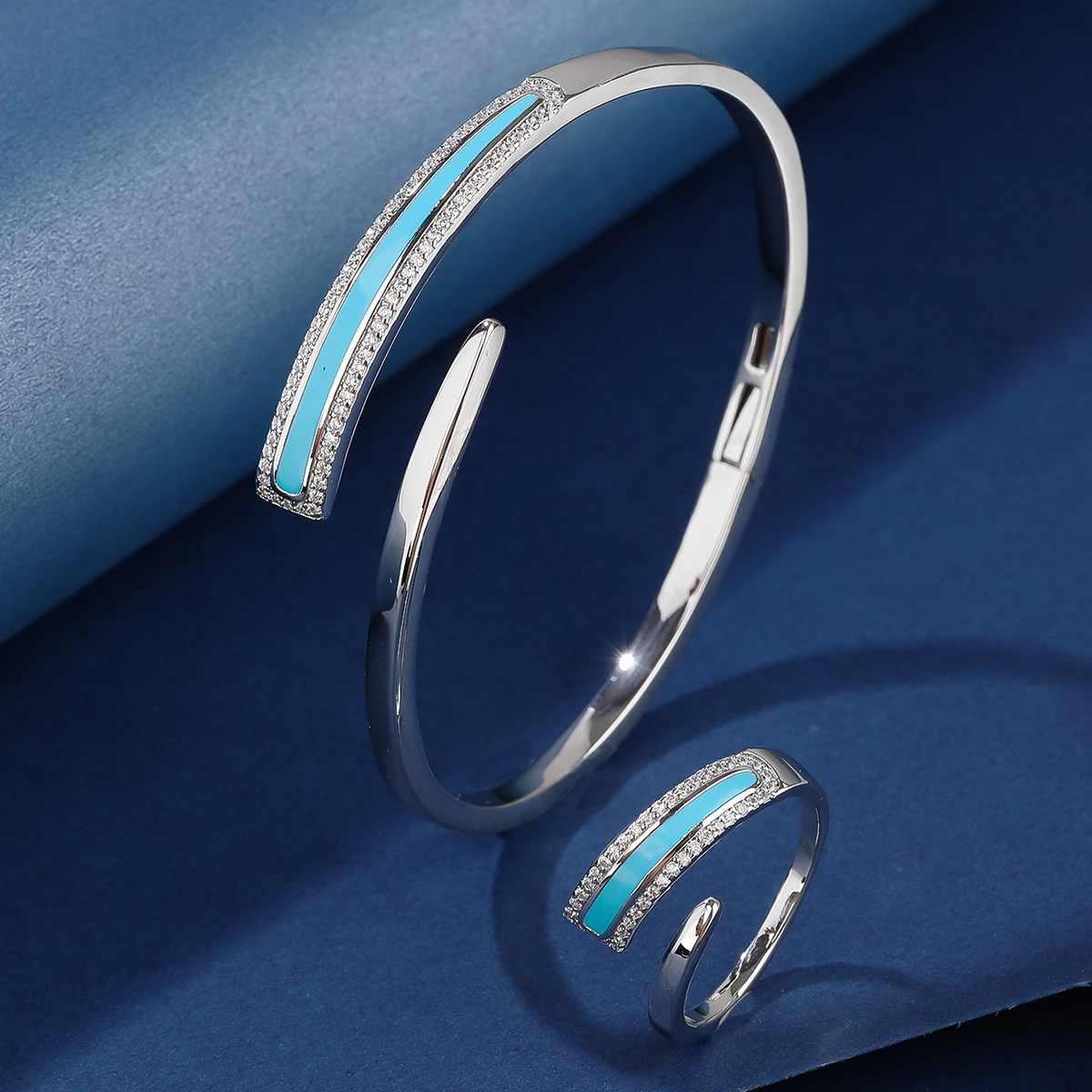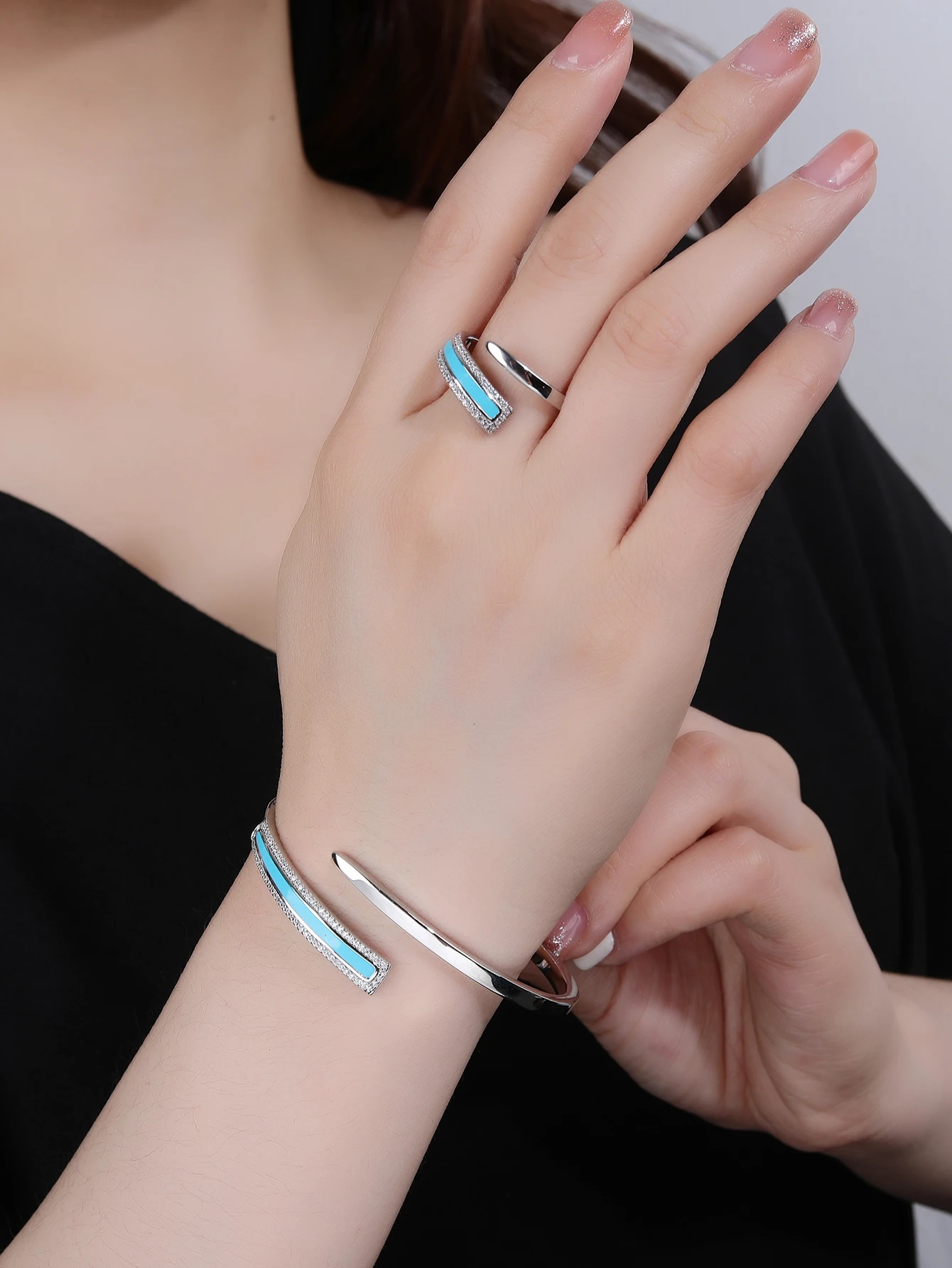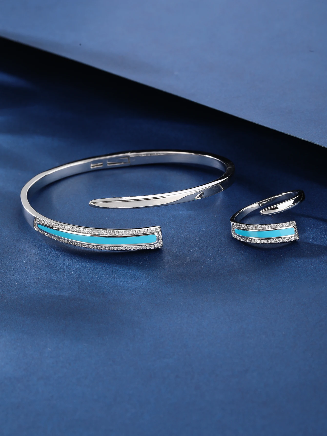 Fine Jewelry Set Brass Copper Alloy Zircon Ring Classic Bracelet-Rhodium Plated Tarnish Resistant Engagement Wedding Party Gift