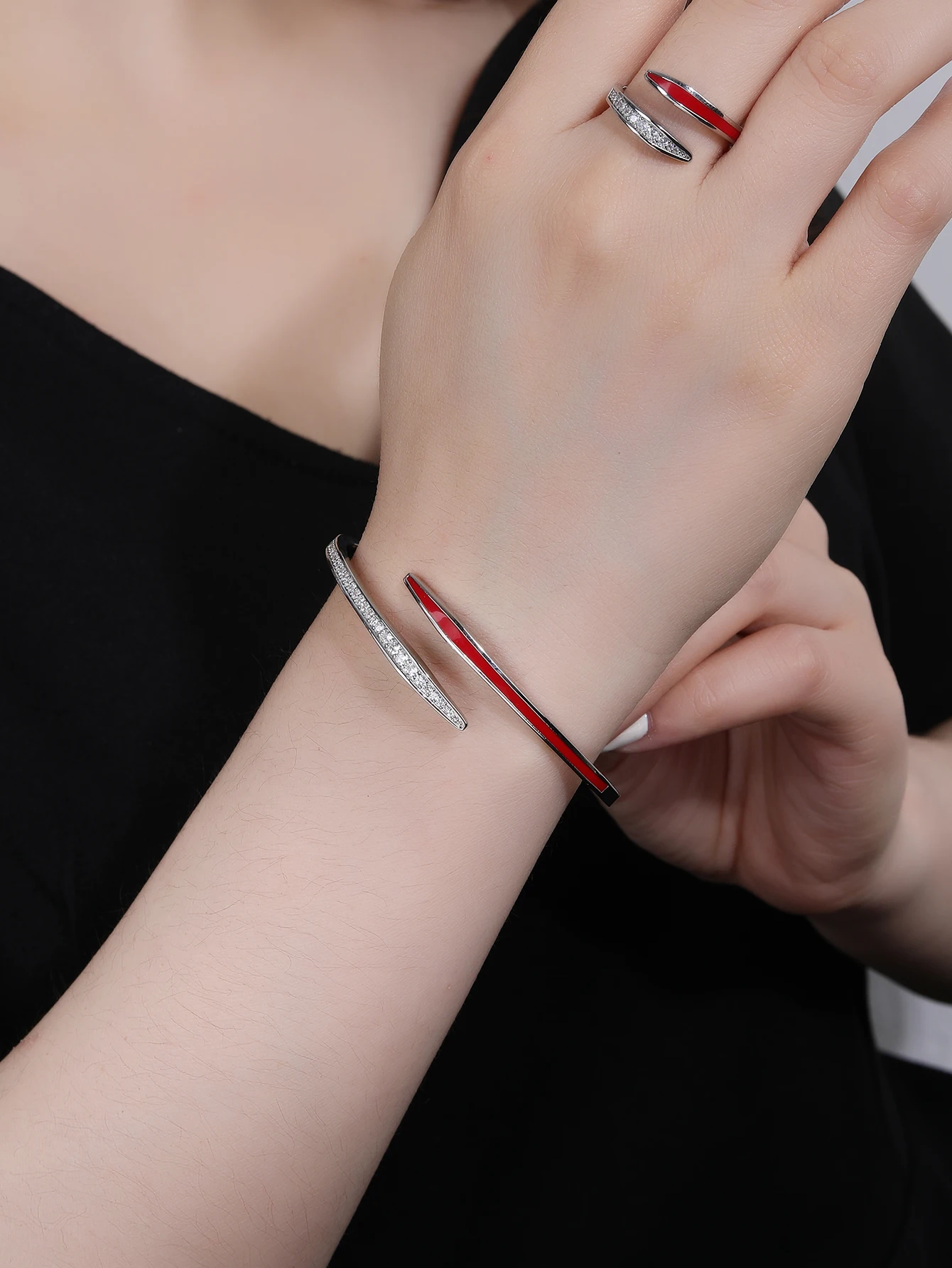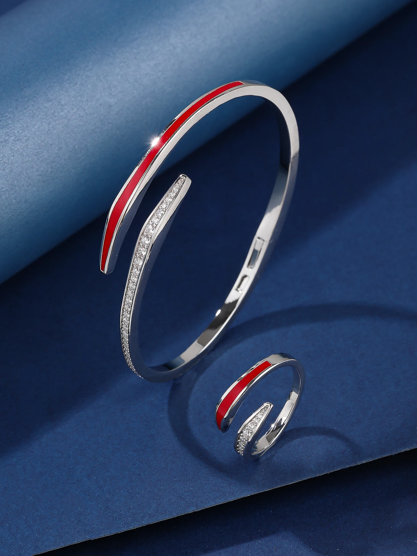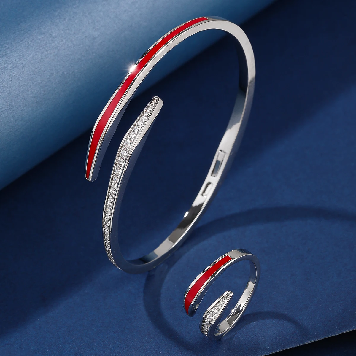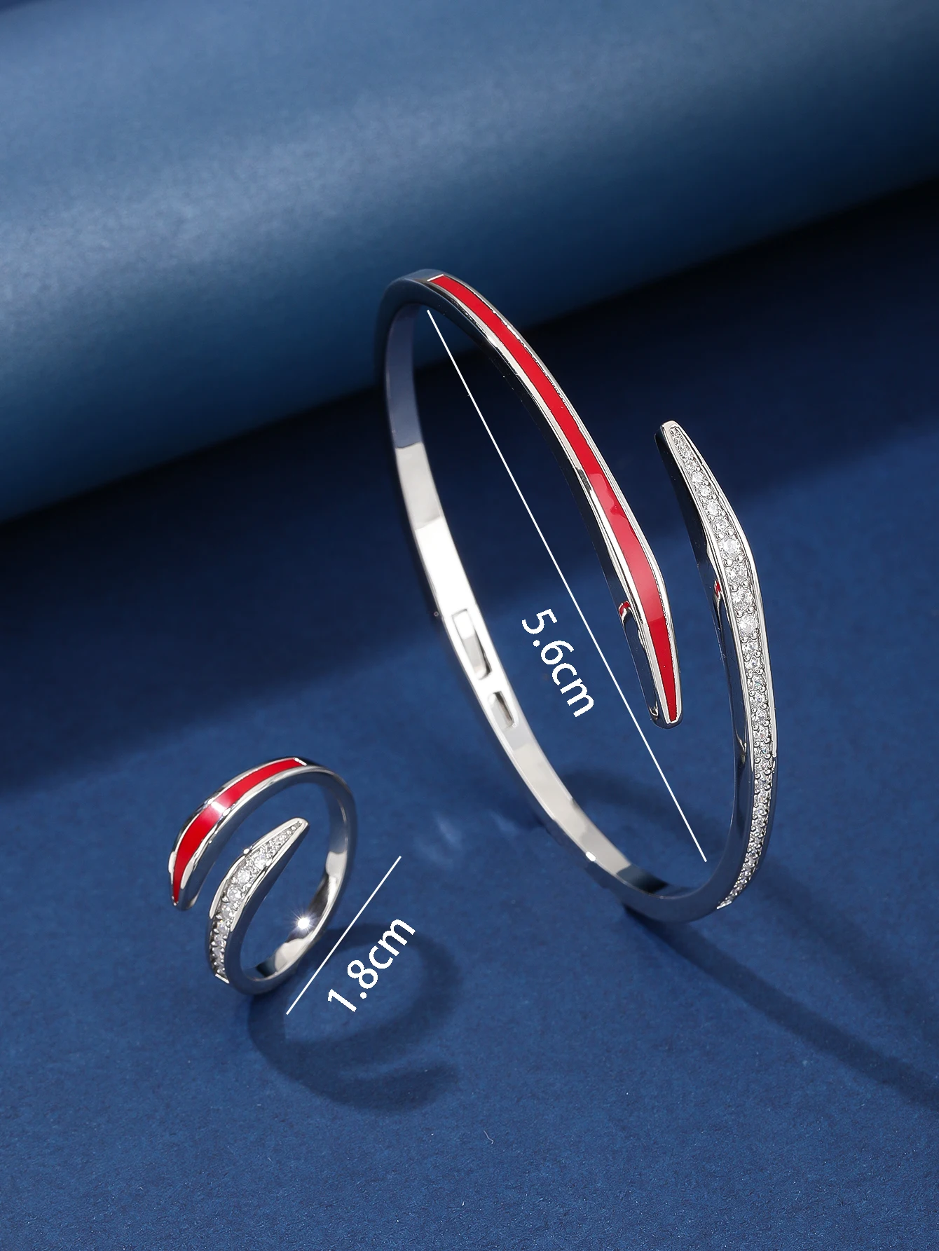 Vintage Inspired Necklace & Bracelet & Ring Jewelry Set, Brass Rhodium Plated, Retro Bridal Talk Collection for Women