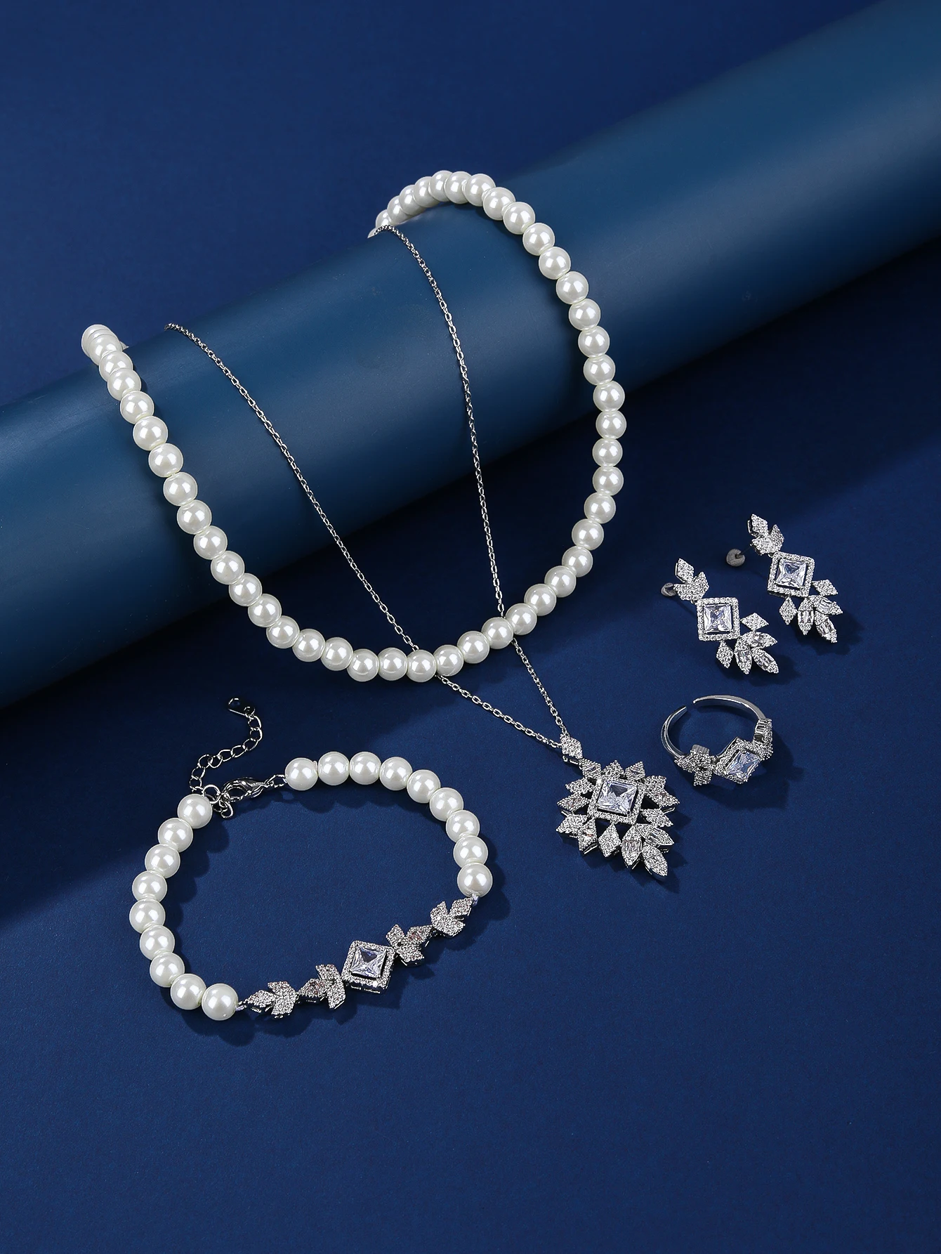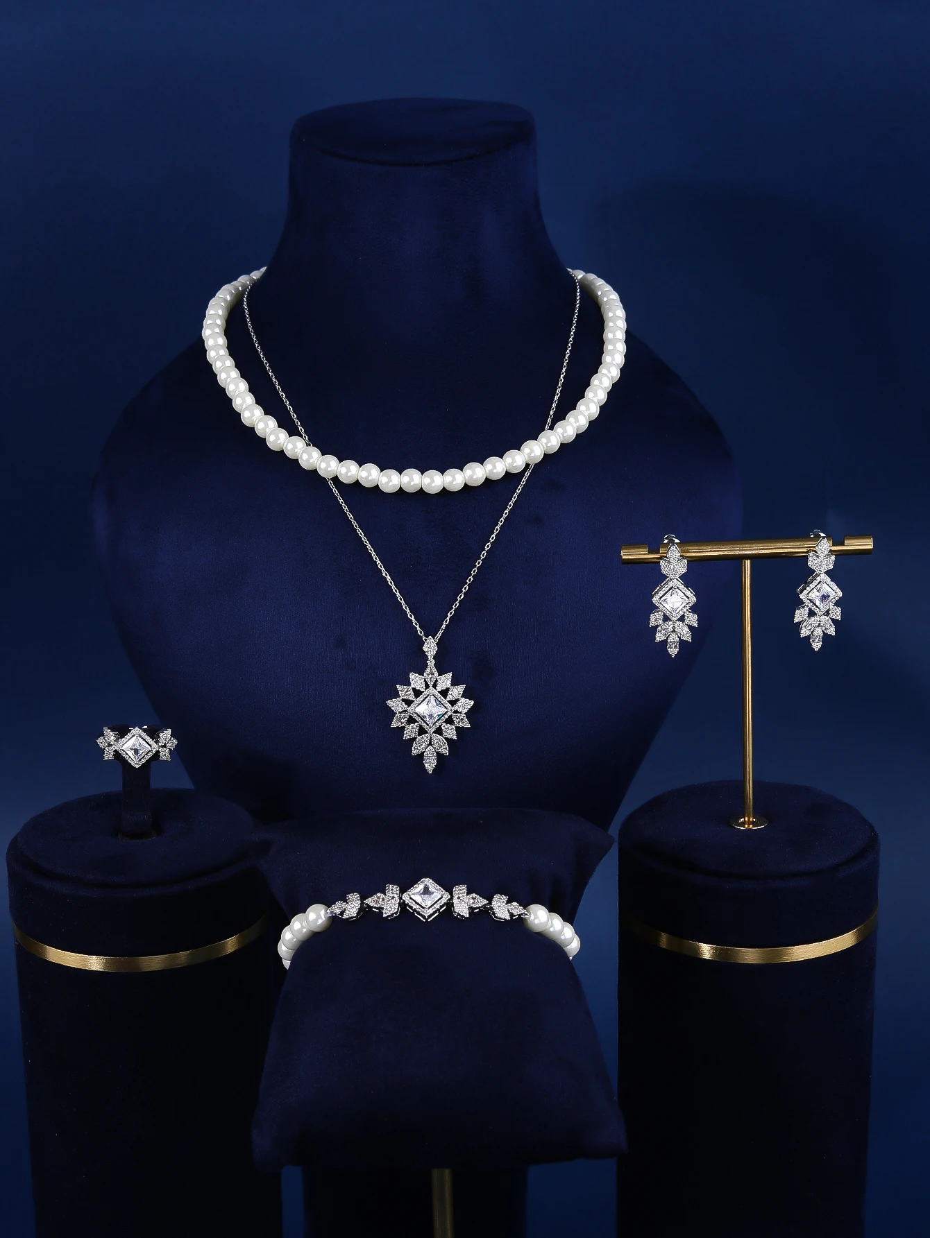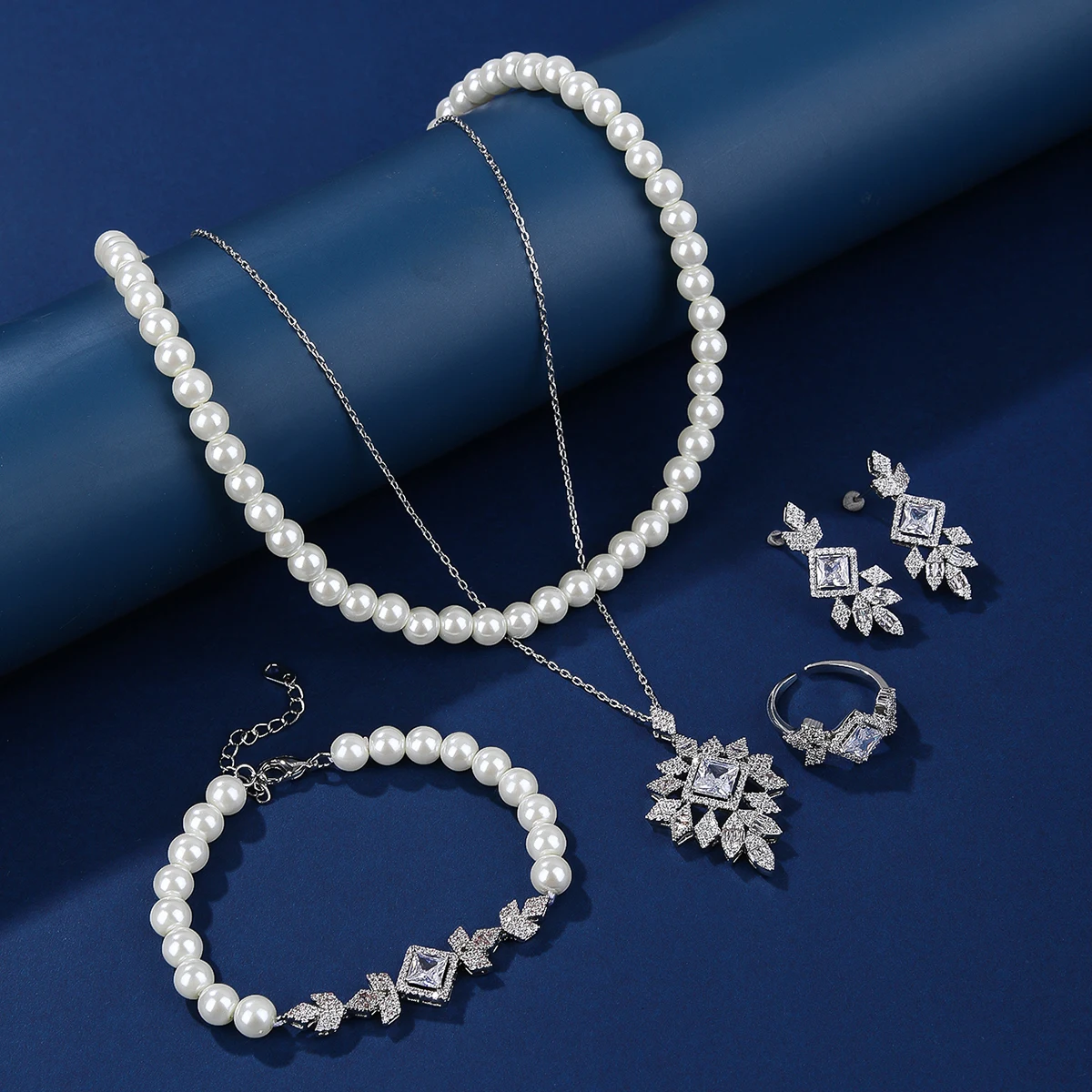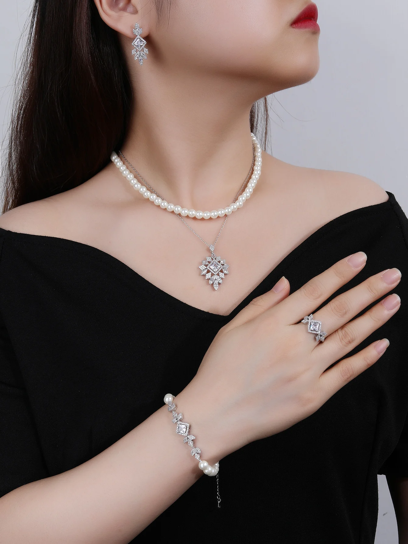 Designer Style Elegant Classic Fine Jewelry Set Copper Brass Inlaid Zircon Rhodium Plated Wedding Gift Party Wear Set for Women