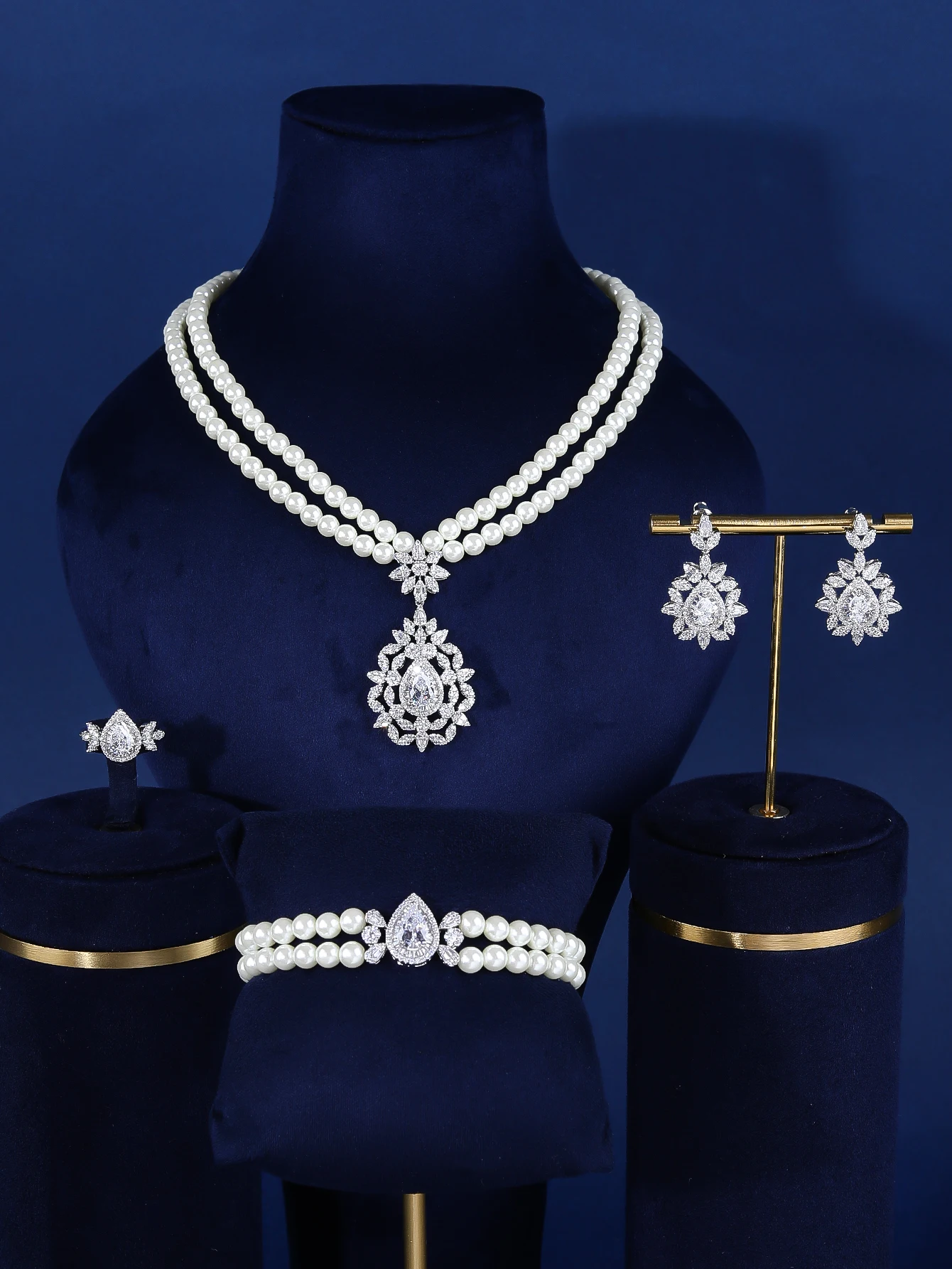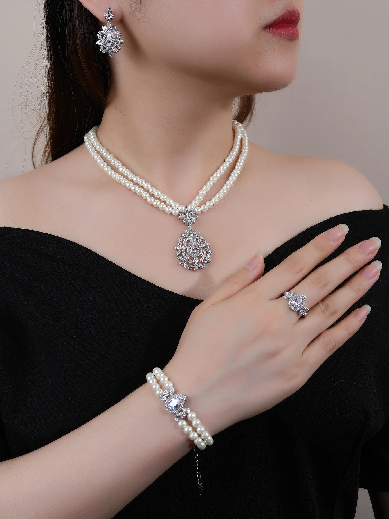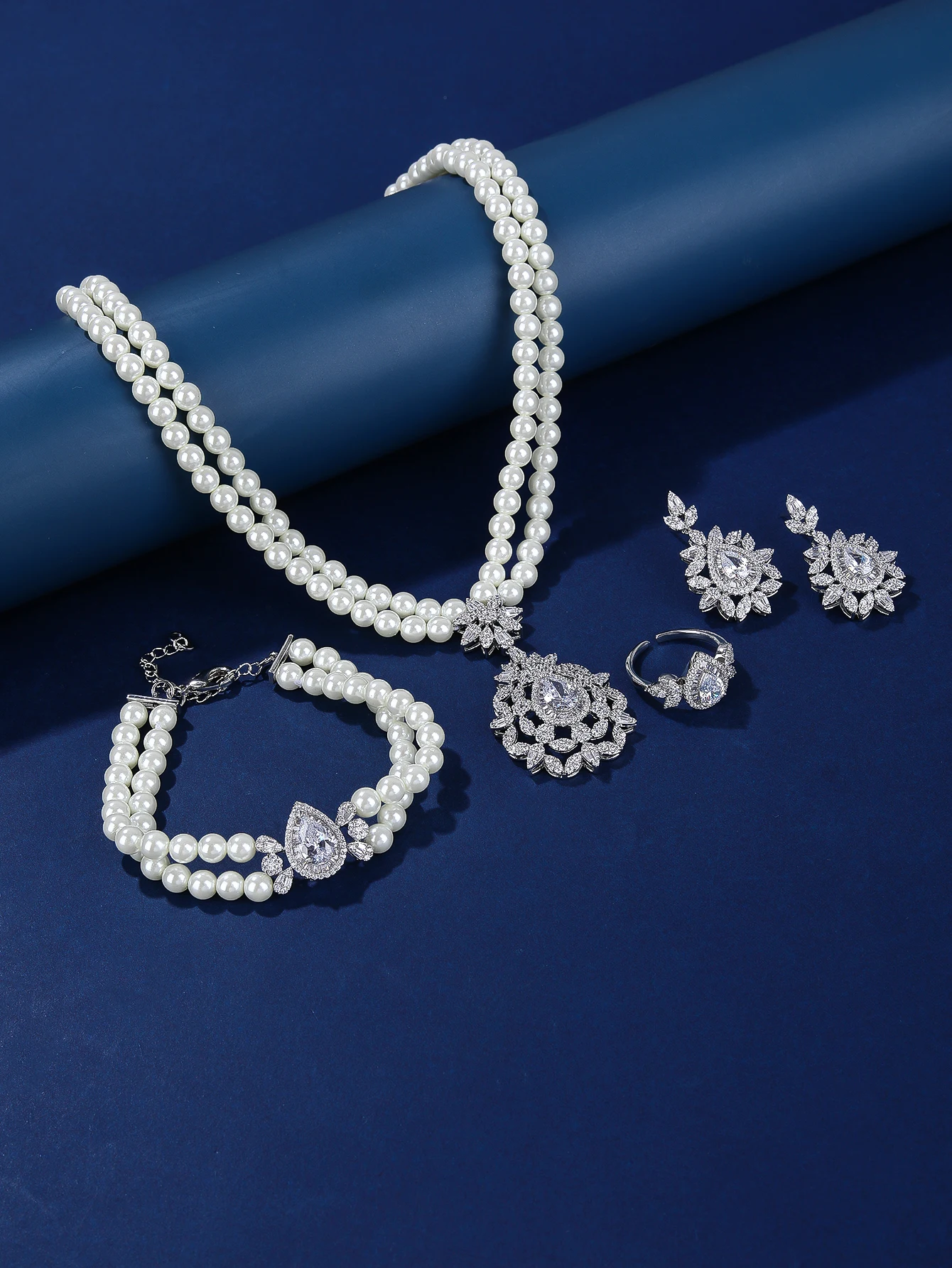 Designer Style Elegant Classic Fine Jewelry Set Copper Brass Inlaid Zircon Rhodium Plated Wedding Gift Party Wear Lady
