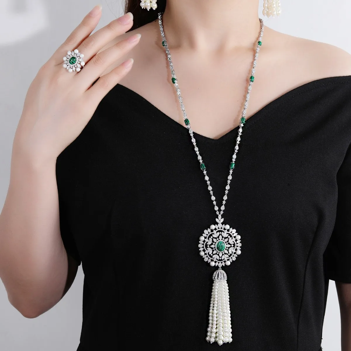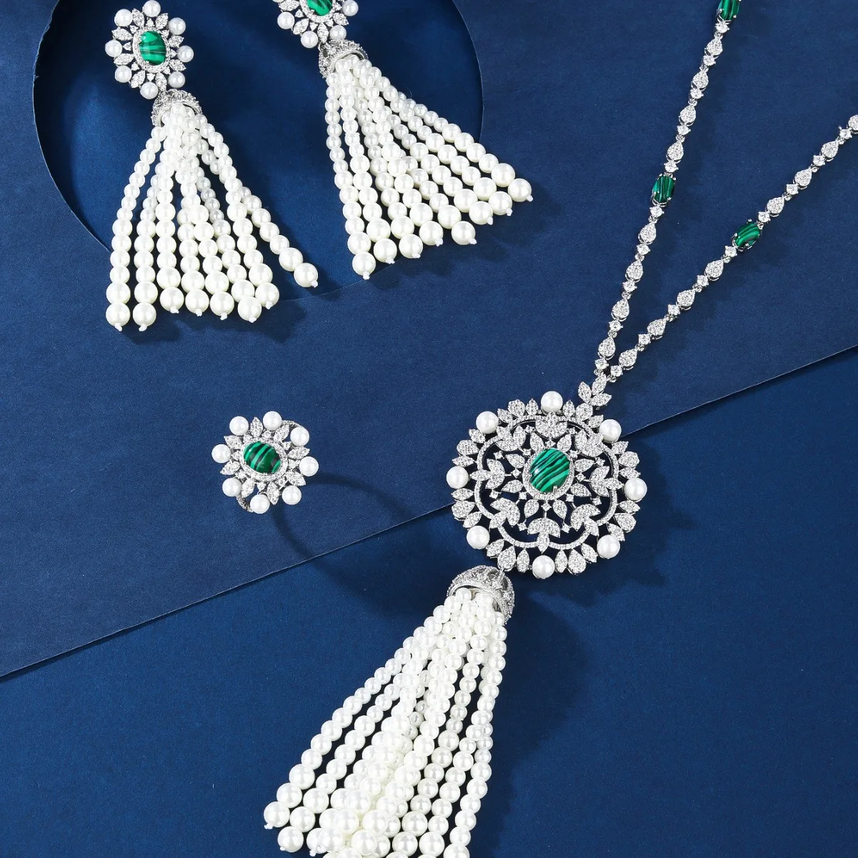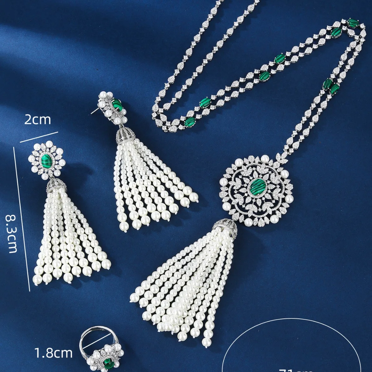 Simple Rhodium Plated Brass Zircon Jewelry Set for Women Wedding & Party Necklace Earrings Ring Fashionable Gift