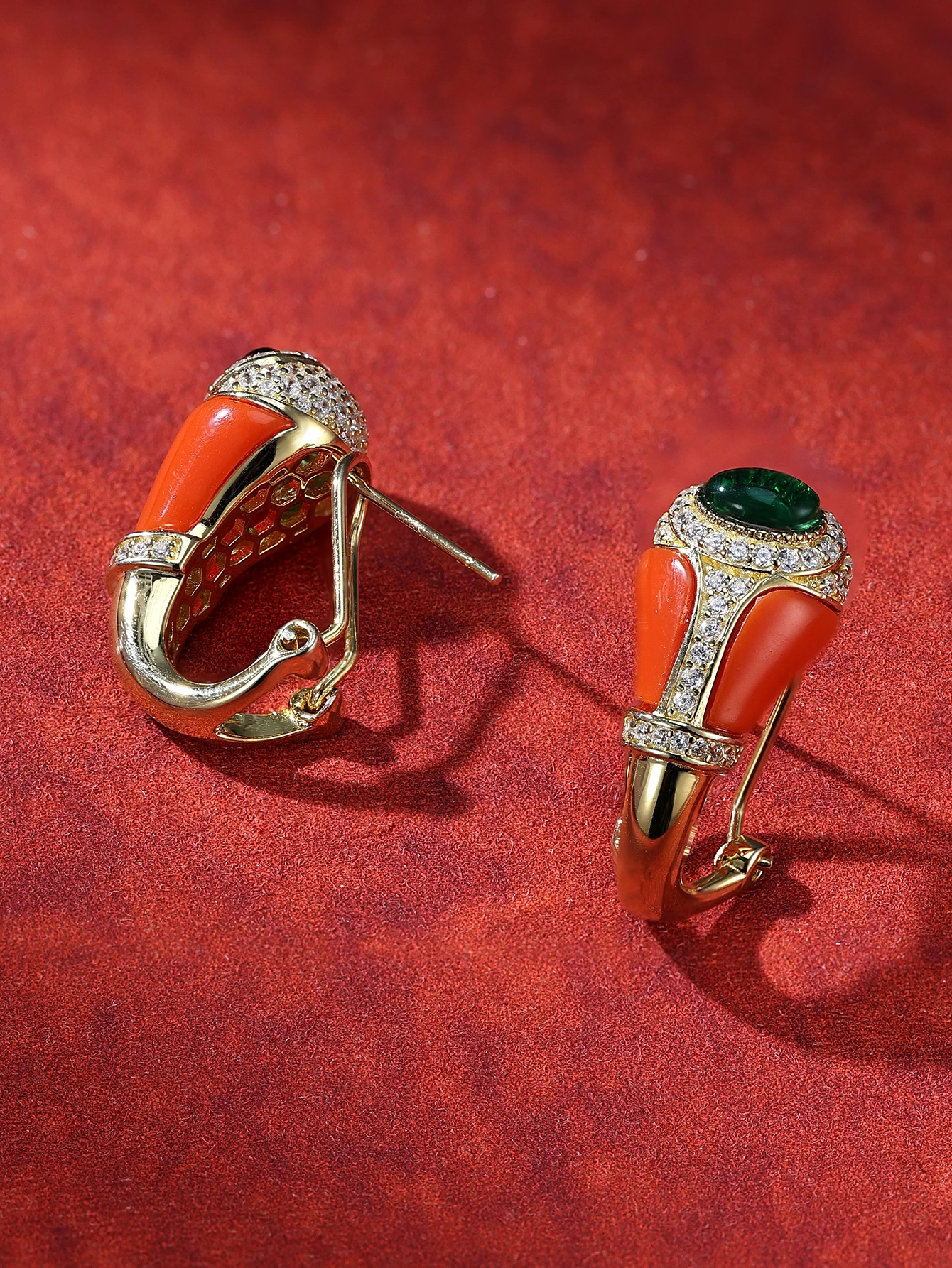 Trendy Vintage Fashion Clip-on Bezel Setting for Women Gift-Worthy Brass Zircon Platinum Plating Exquisite Enamel Design