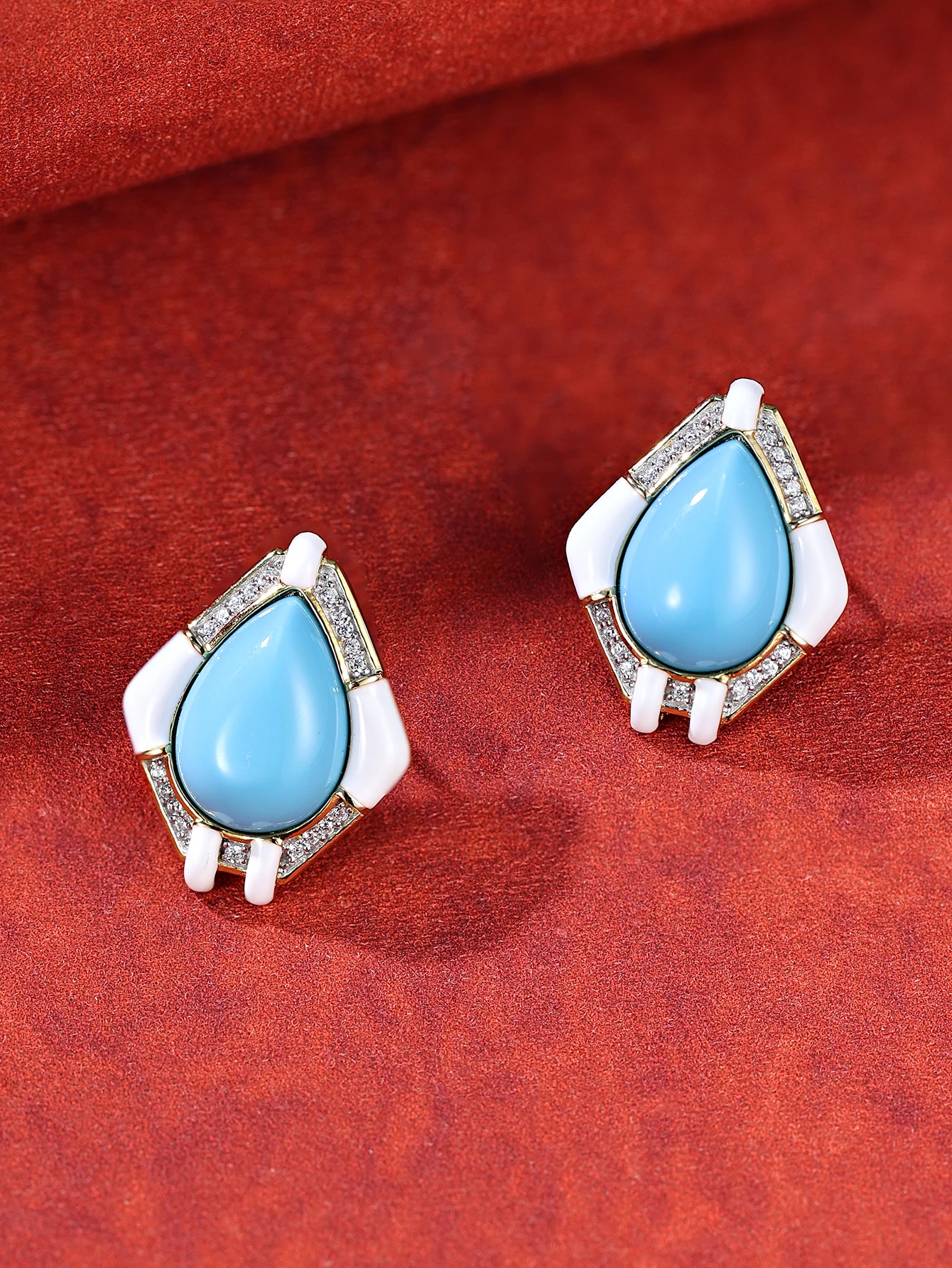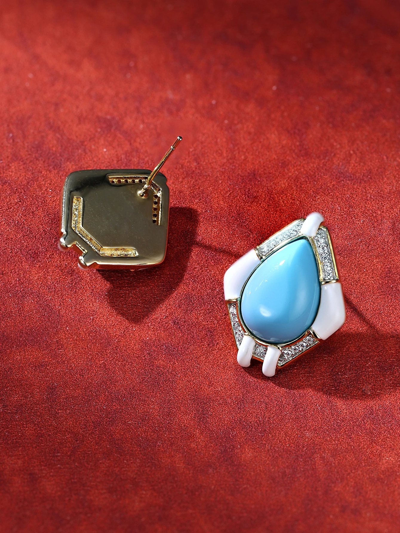 Circular Brass Zircon Clip-on Earrings Platinum Plated Resin with Bezel Setting Vintage Trendy Women's Gift