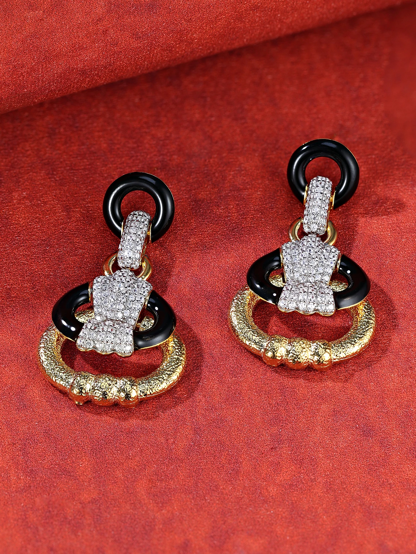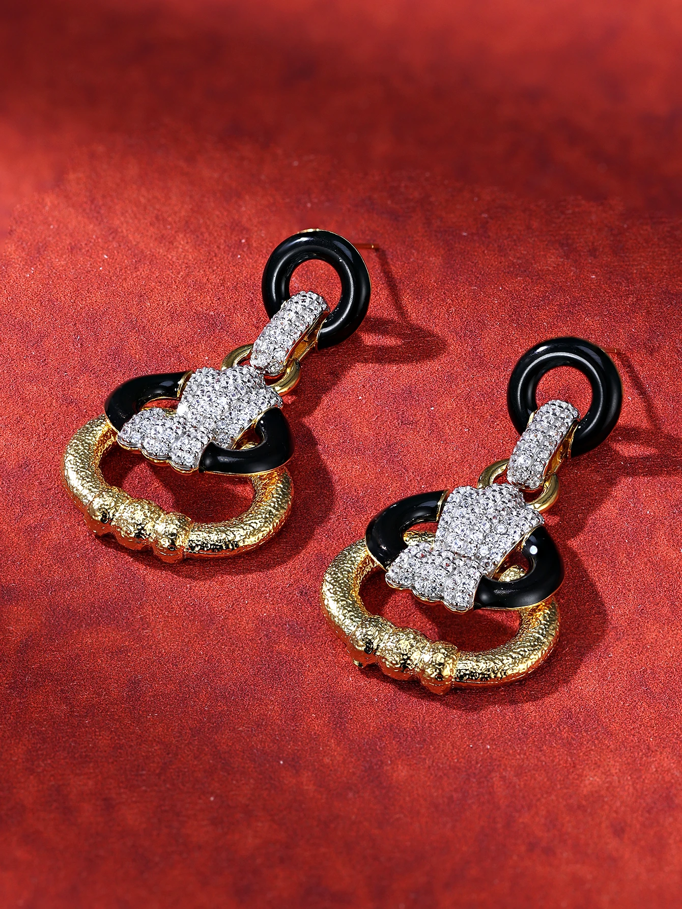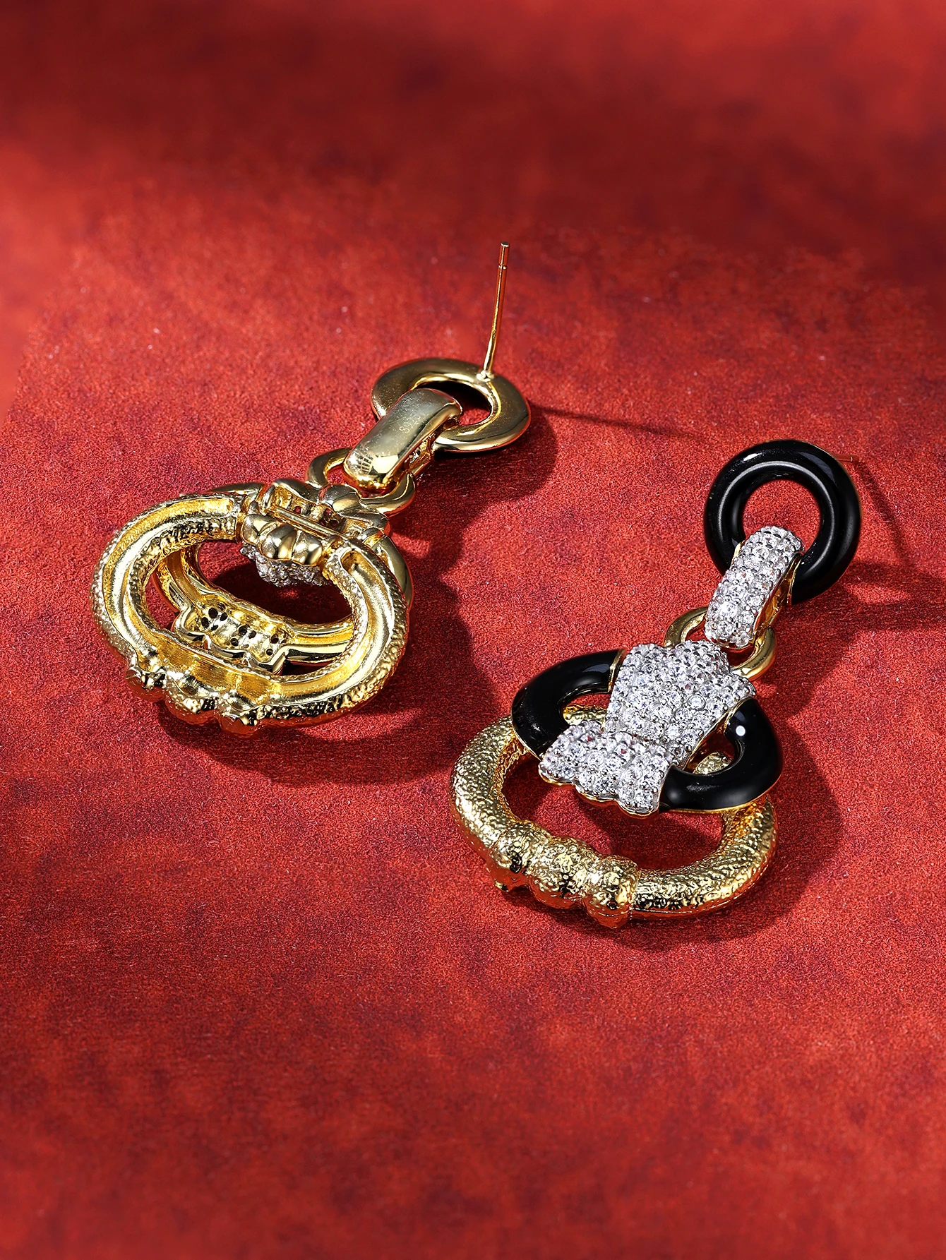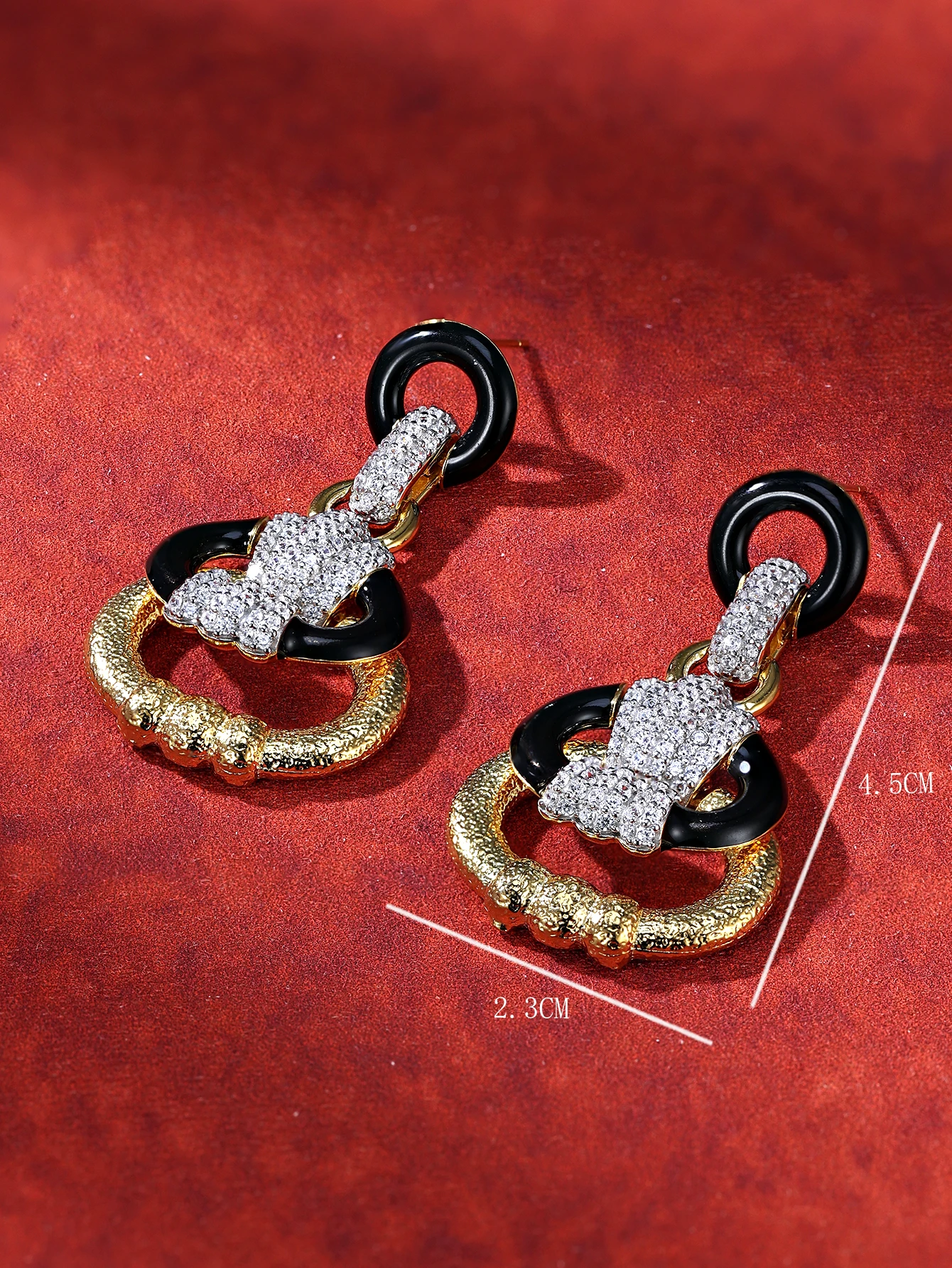 Original Design Circular Zircon Stud Earrings, Exquisite Enamel & Resin Brass Elegant High-End Gift