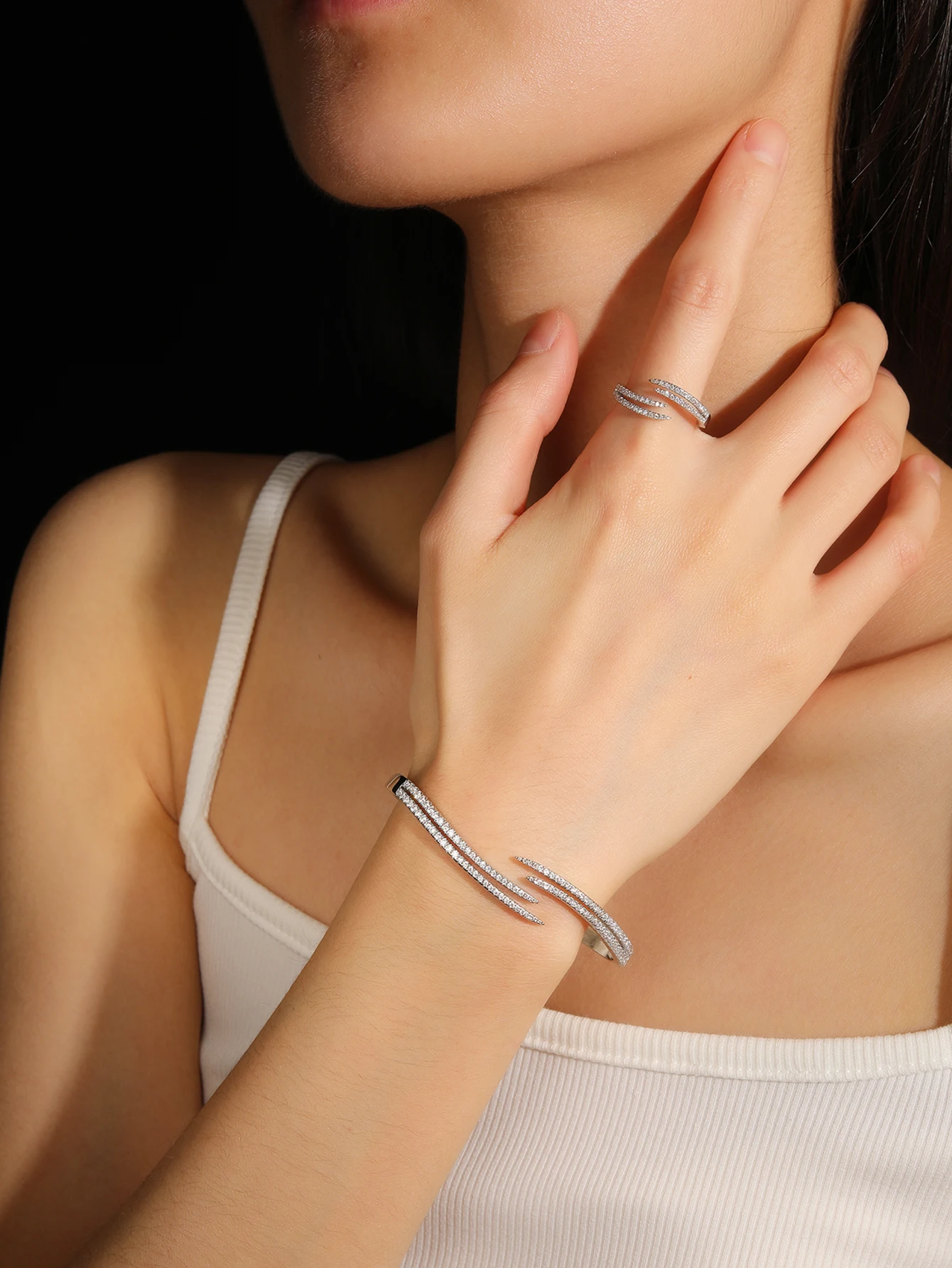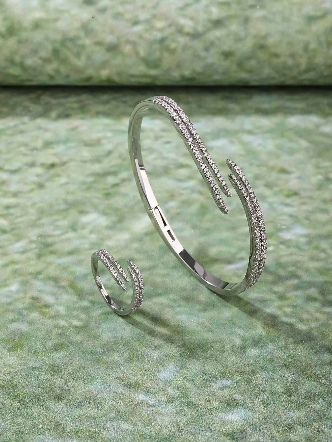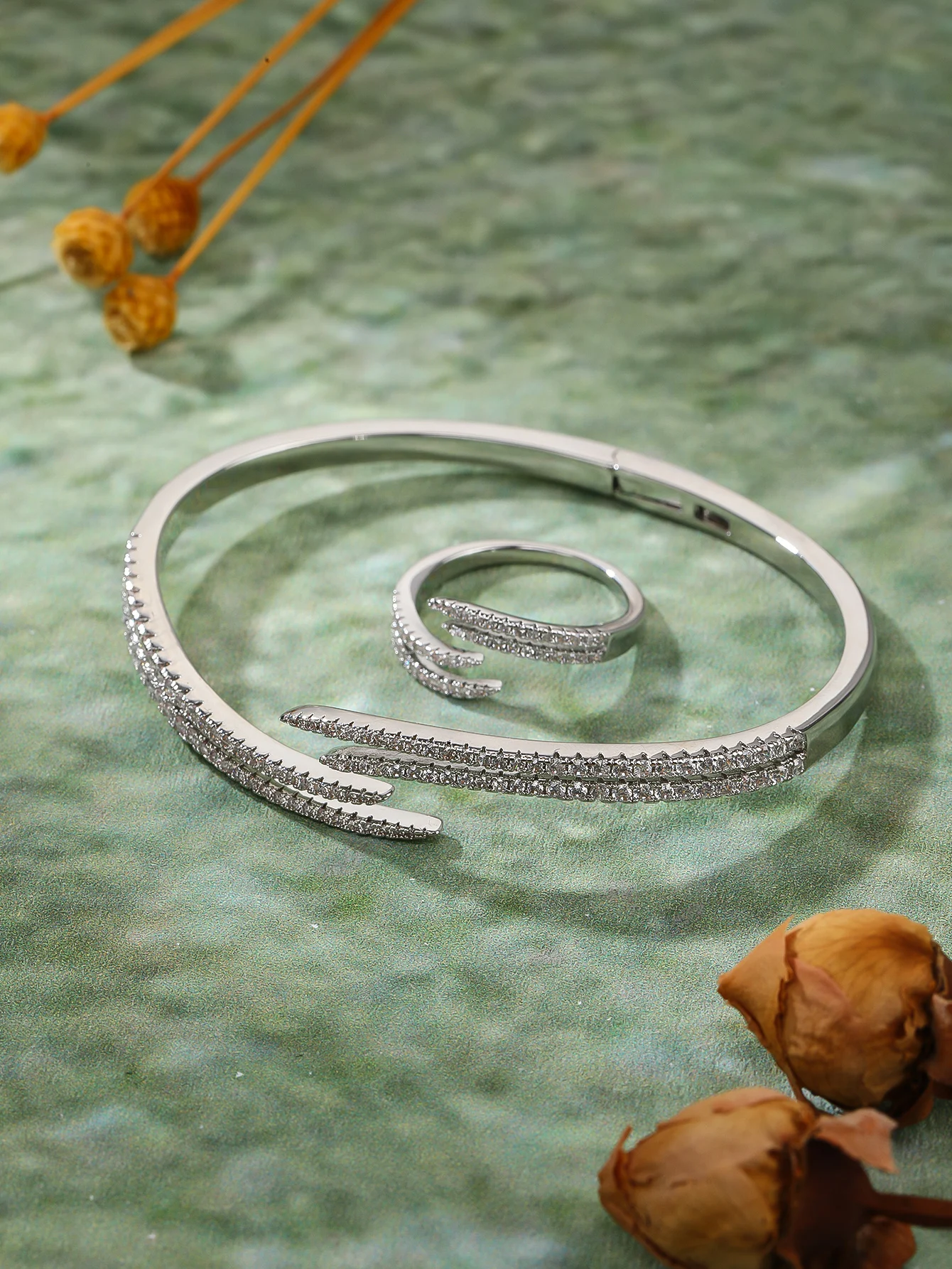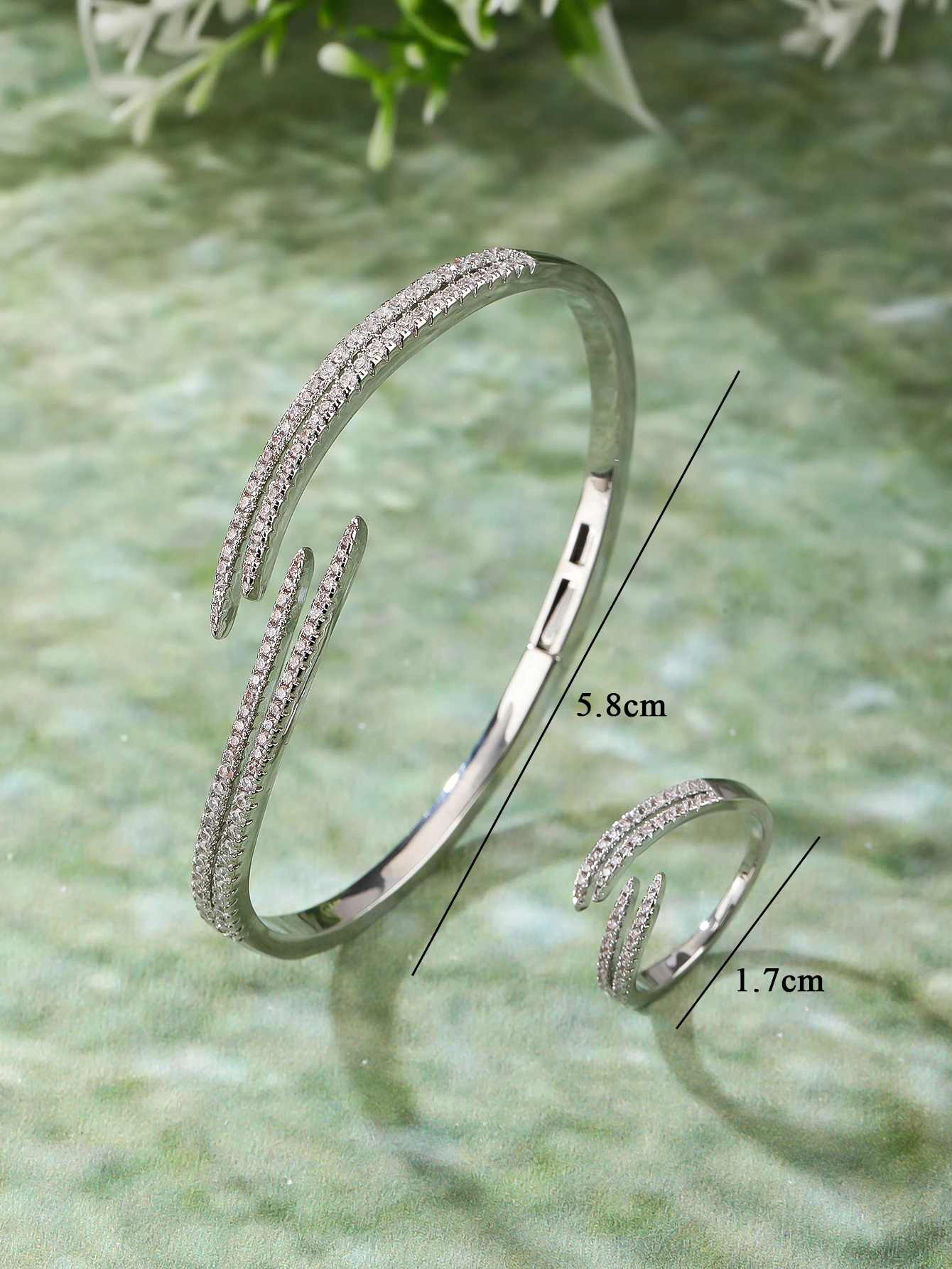 Antique Brass Rhodium Plated Zircon Bracelet and Ring Set Vintage Style Jewelry for Women Wedding & Party Gift Box Set