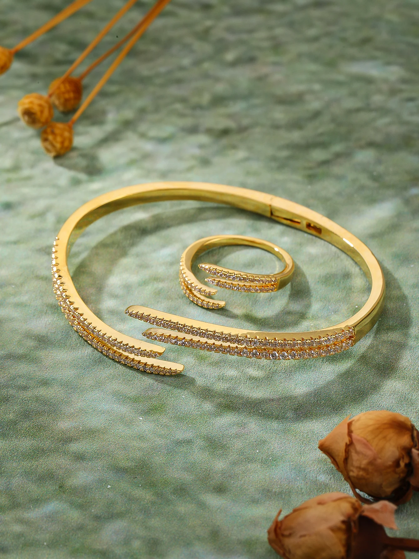 Antique Brass Rhodium Plated Zircon Bracelet Ring Set Classic Style Jewelry for Women/Children/Unisex Wedding Party Gift Box Set